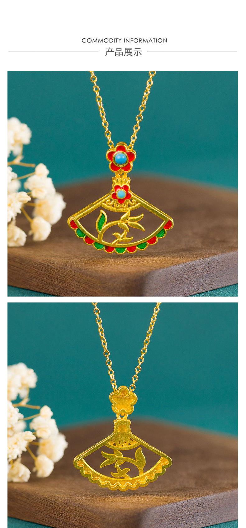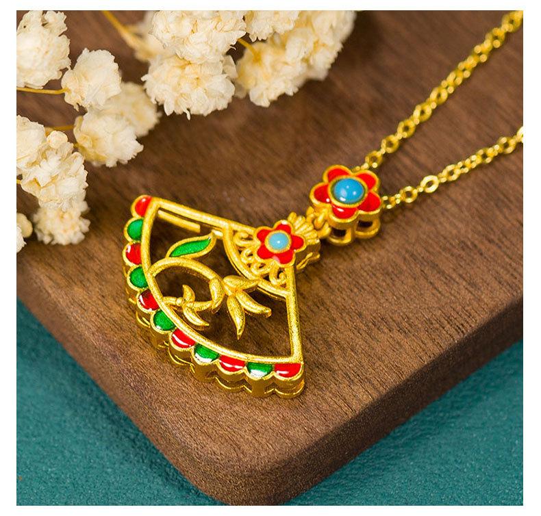 Compra Collar con colgante de estilo étnico chapado en oro para mujer, diseño original retro, estilo nicho chino, hueco, con forma de abanico, esmaltado, flor al por mayor en Joom.pro