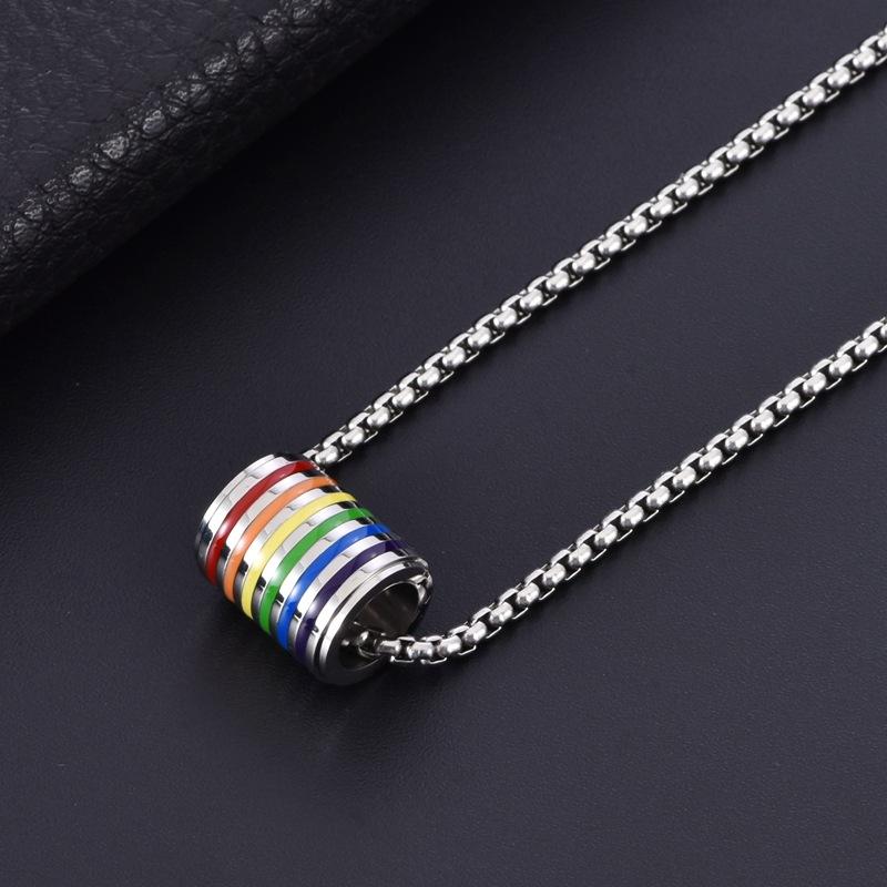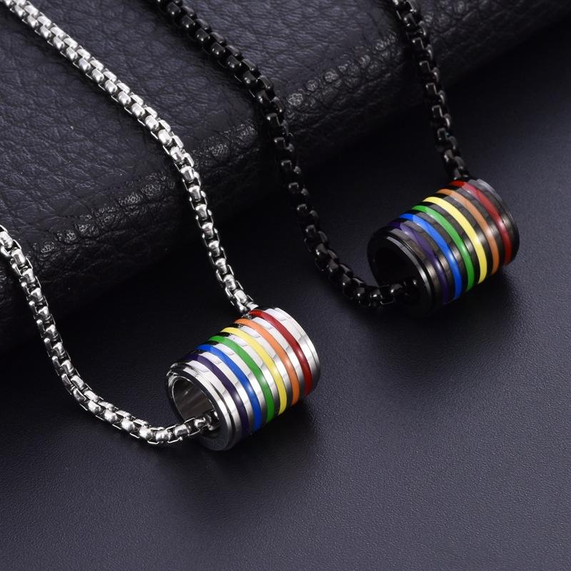 European and American Necklace Pendant Titanium Steel Rainbow Cylindrical Transfer Bead Pendant Men's Personal...