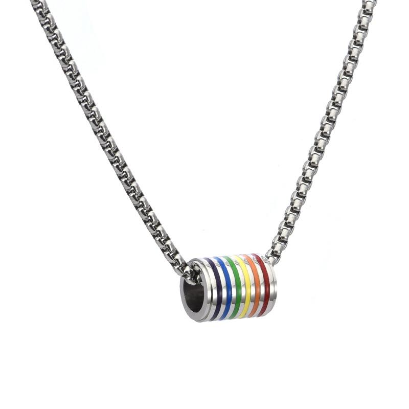 Collar con colgante de cuentas de transferencia cilíndricas de arcoíris de acero de titanio europeo y americano, collar pequeño personalizado para hombre, joyería, accesorios para suéter