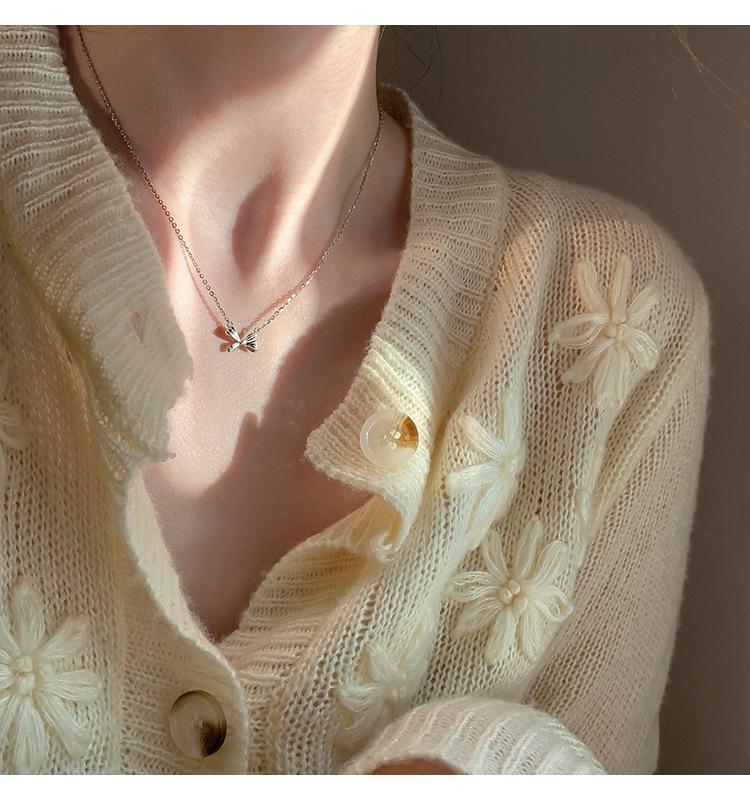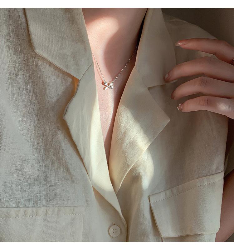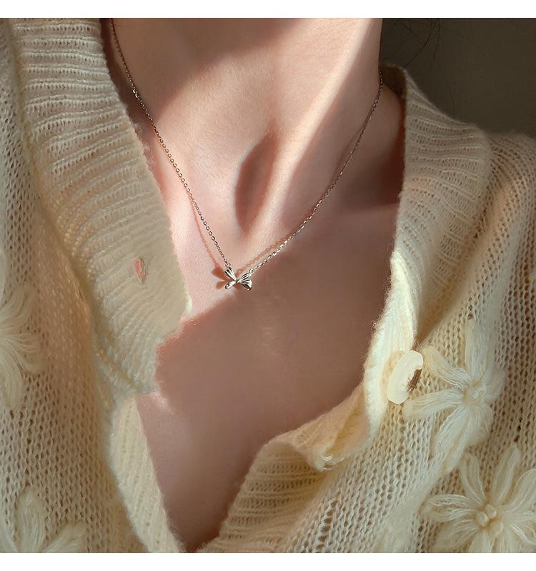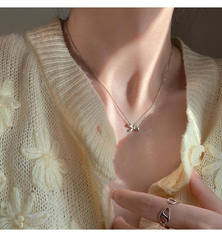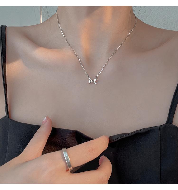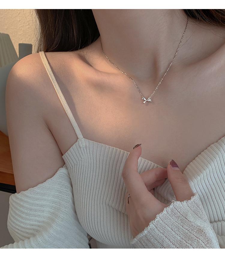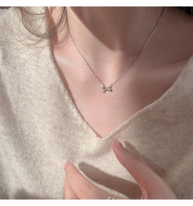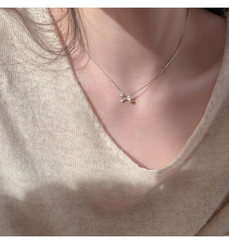 Collar de lazo de plata esterlina s925 para mujer 2022 nuevo cadena clavicular para suéter diseño creativo simple de nicho