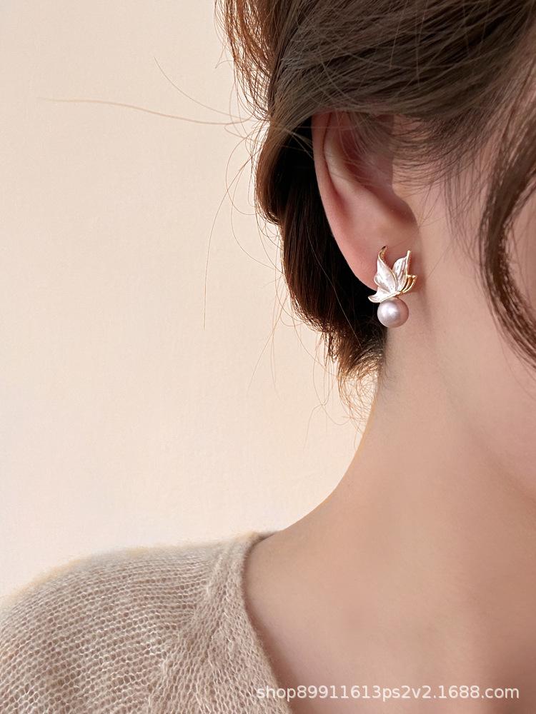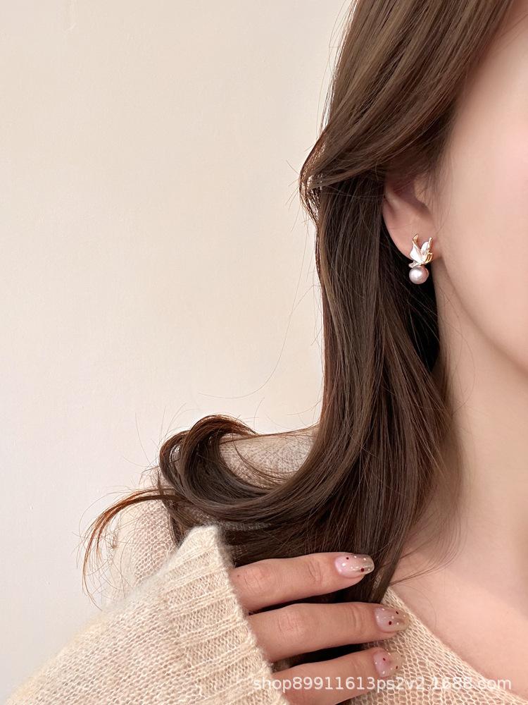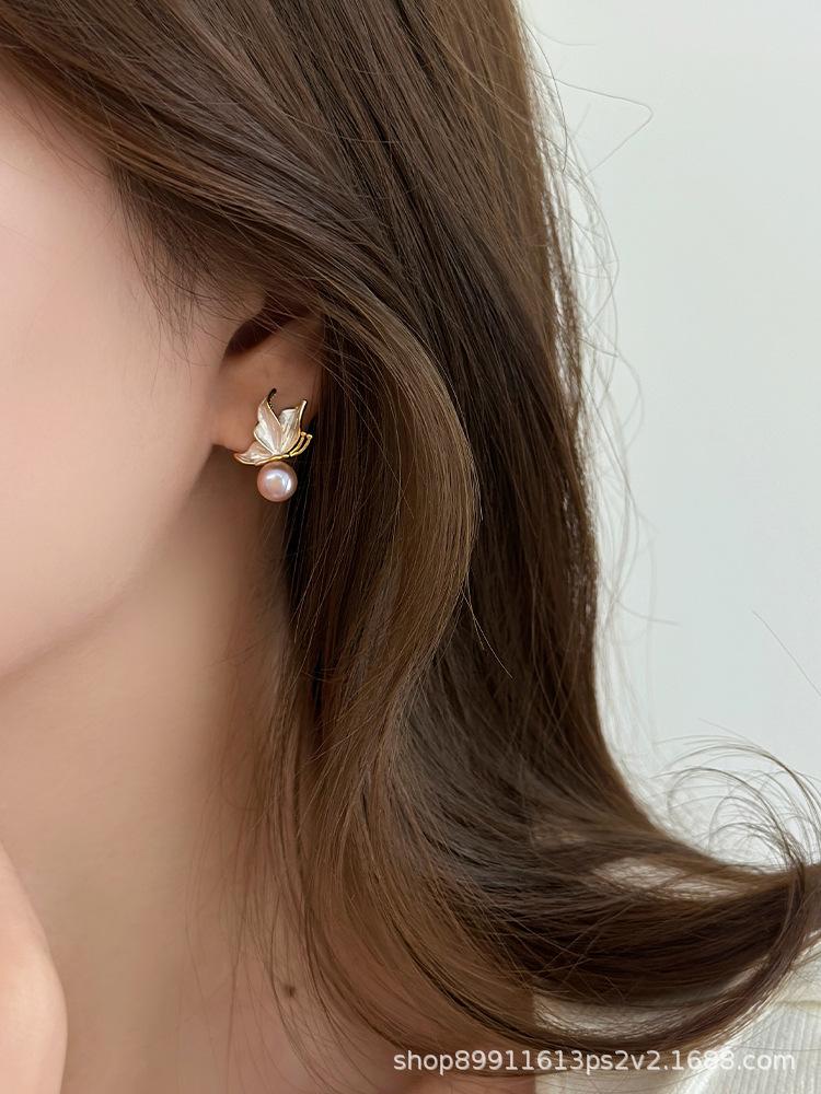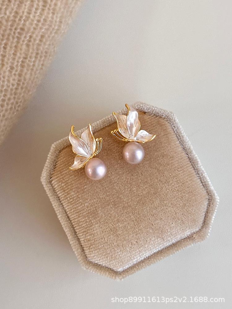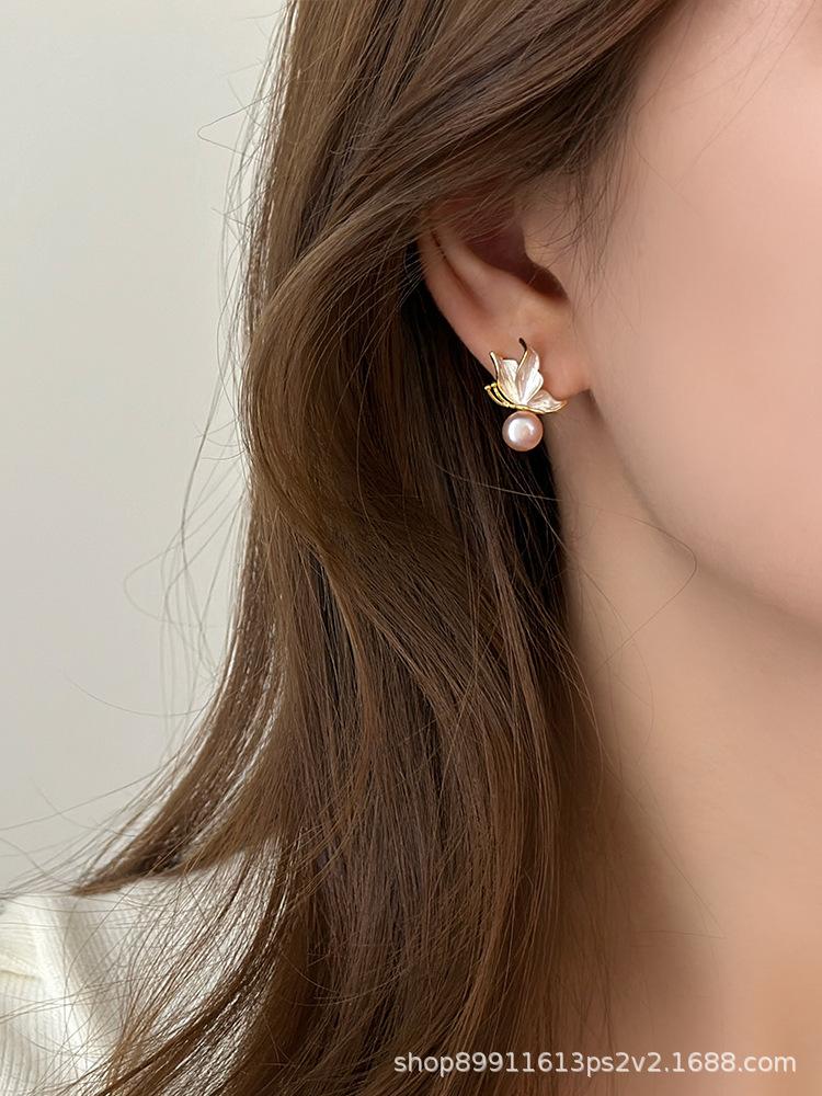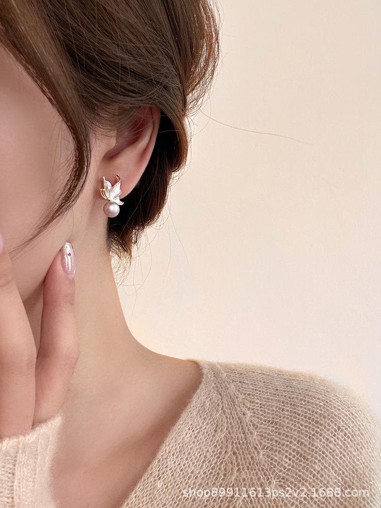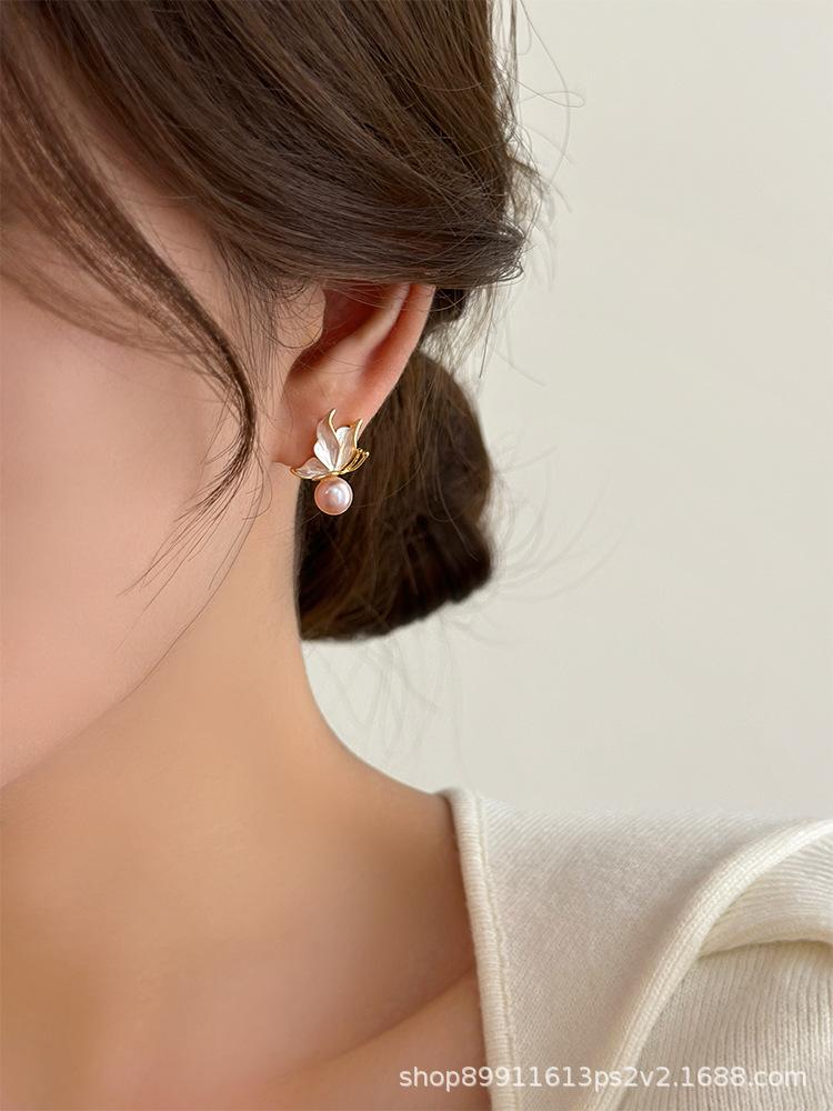 Aretes de Mariposa de Perla de Alta Gama para Mujer, Aretes Dulces, Delicados y Versátiles, Aretes de Estilo Lujo Ligero para Ir al Trabajo a la Moda al Mayoreo