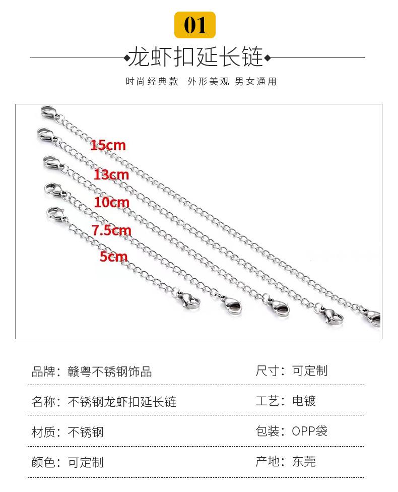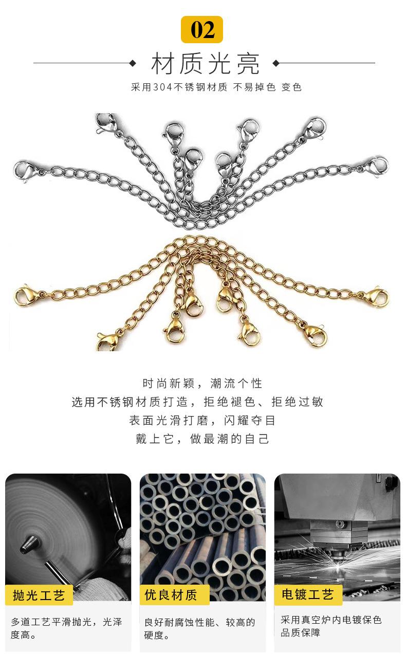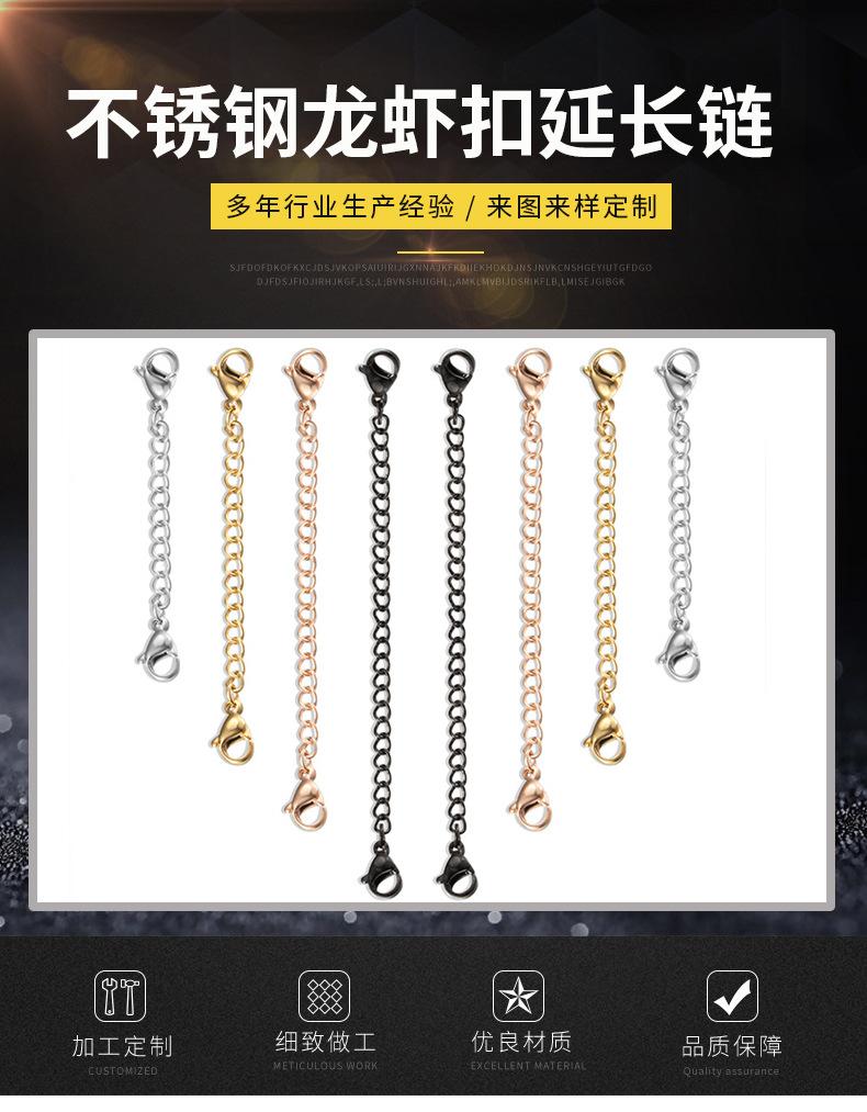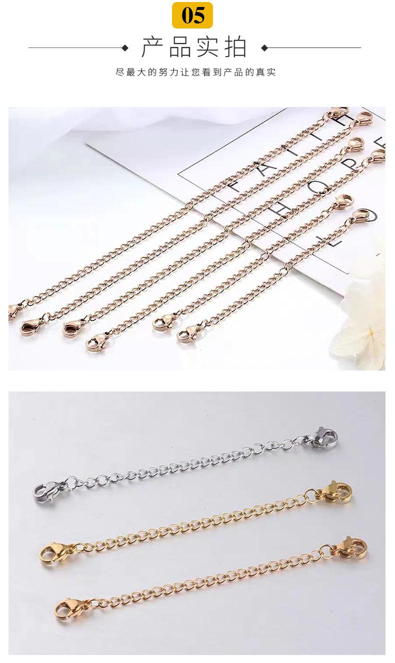 Hebilla de langosta de doble cabeza de acero inoxidable al por mayor con cadena de cola, collar de acero de titanio, cadena ajustable, cadena de extensión de oro, accesorios de joyería