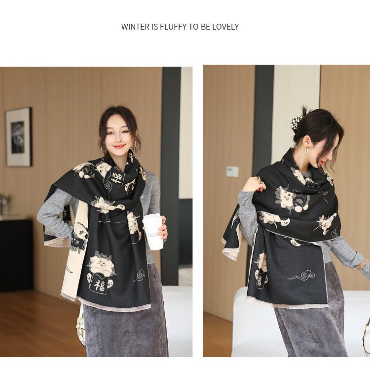 Bufanda gruesa de doble cara para mujer, otoño e invierno, combinable, gruesa, cálida, de cachemira, de alta calidad, 2024