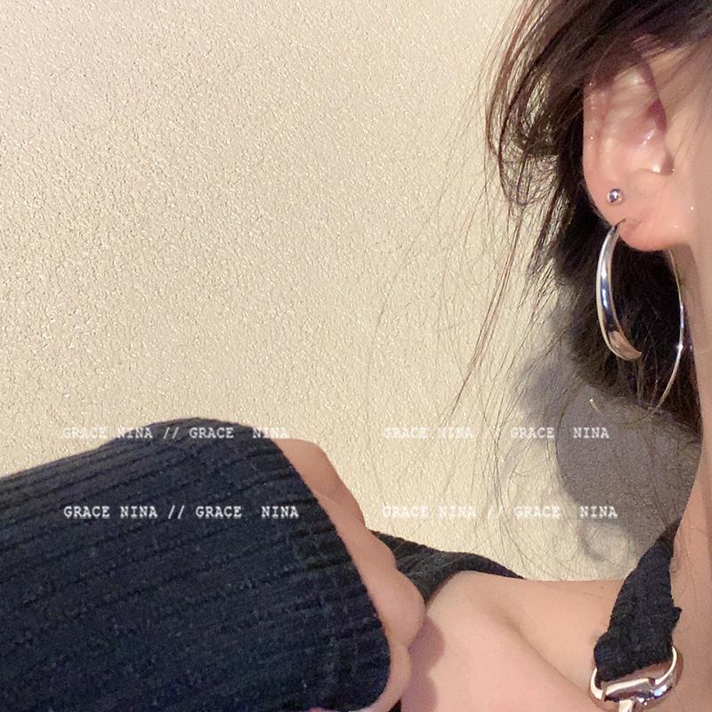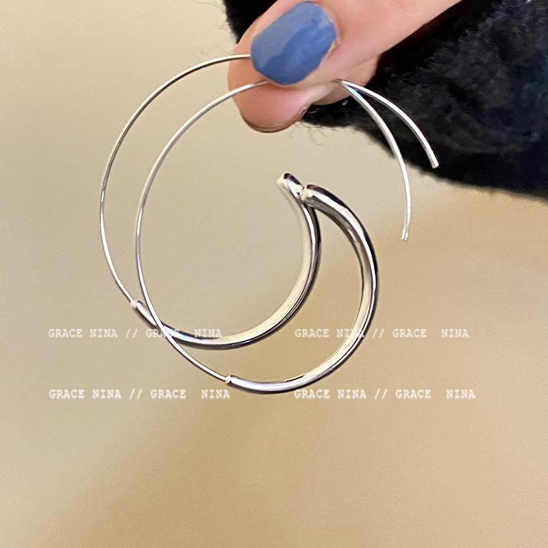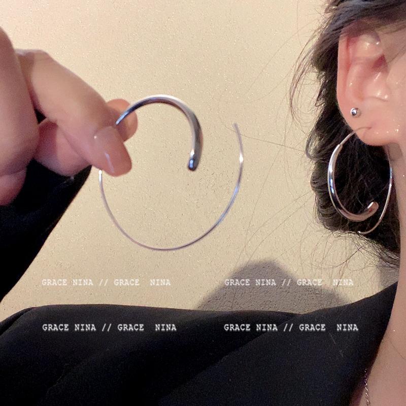 Aretes de Metal Estilo Frío plateados Aretes Diseño Nicho para Mujer Aretes Avanzados Elegantes Simples Combinables Accesorios para la Oreja