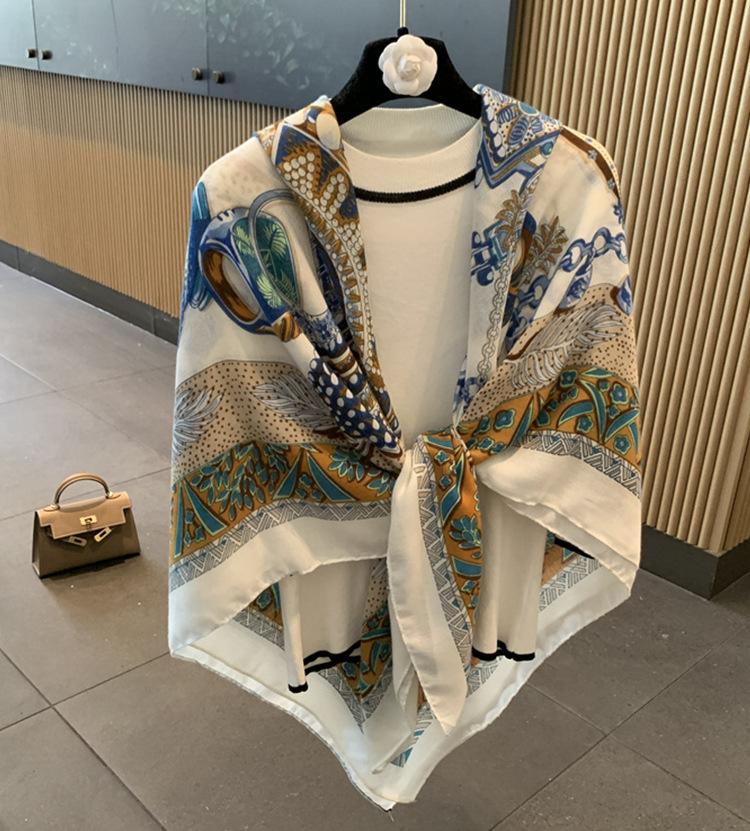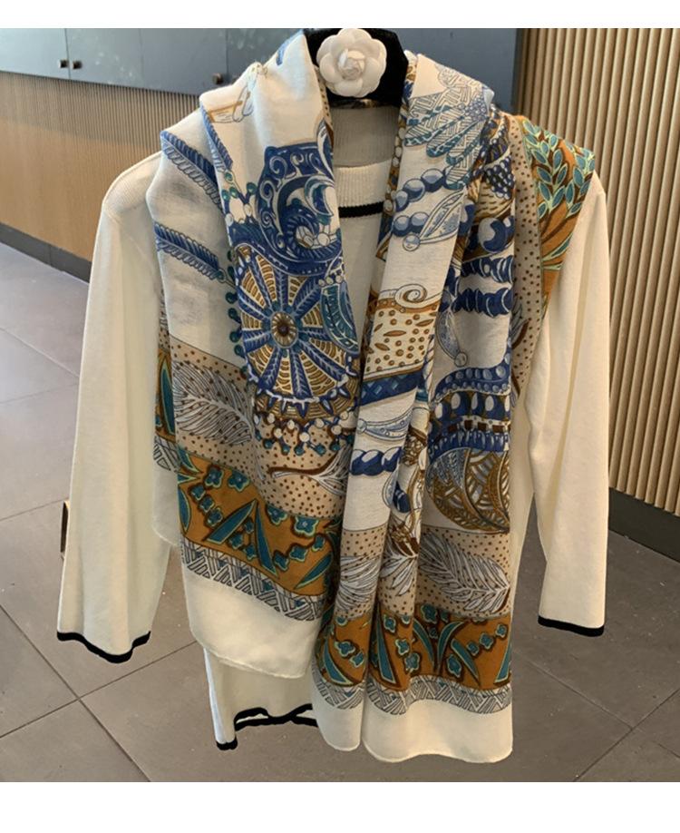 Compra Bufanda larga con borlas estampadas de estilo occidental simple para mujer, bufanda gruesa y cálida de seda estampada para otoño e invierno. al por mayor en Joom.pro