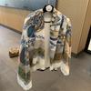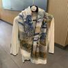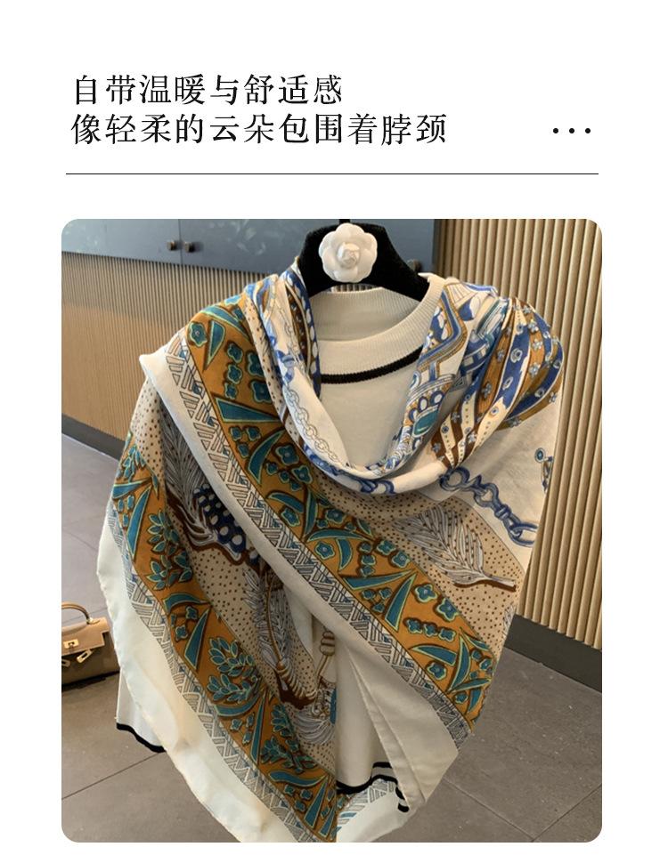 Bufanda larga con borlas estampadas de estilo occidental simple para mujer, bufanda gruesa y cálida de seda estampada para otoño e invierno.