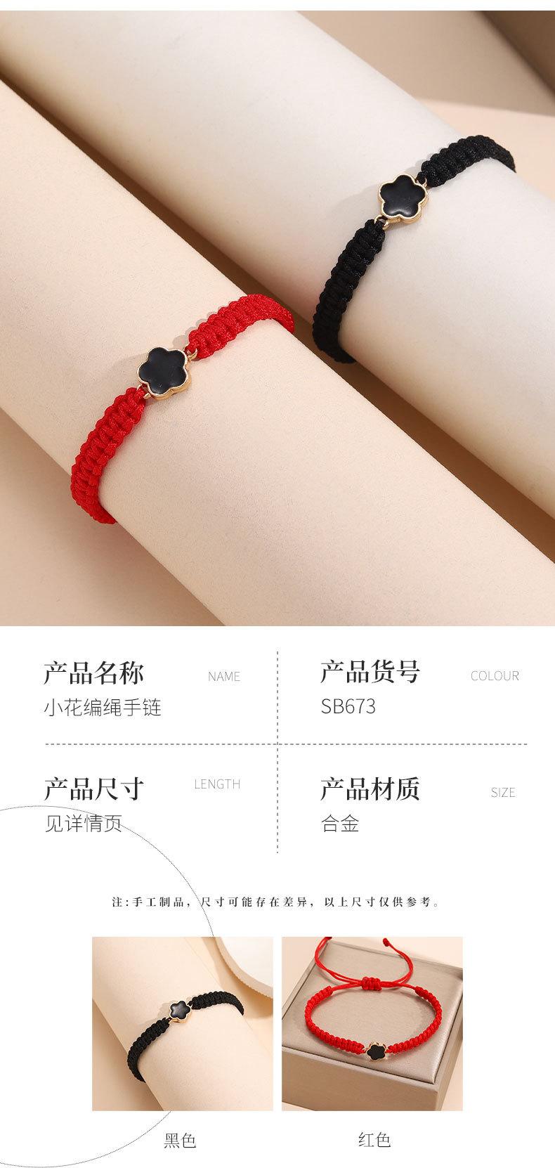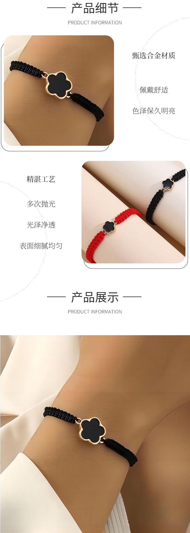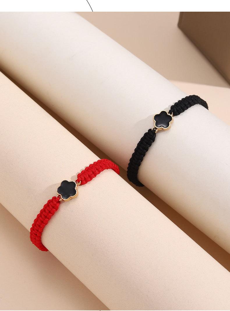 1 pulsera de cuerda de trébol de cinco hojas tejida a mano para pareja de estudiantes, novias, pintada a doble cara con hoja de aceite y hierba, más vendida transfronteriza