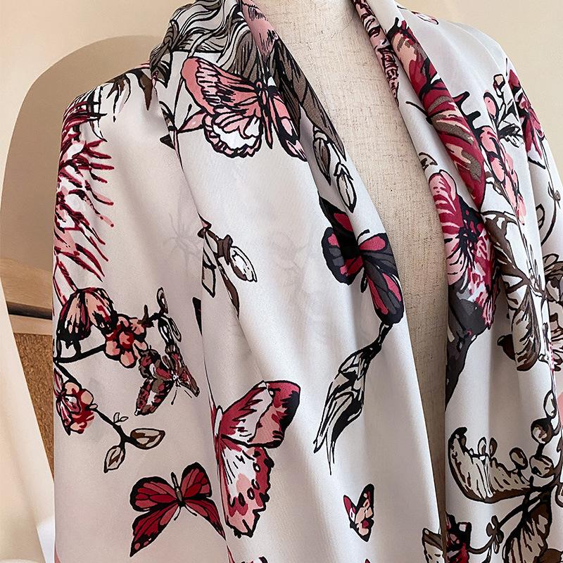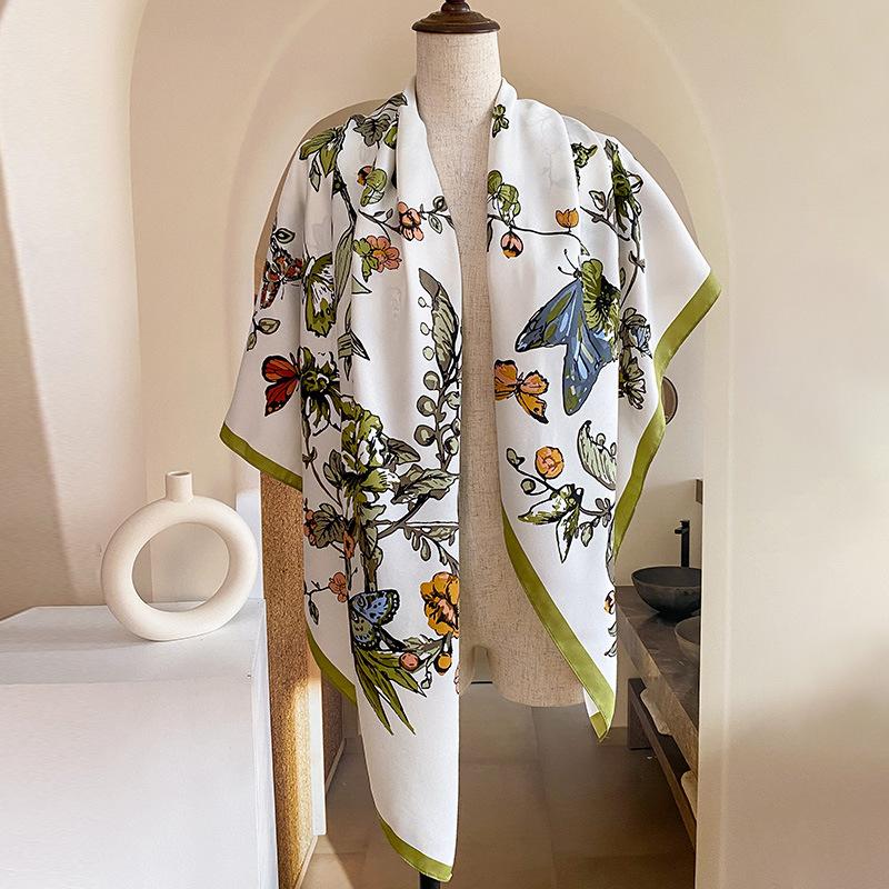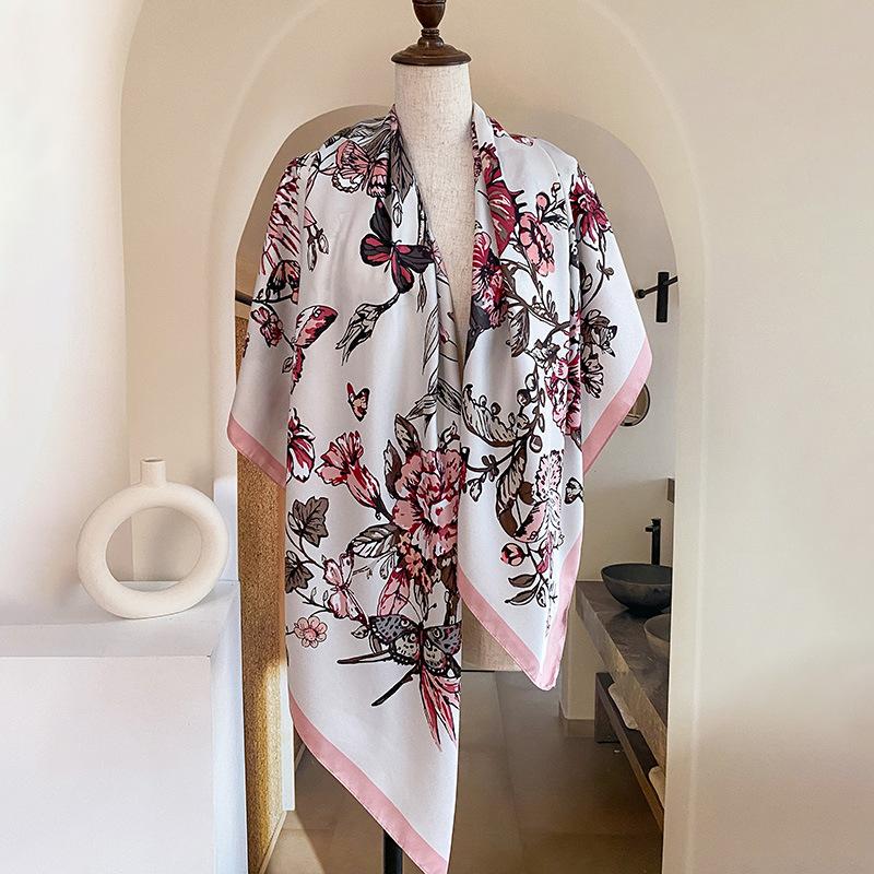 Bufanda cruzada de estilo coreano de verano para mujer, chal fino de longitud media, protector solar, bufanda cuadrada de sarga de seda