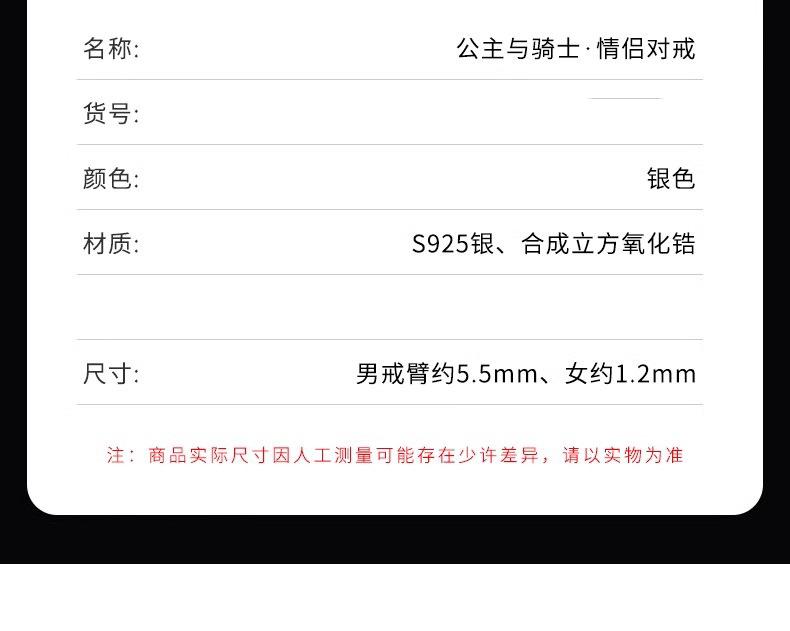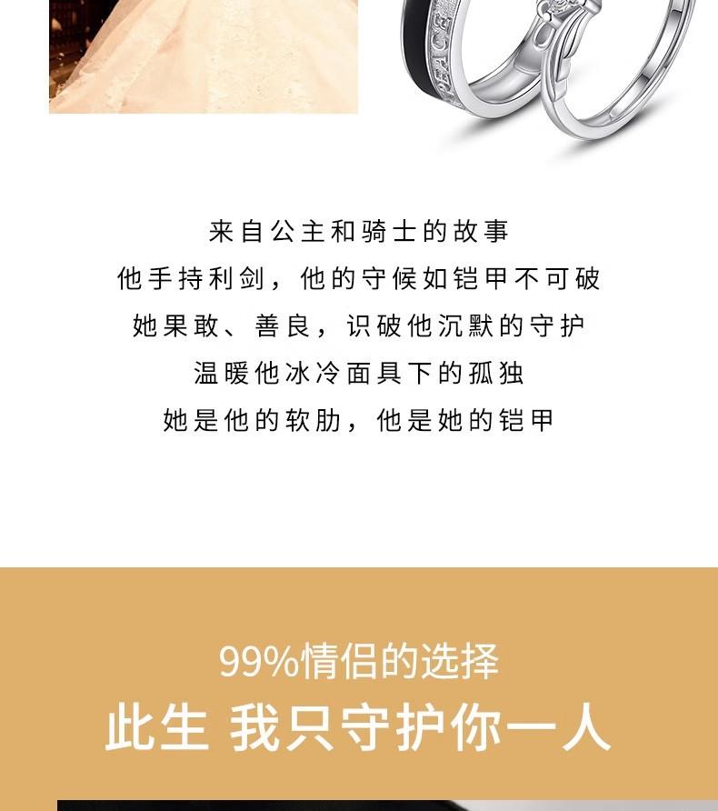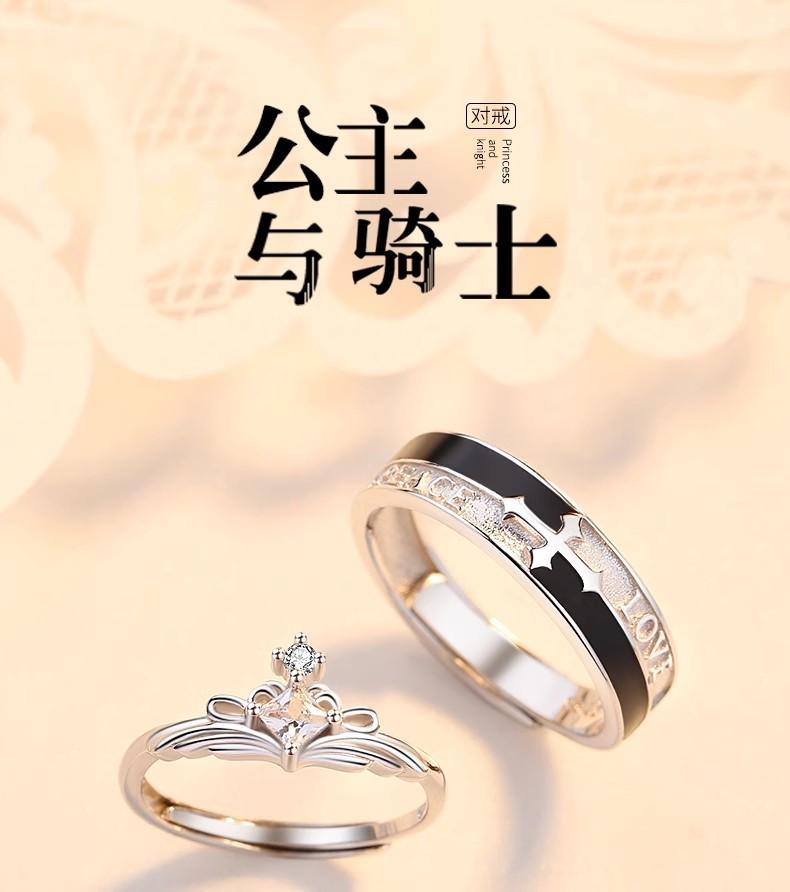 Anillo de pareja Caballero Princesa plata esterlina diseño nicho de lujo ligero para pareja moderno regalo de San Valentín para novia
