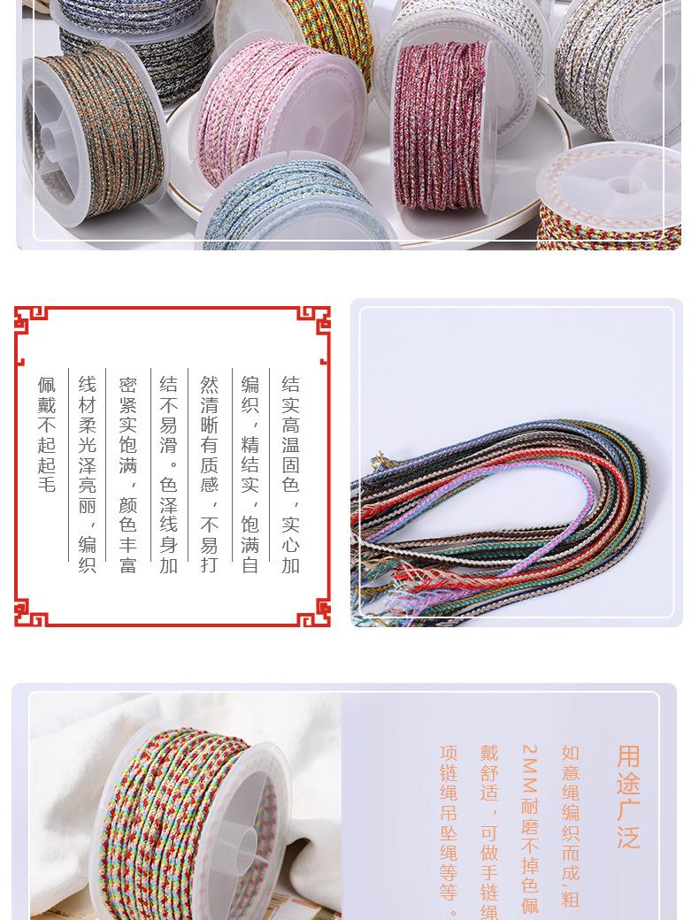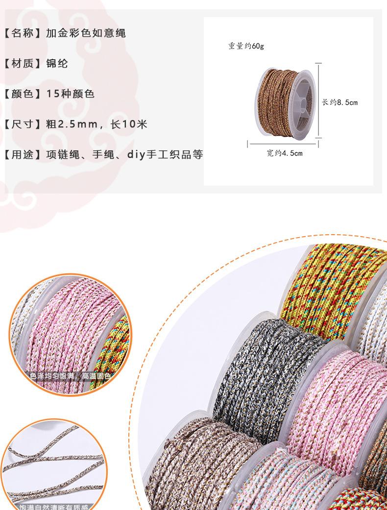 Cuerda ruyi con color dorado añadido nueva cuerda trenzada multicolor de 2.5 mm pulsera cuerda para collar cuerda de diamante cuerda para colgante diy
