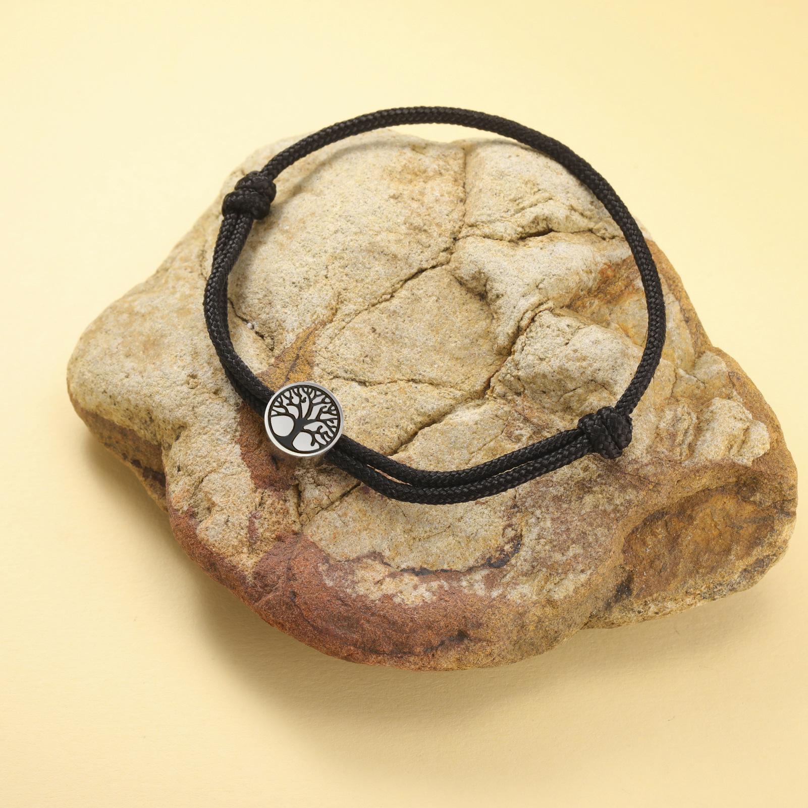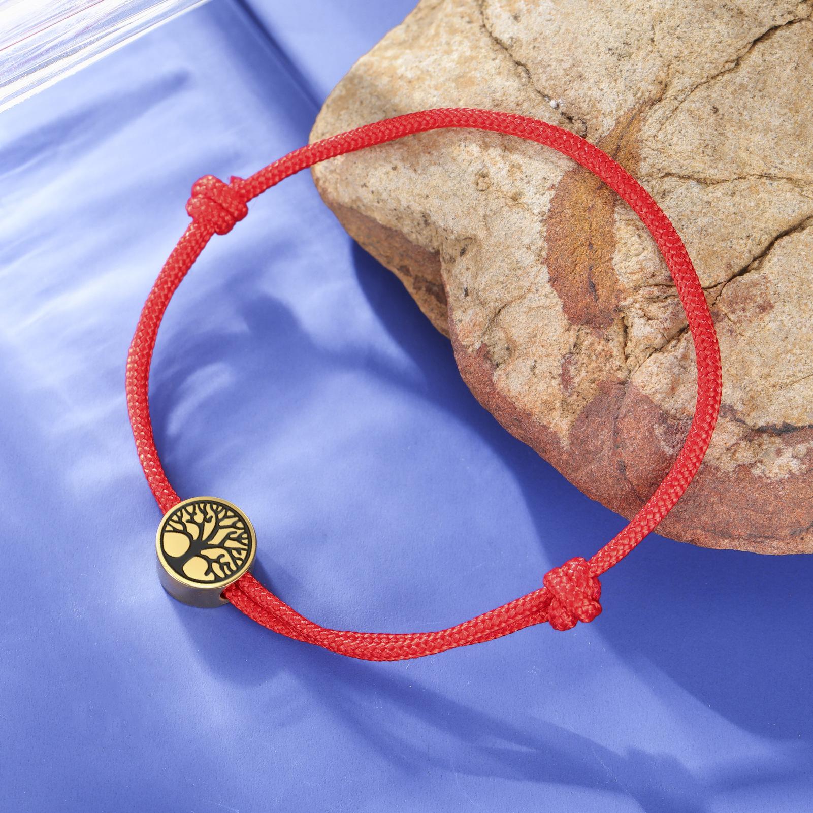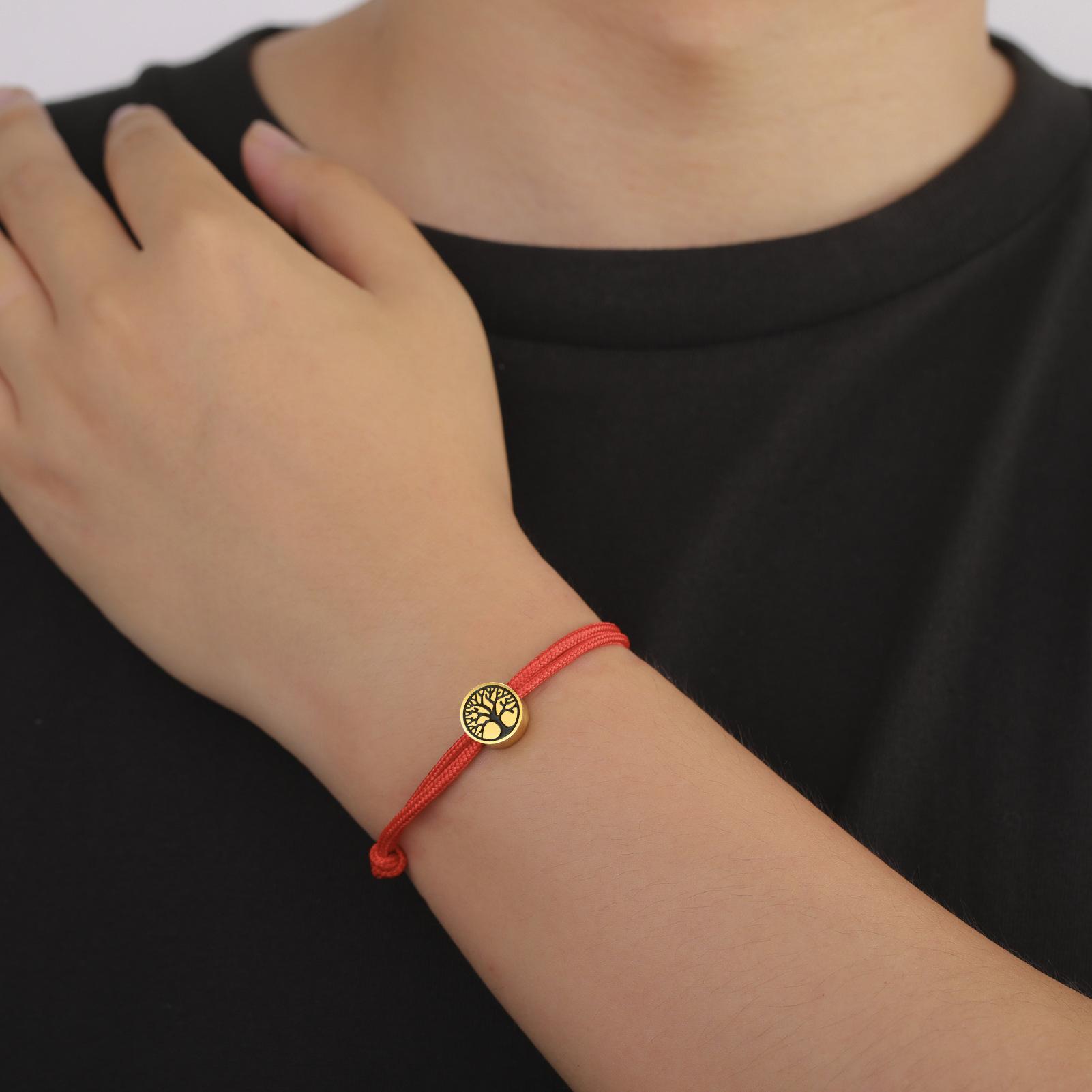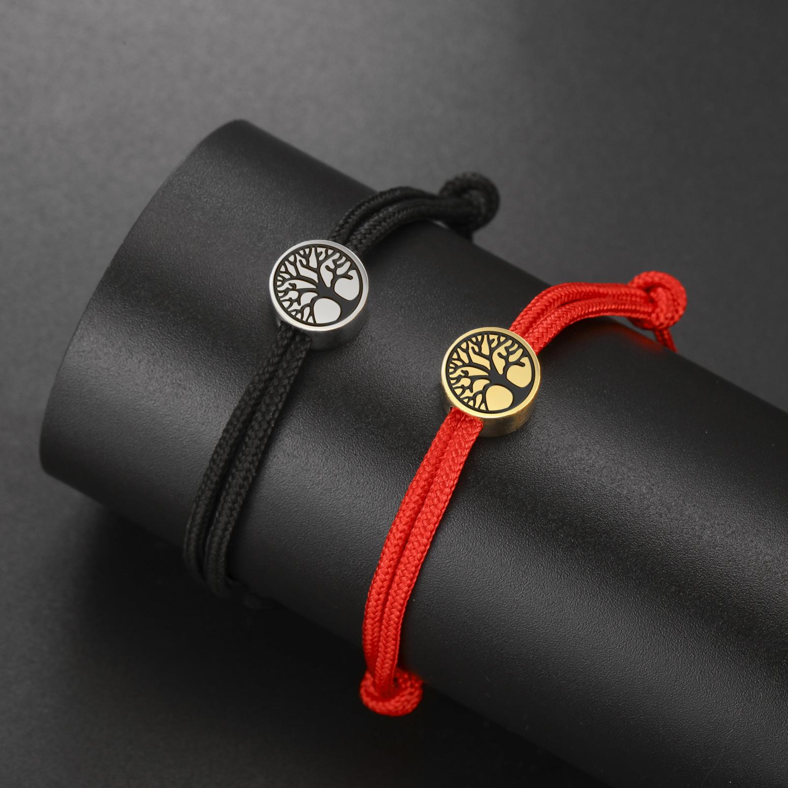 Pulsera de Acero Inoxidable Cortado Color Oro con Alambre Grueso Redondo de Jade Ennegrecido de 6 mm Ajustable con Colgante Pequeño Redondo Grueso de Árbol