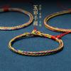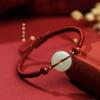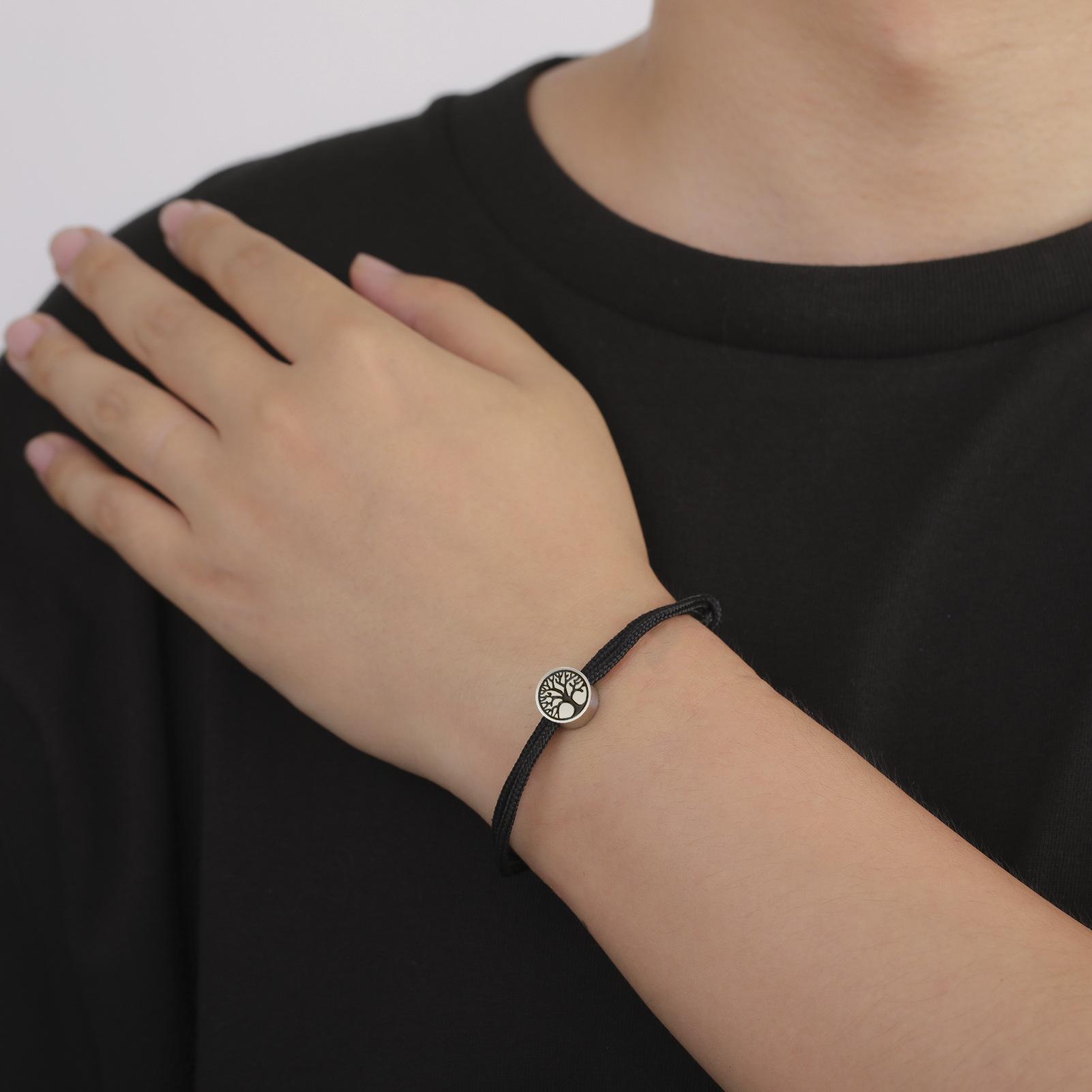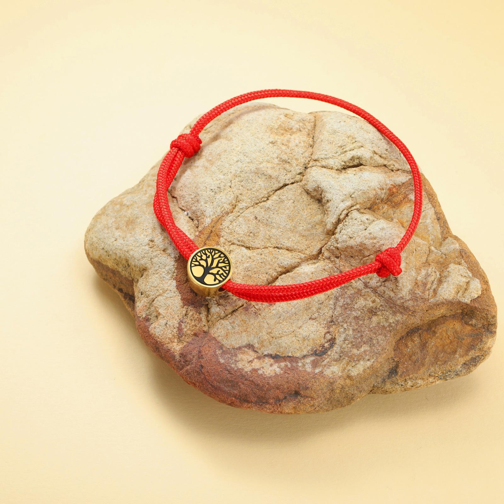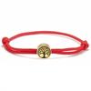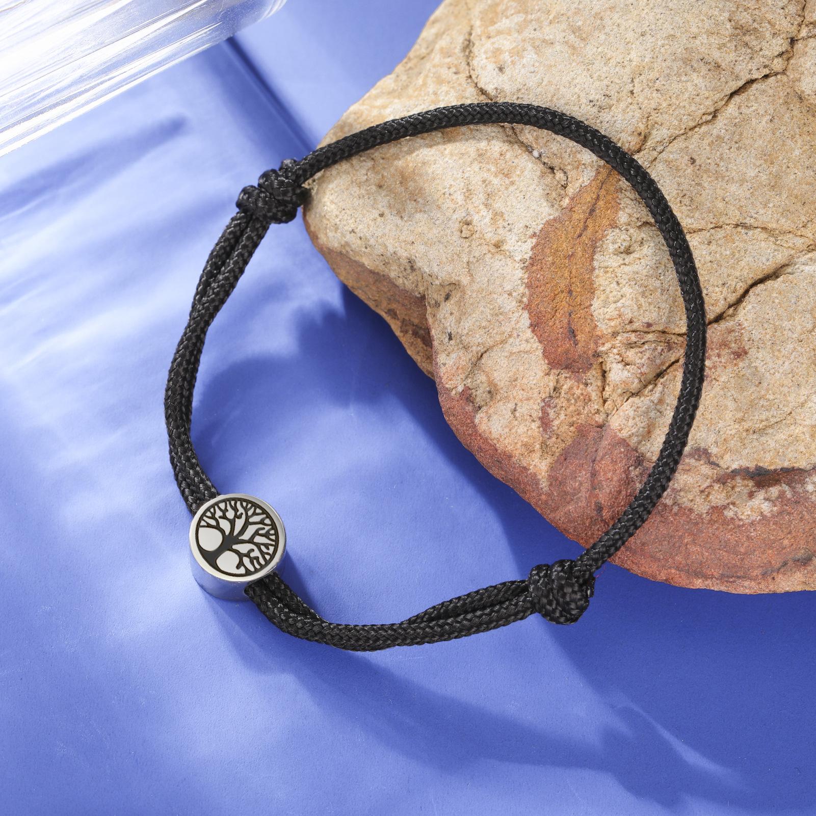 Pulsera de Acero Inoxidable Cortado Color Oro con Alambre Grueso Redondo de Jade Ennegrecido de 6 mm Ajustable con Colgante Pequeño Redondo Grueso de Árbol