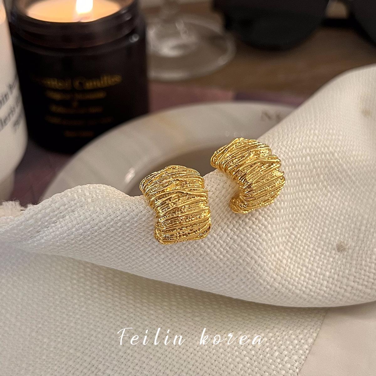 Pendientes de botón dorados de estilo francés para mujer, aretes únicos con diseño de nicho, High Sense 2, nuevos y populares aretes de plata S925.