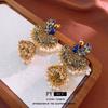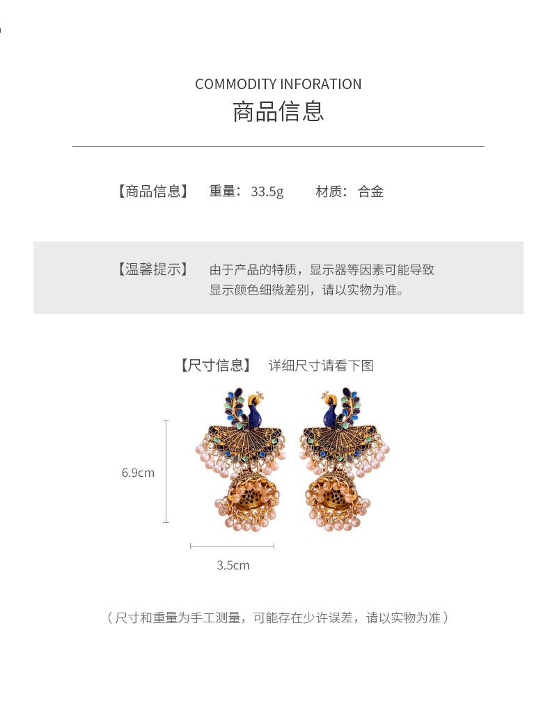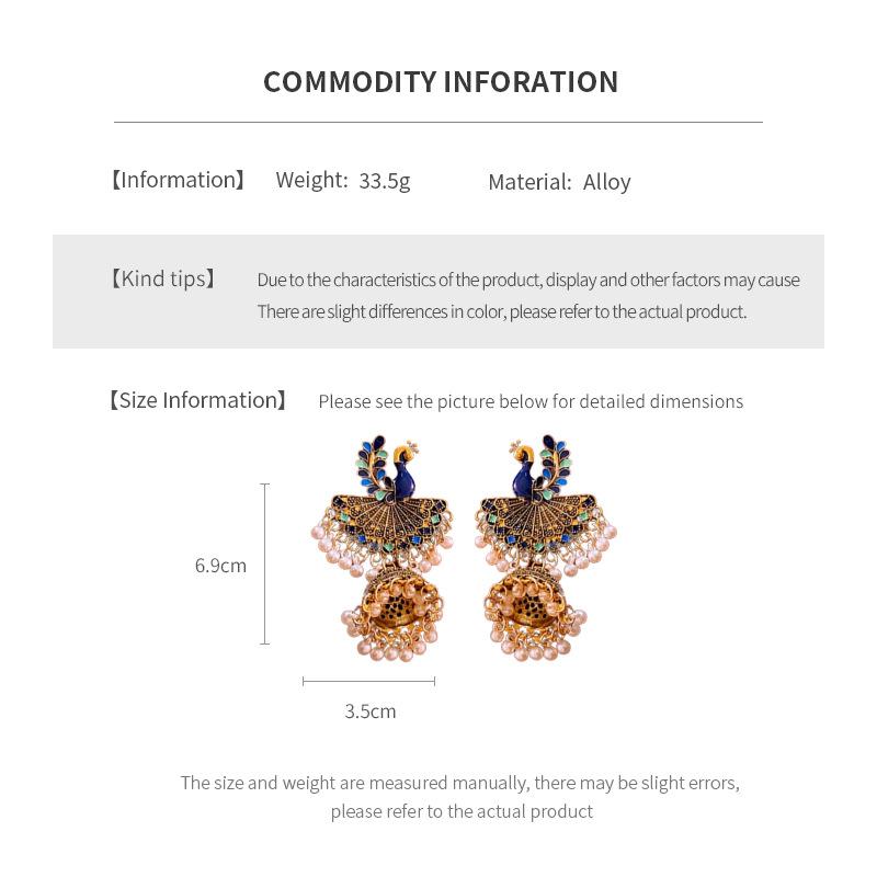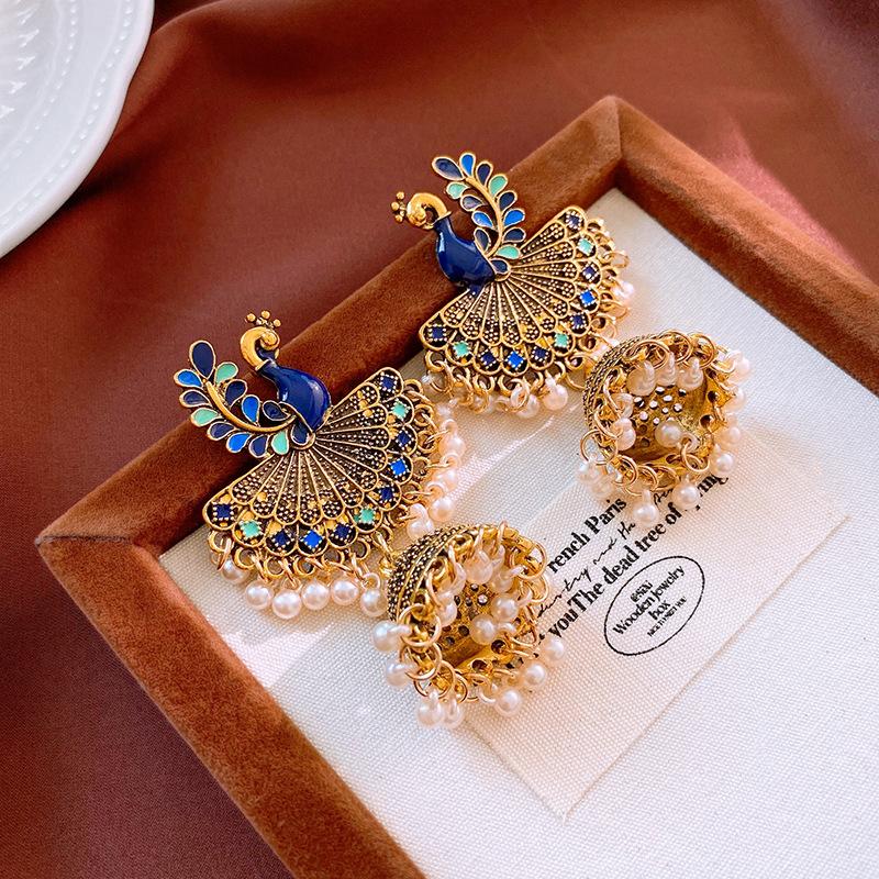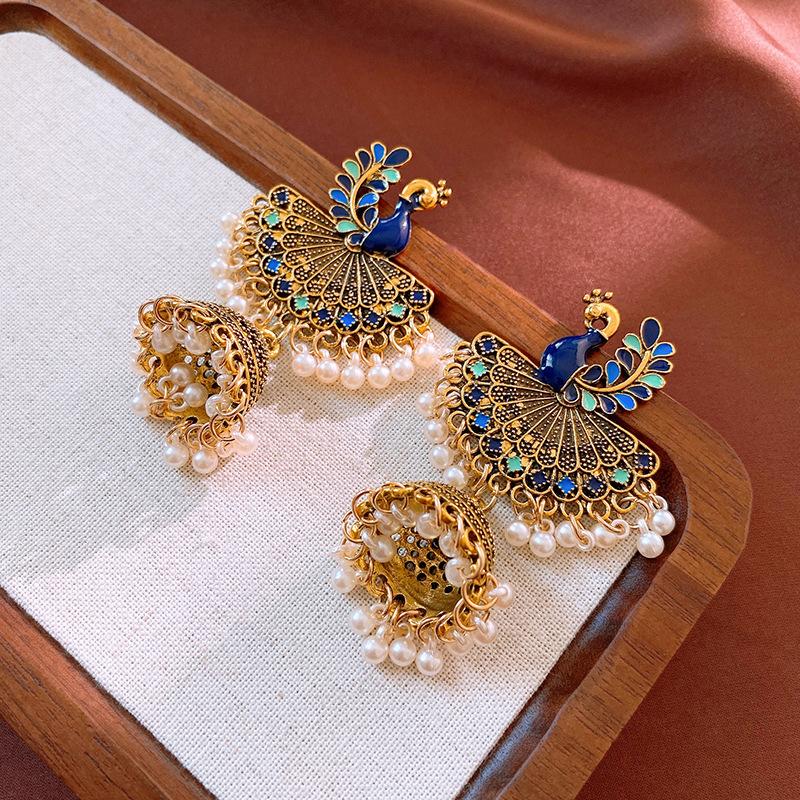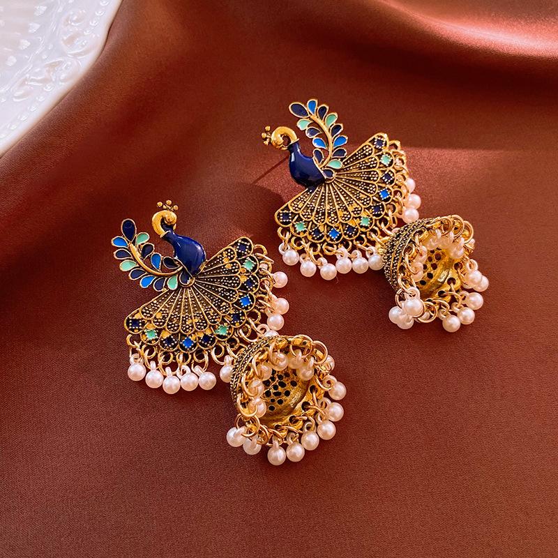 Aretes de Borla con Gota de Aceite de Pavo Real Medio Diseño Exagerado Transfronterizo Aretes Retro Combinables Elegantes Elegantes Venta al por Mayor para Mujeres
