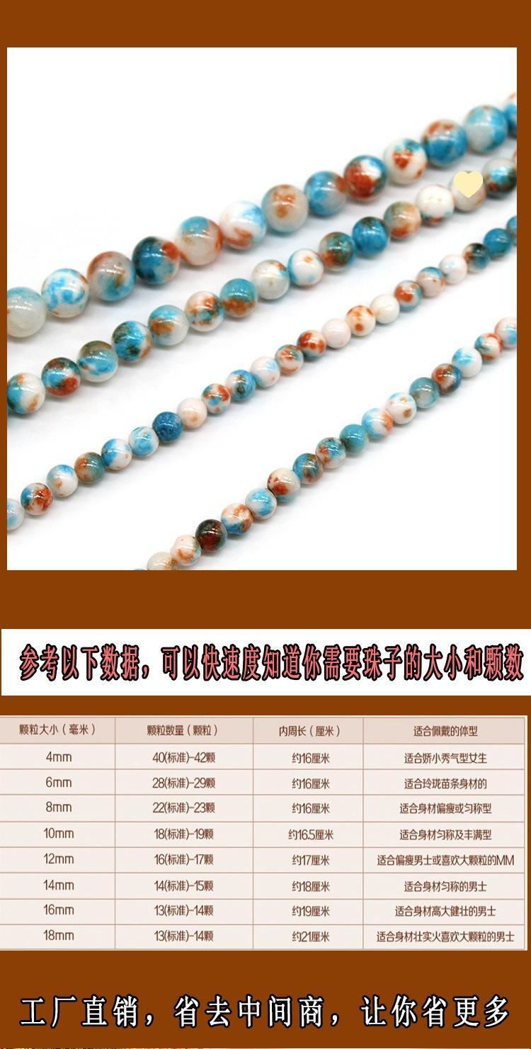 Blue, white and orange Persian jade 6mm 1 piece [about 60 pieces], Blue, white and orange Persian jade 8mm 1 p...