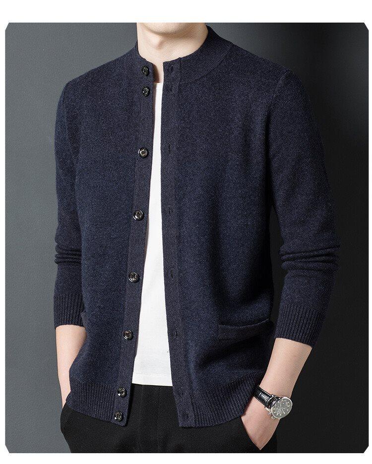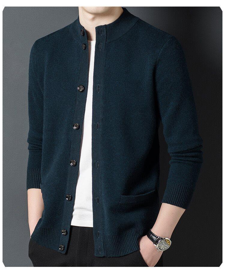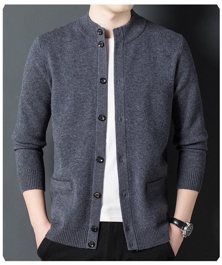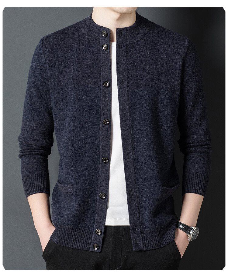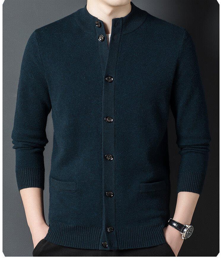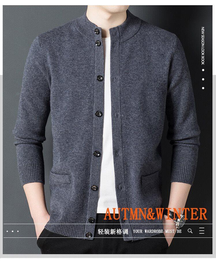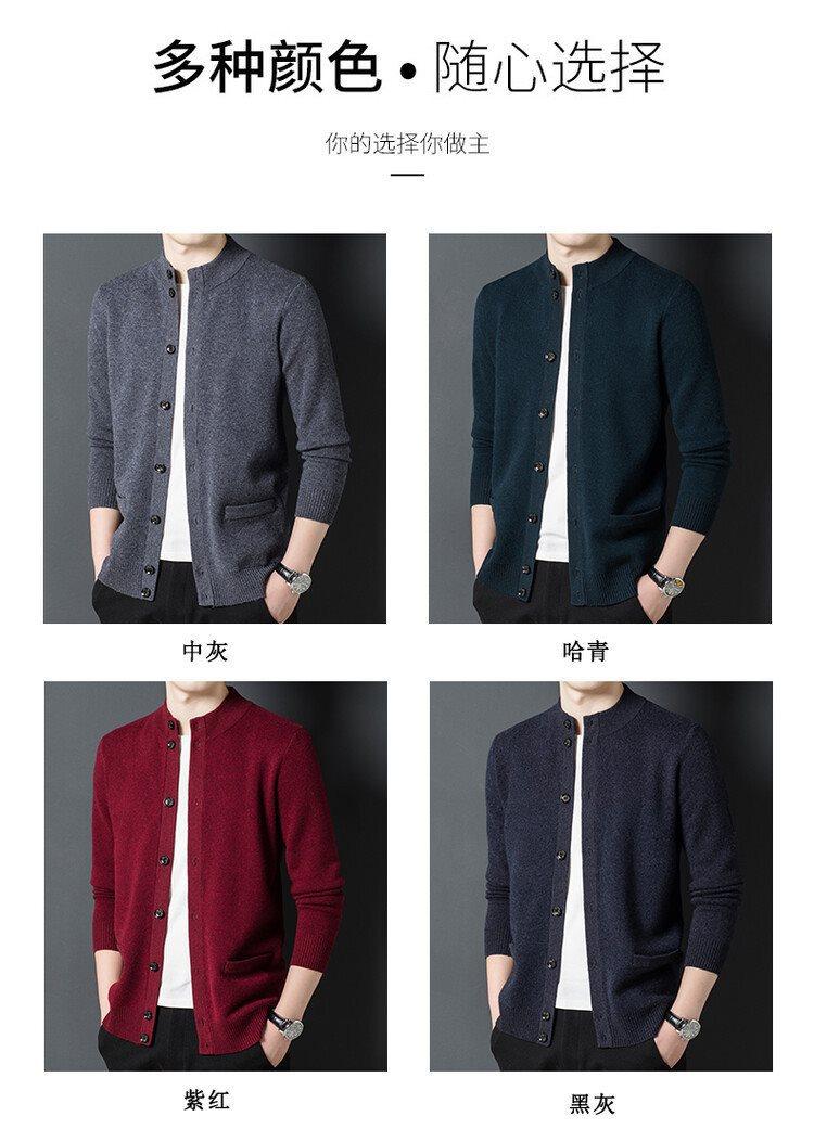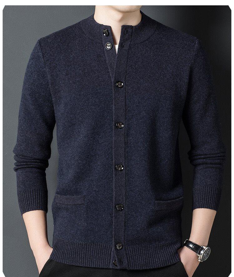 Abrigo de punto grueso de 100% lana para hombre, suéter de otoño e invierno 2024, cárdigan de lana para papá de mediana edad.