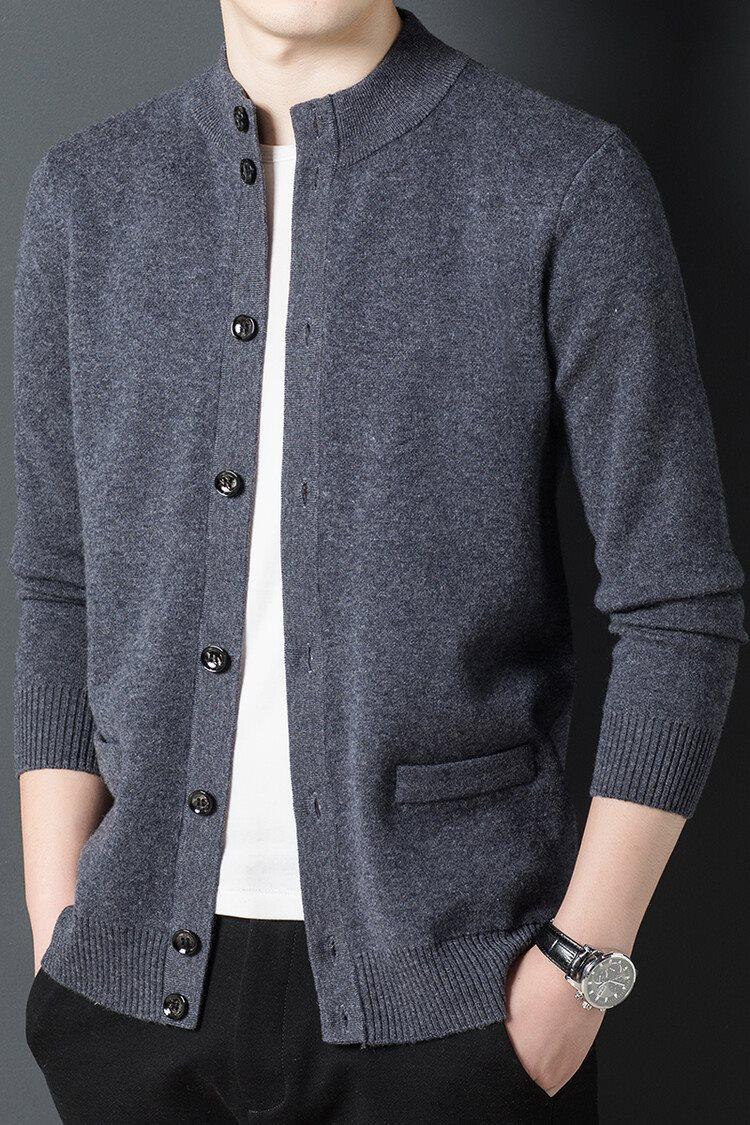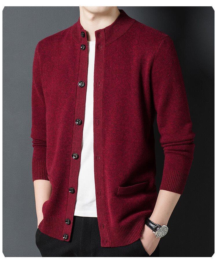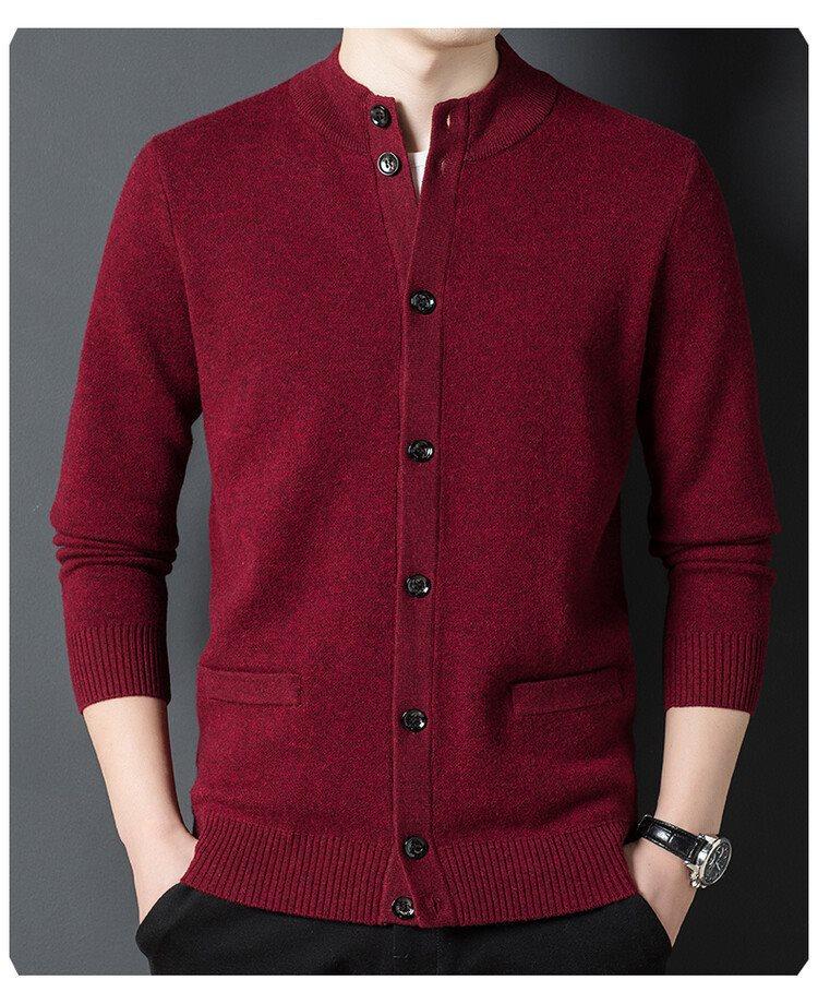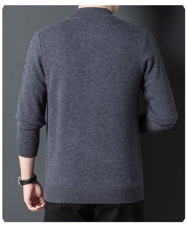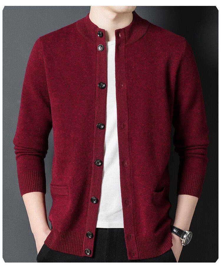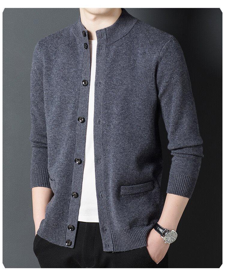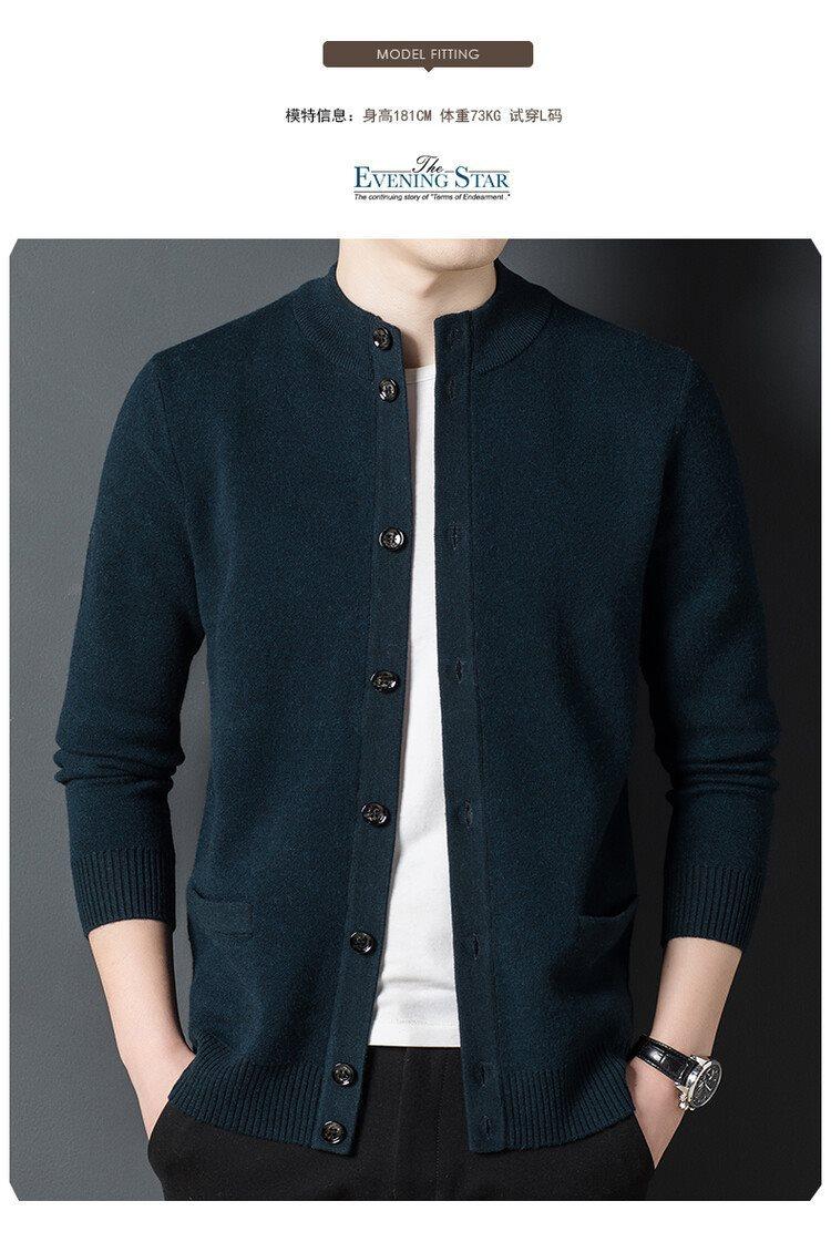 Abrigo de punto grueso de 100% lana para hombre, suéter de otoño e invierno 2024, cárdigan de lana para papá de mediana edad.