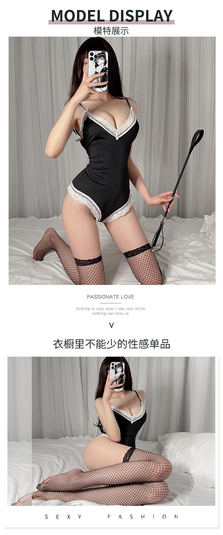 Lencería sexy de comercio exterior europeo y americano, pijama siamés con tirantes de puro deseo, uniforme de pasión caliente, tentación de encaje