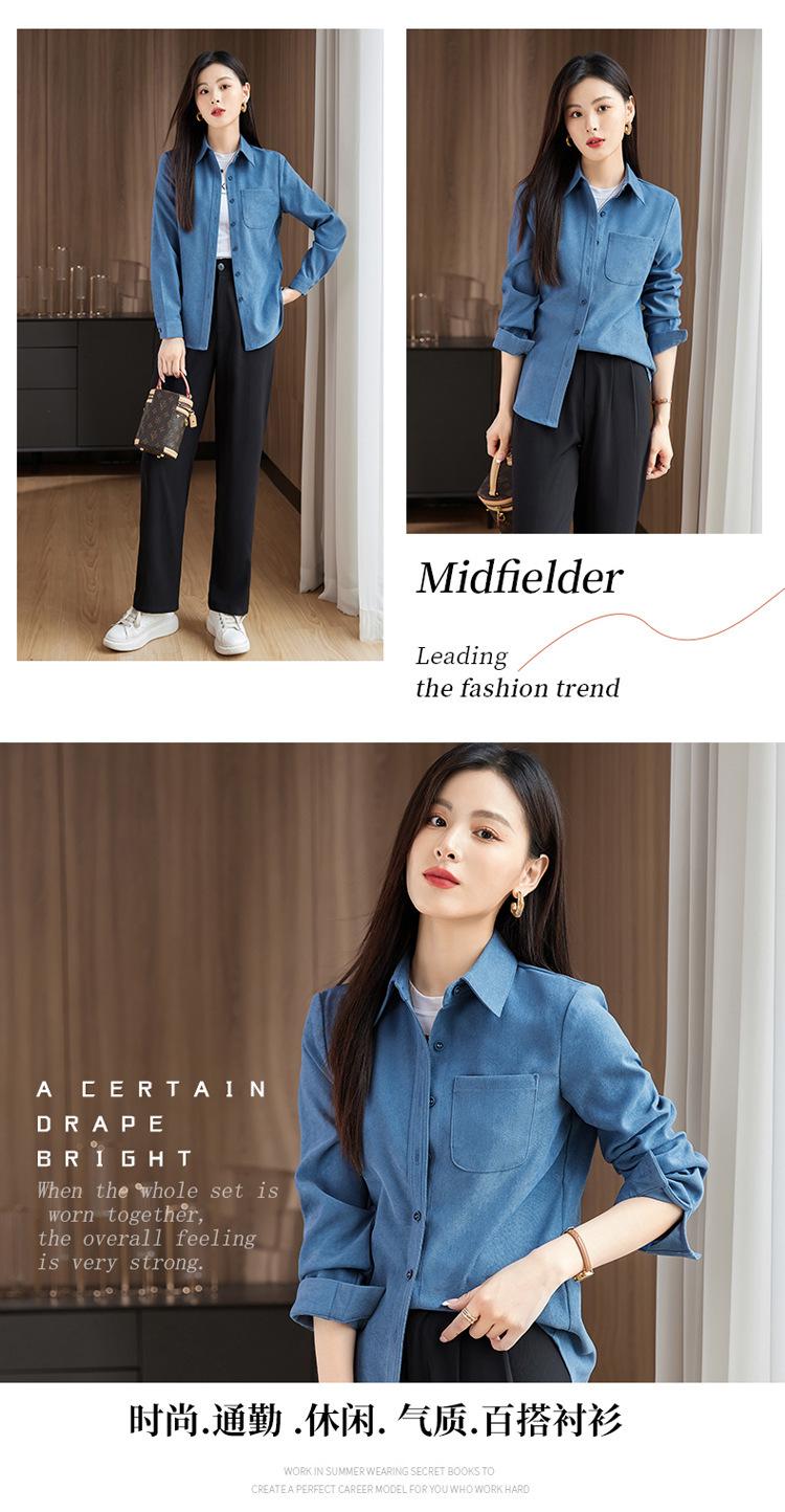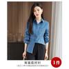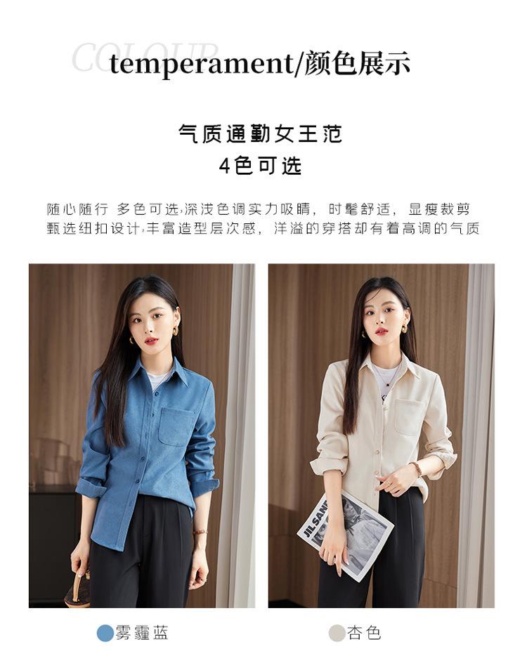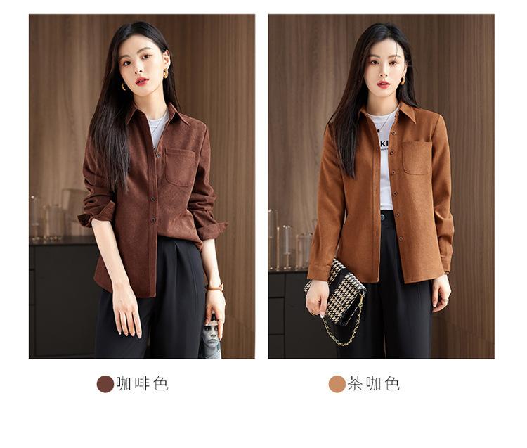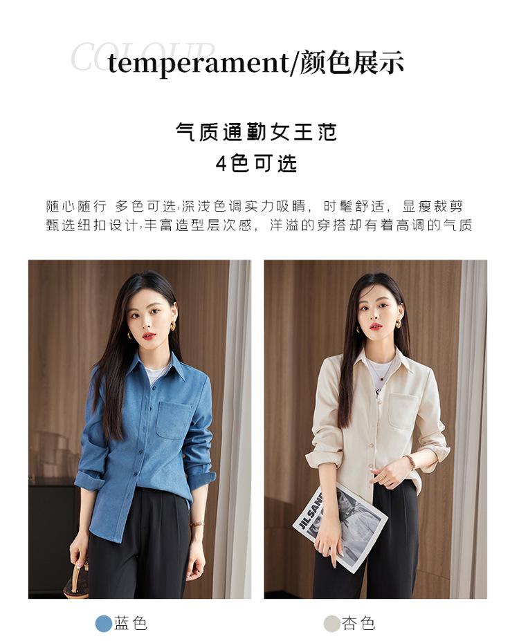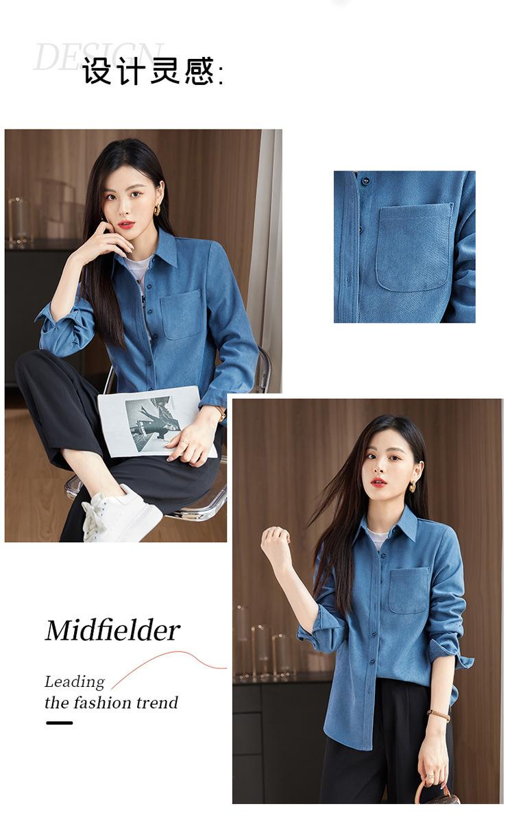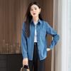 Camisa cepillada de manga larga azul para mujer, otoño e invierno, nueva moda, top de solapa para mujer, camisa informal elegante que combina con todo