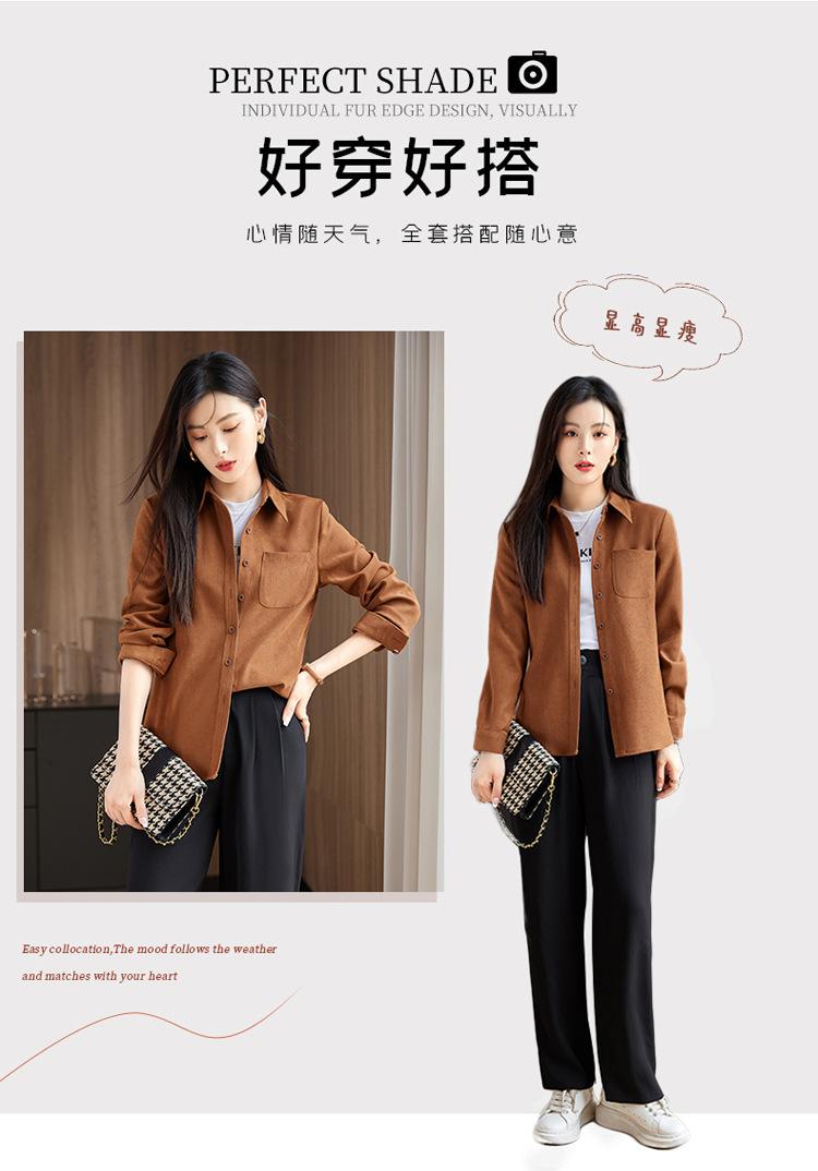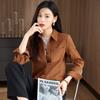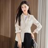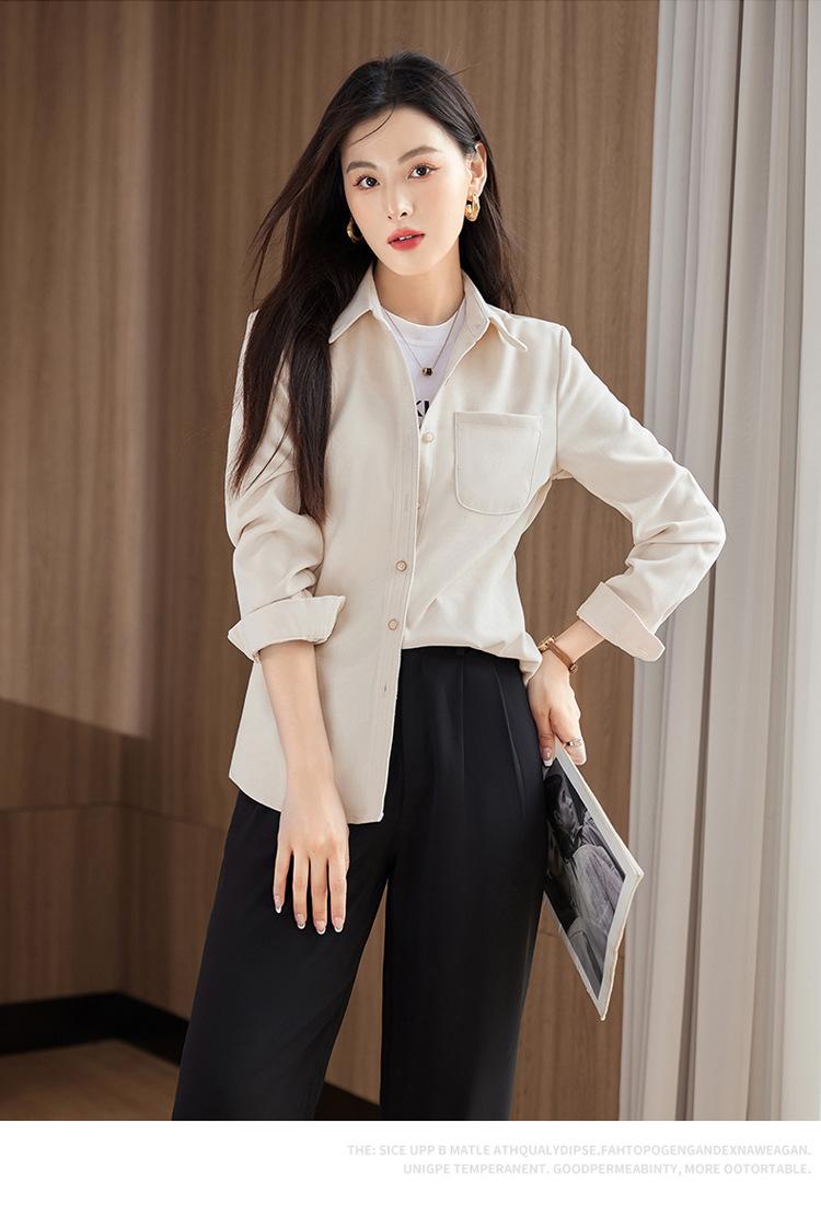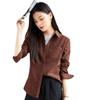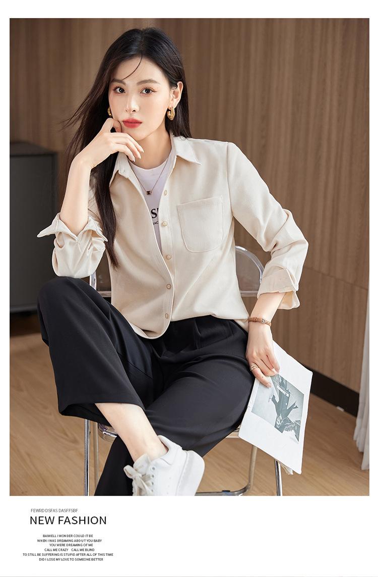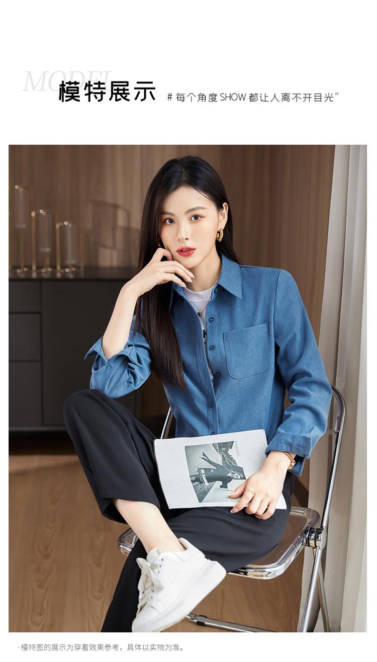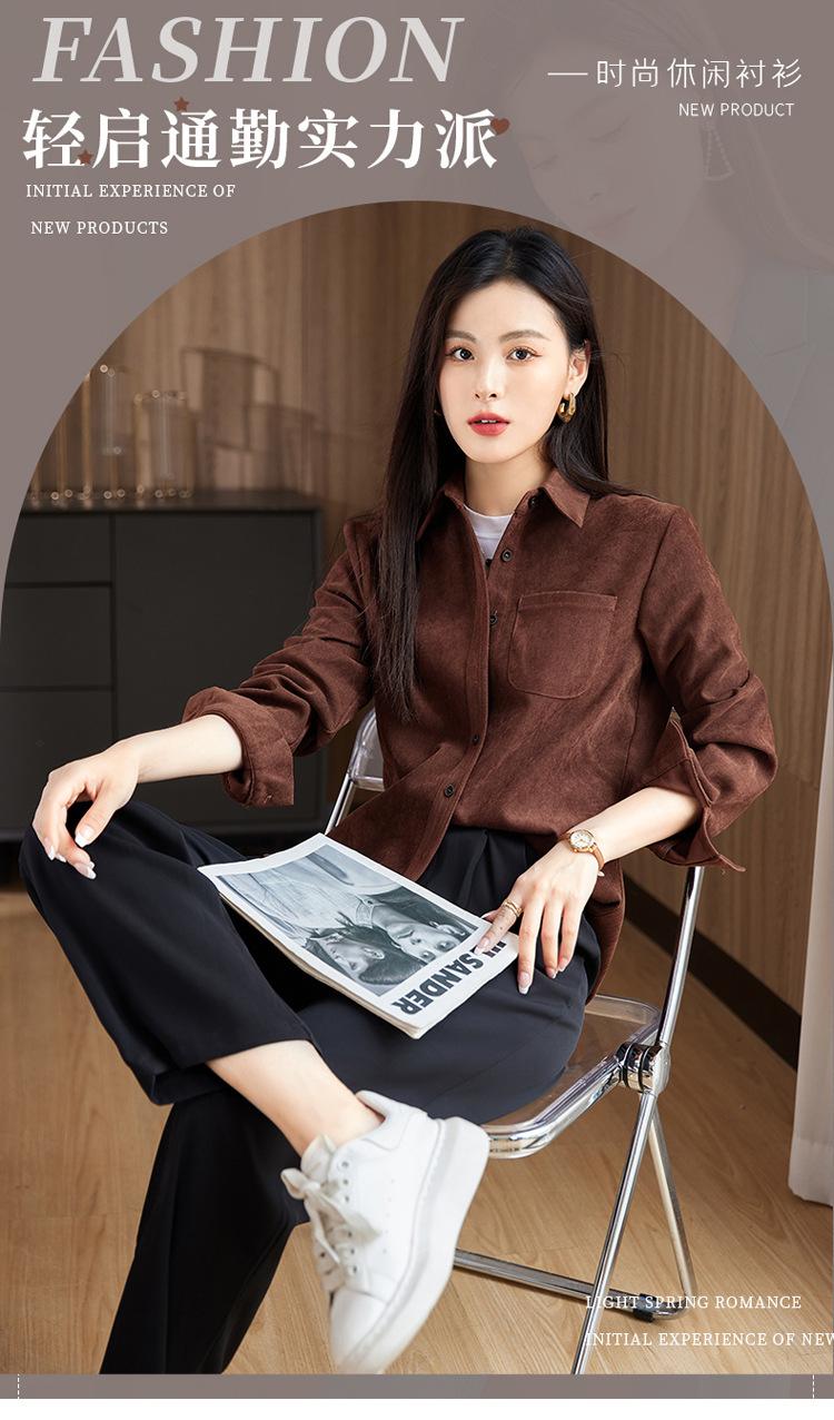 Camisa cepillada de manga larga azul para mujer, otoño e invierno, nueva moda, top de solapa para mujer, camisa informal elegante que combina con todo