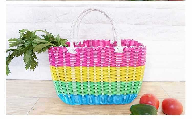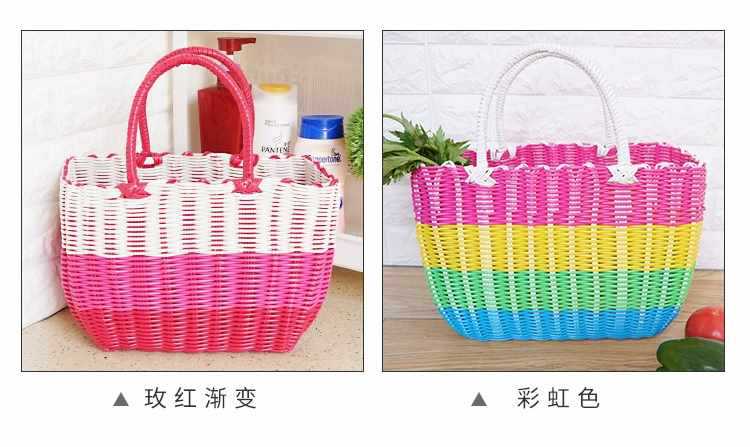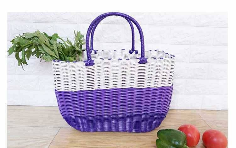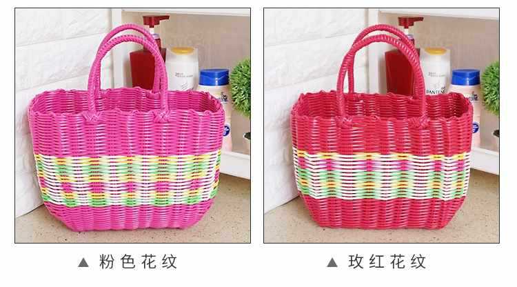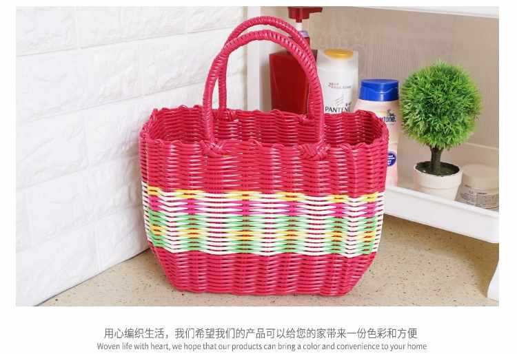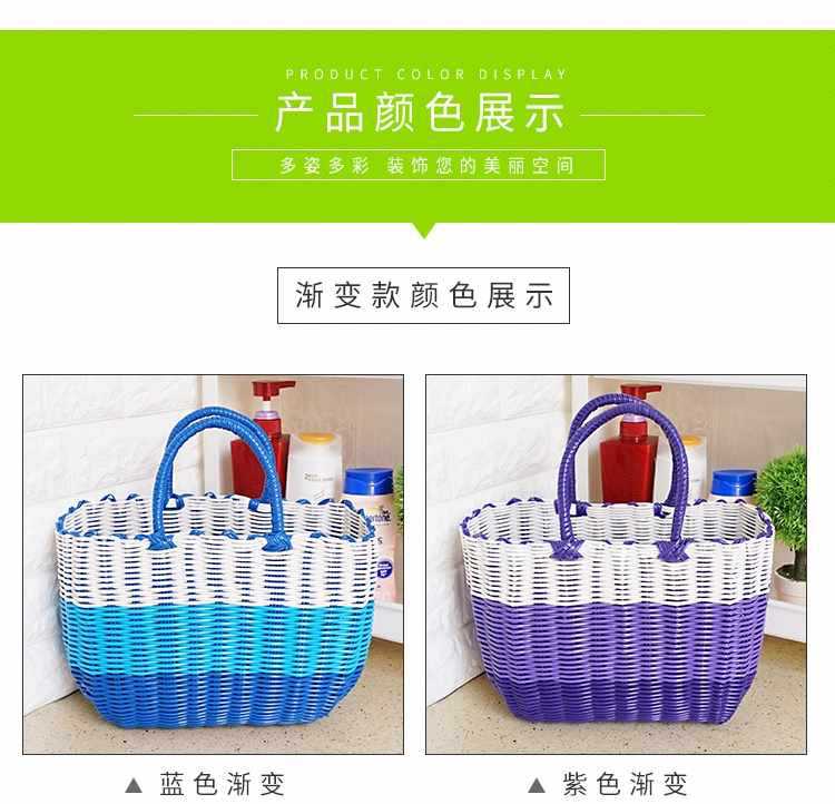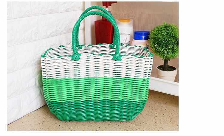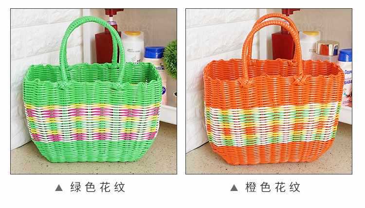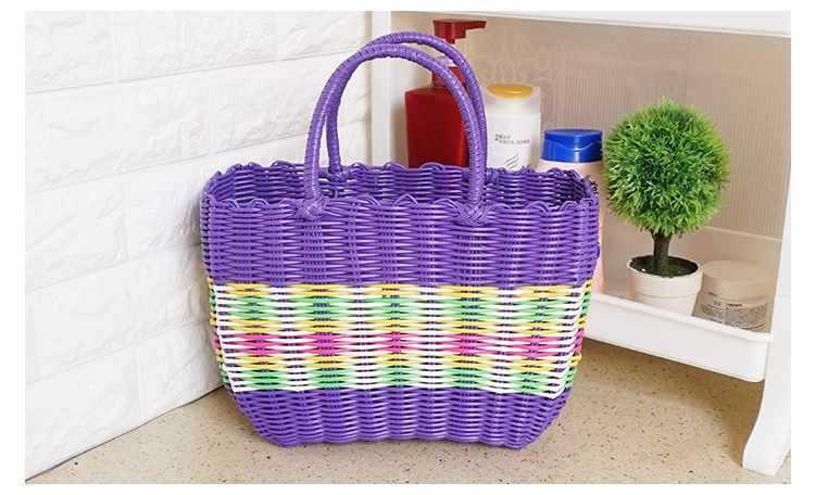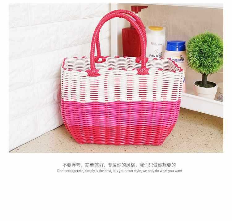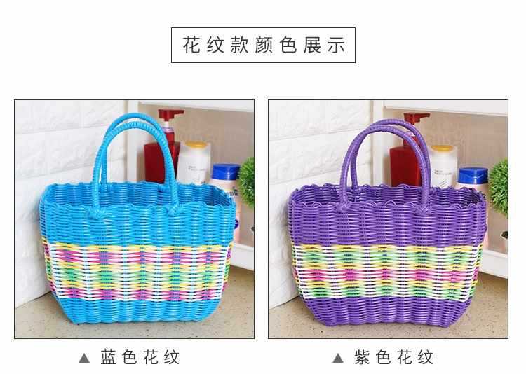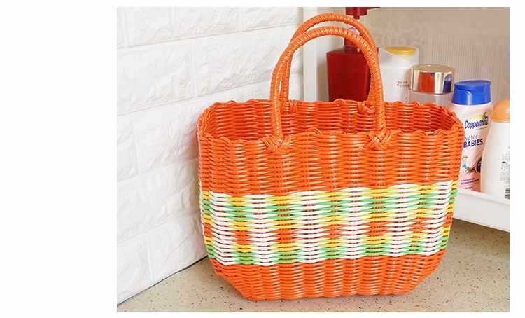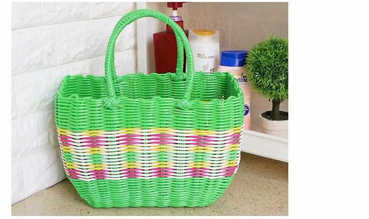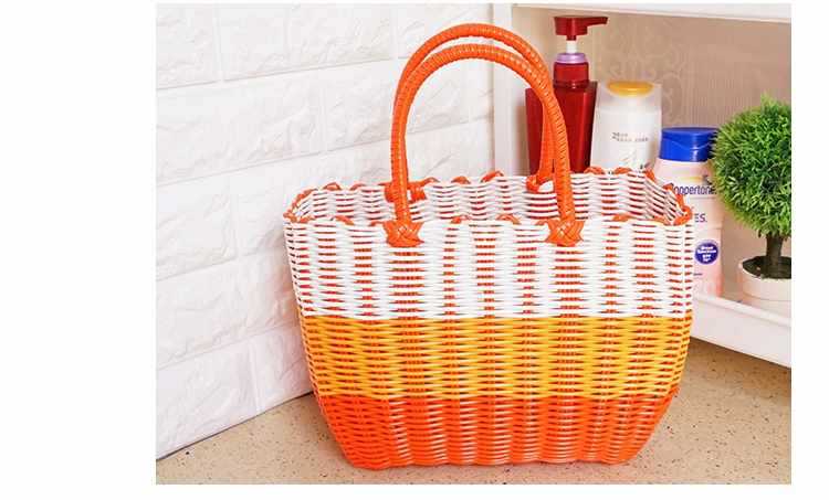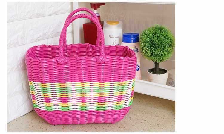 Cesta de compras tejida de plástico, cesta portátil para verduras, cesta para mascotas, cesta de compras para baño, cesta de baño de ratán, cesta de almacenamiento para picnic