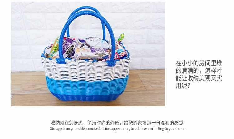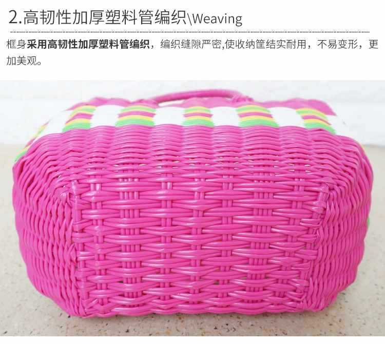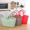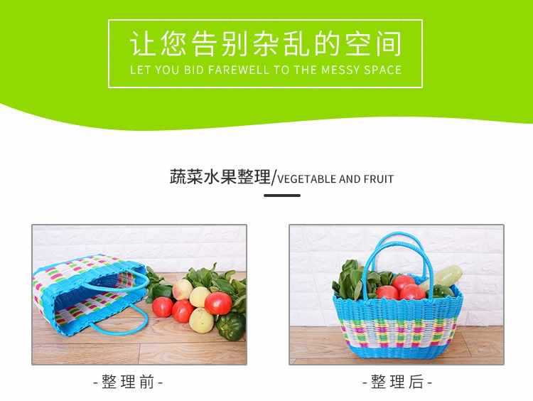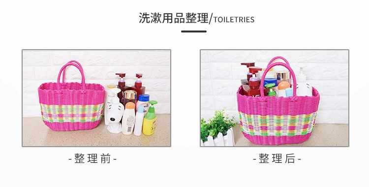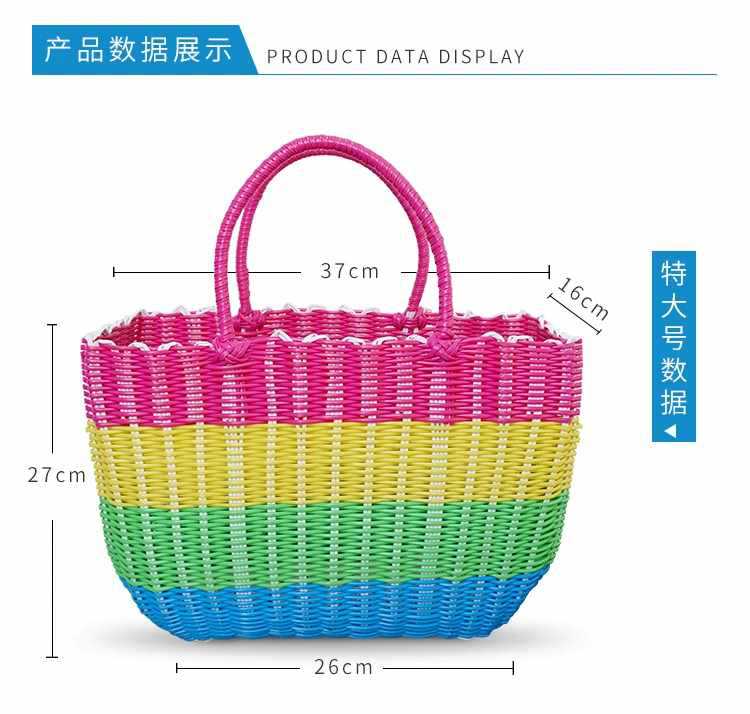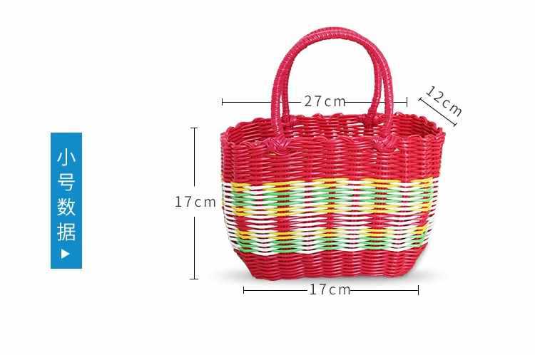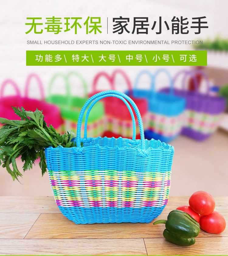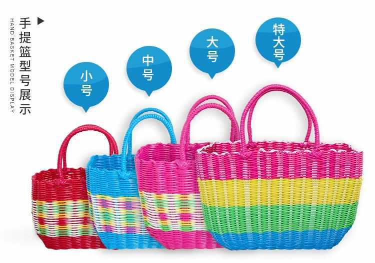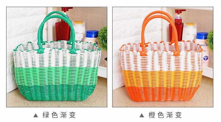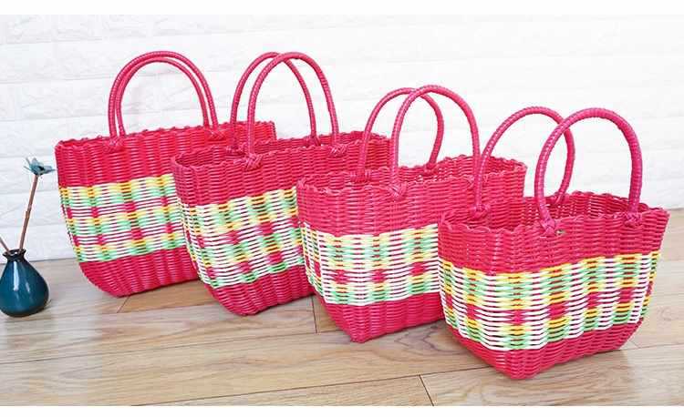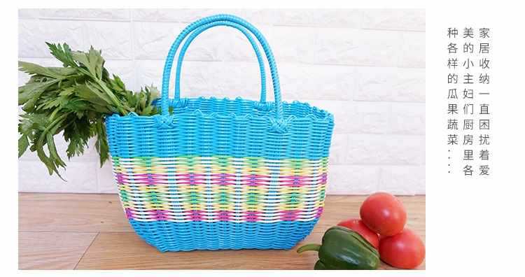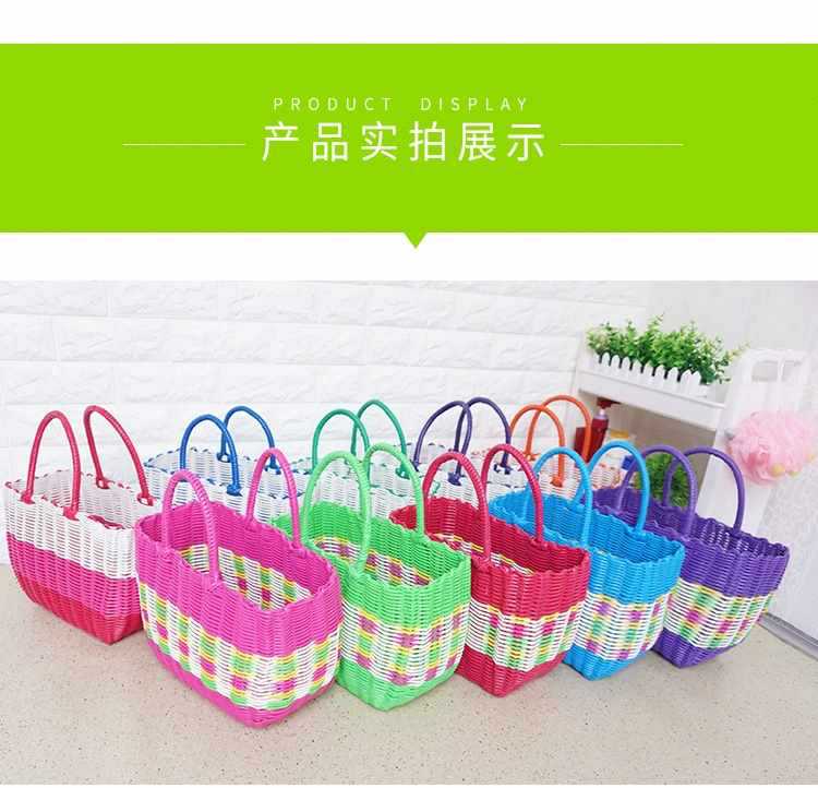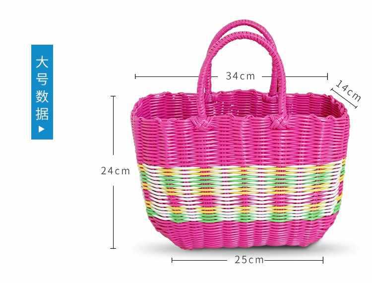 Cesta de compras tejida de plástico, cesta portátil para verduras, cesta para mascotas, cesta de compras para baño, cesta de baño de ratán, cesta de almacenamiento para picnic