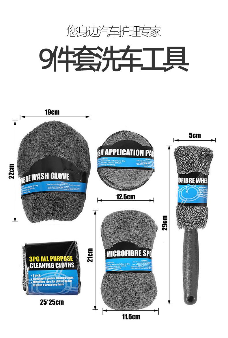 Guantes de lavado de autos de 9 piezas herramienta de limpieza hogar cepillo para neumáticos esponja toalla cepillo para limpieza de autos