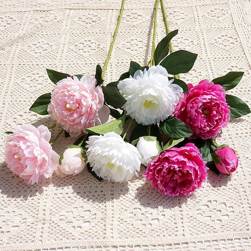 Compra Rama Única de 3 Peonías, Peonía de Álamo, Flor Artificial, Flor Artificial, Exhibición para el Hogar, Florales de Decoración Suave para Estudio de Bodas al por mayor en Joom.pro