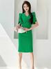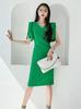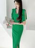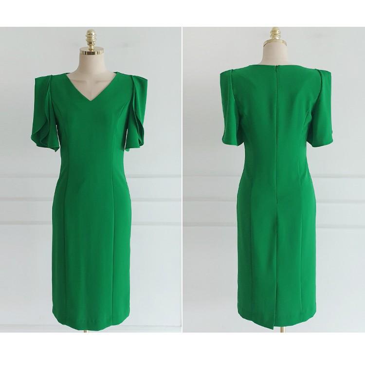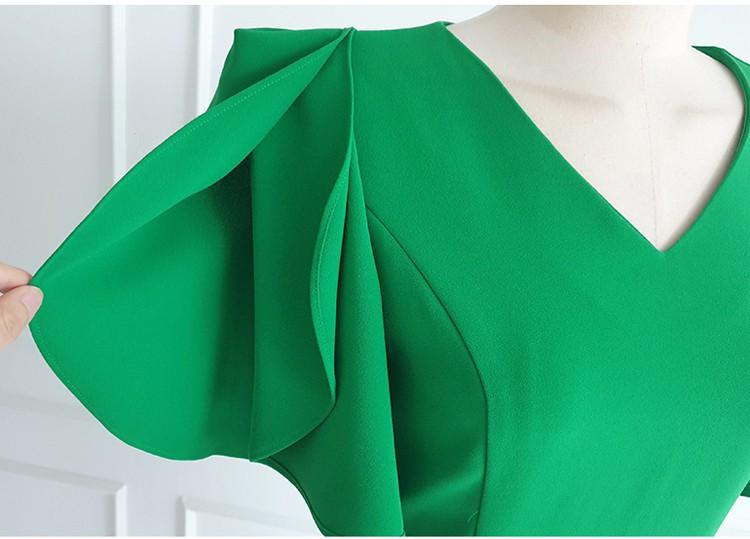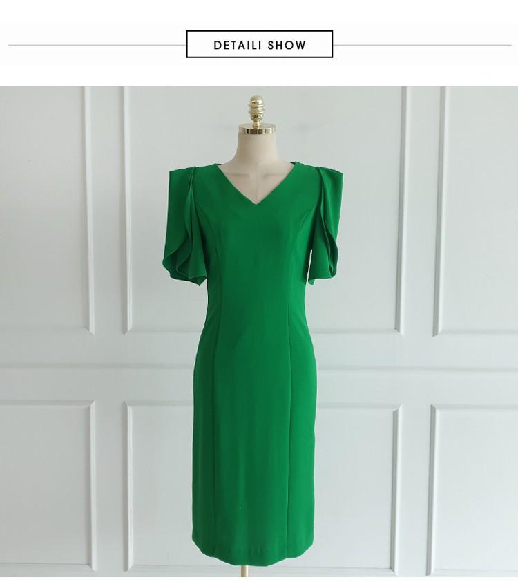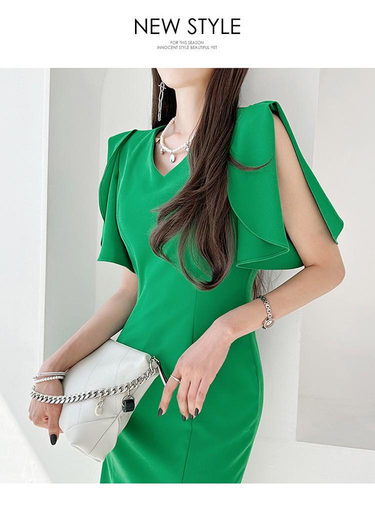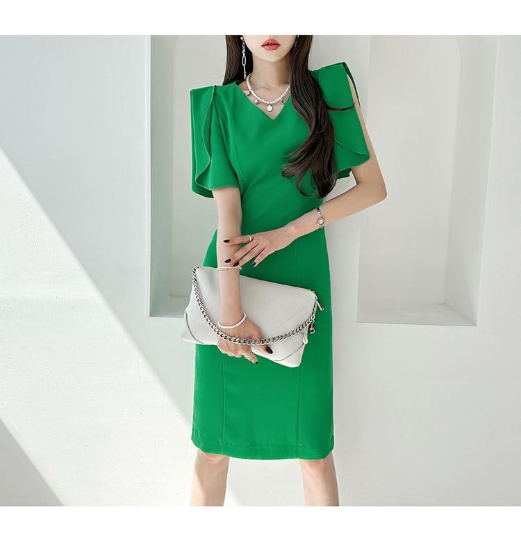 Compra Verano 2025 Nuevo Estilo Coreano Ajustado Largo Medio Cuello en V Manga Hoja de Loto Moda Vestido Ajustado a la Cadera para Mujer al por mayor en Joom.pro