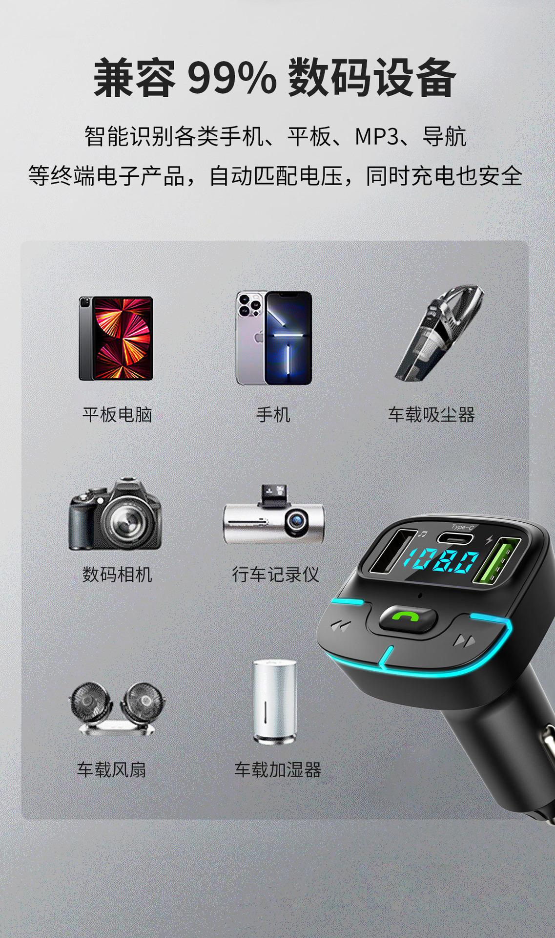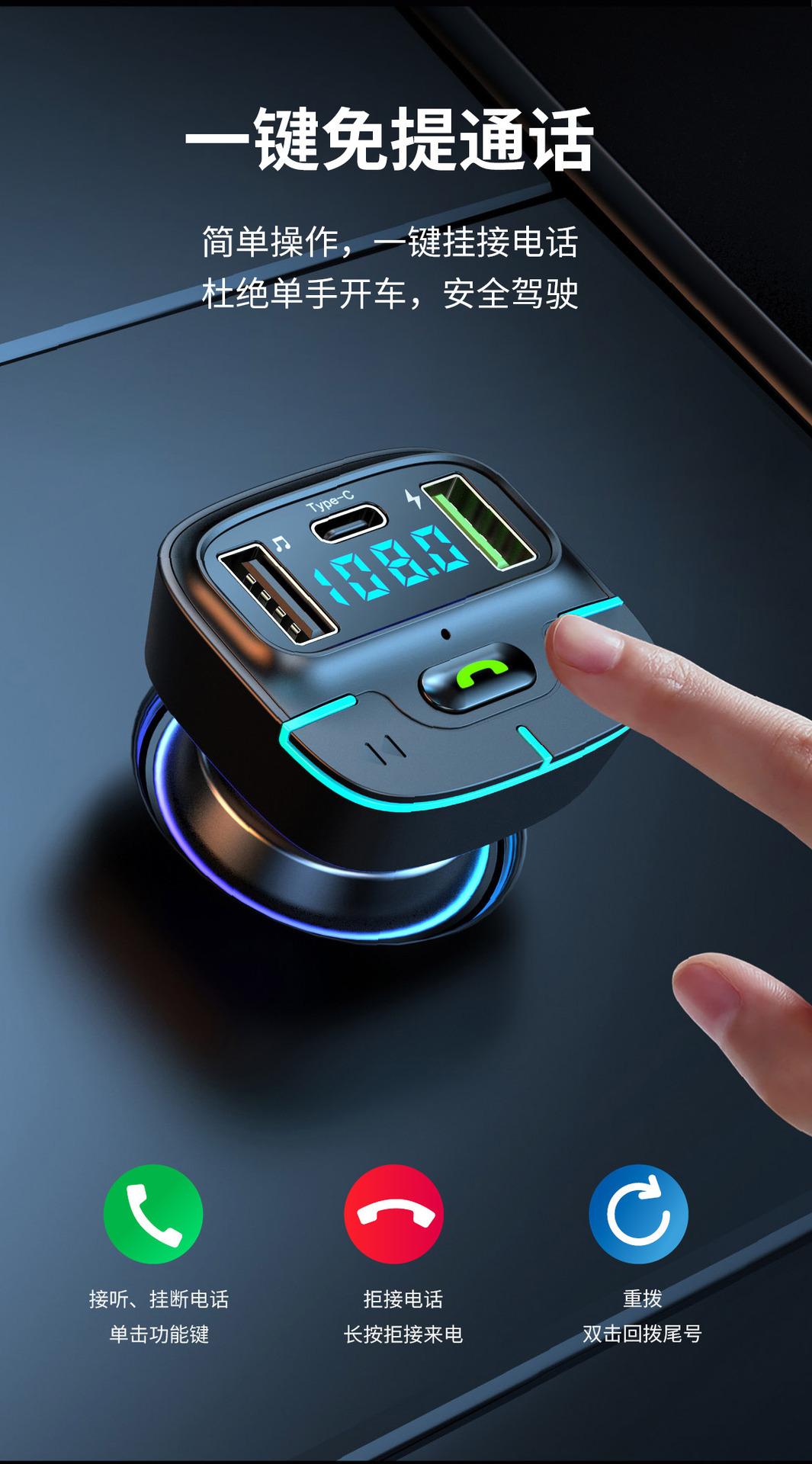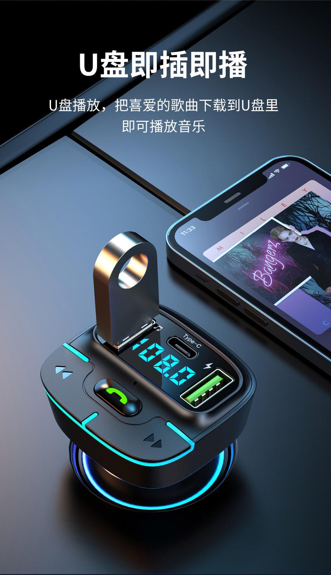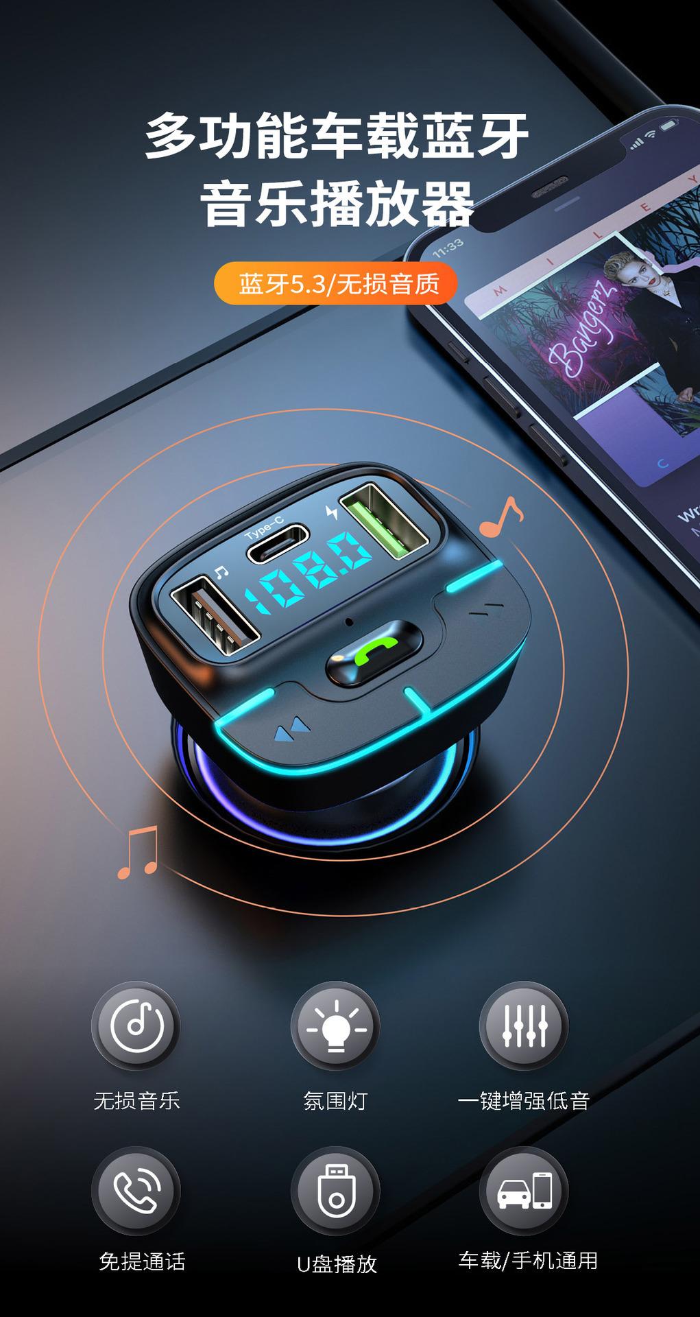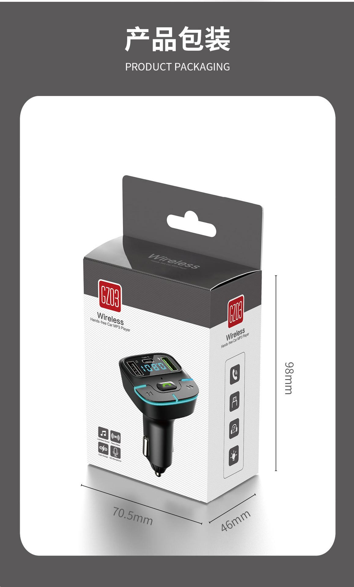 Reproductor MP3 Bluetooth para coche, manos libres, carga USB, transmisor FM, receptor de luz ambiental, GZ03, 2023
