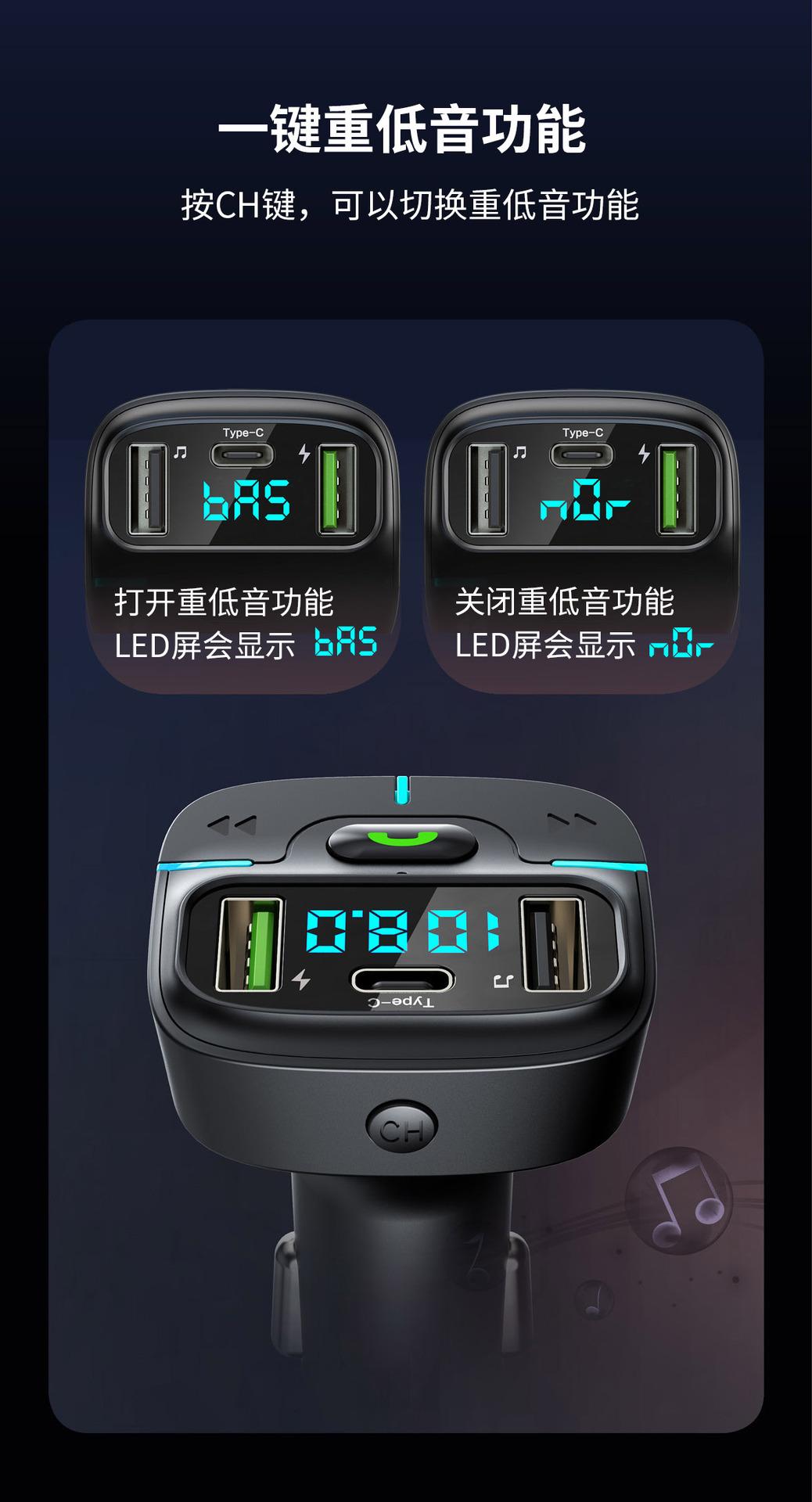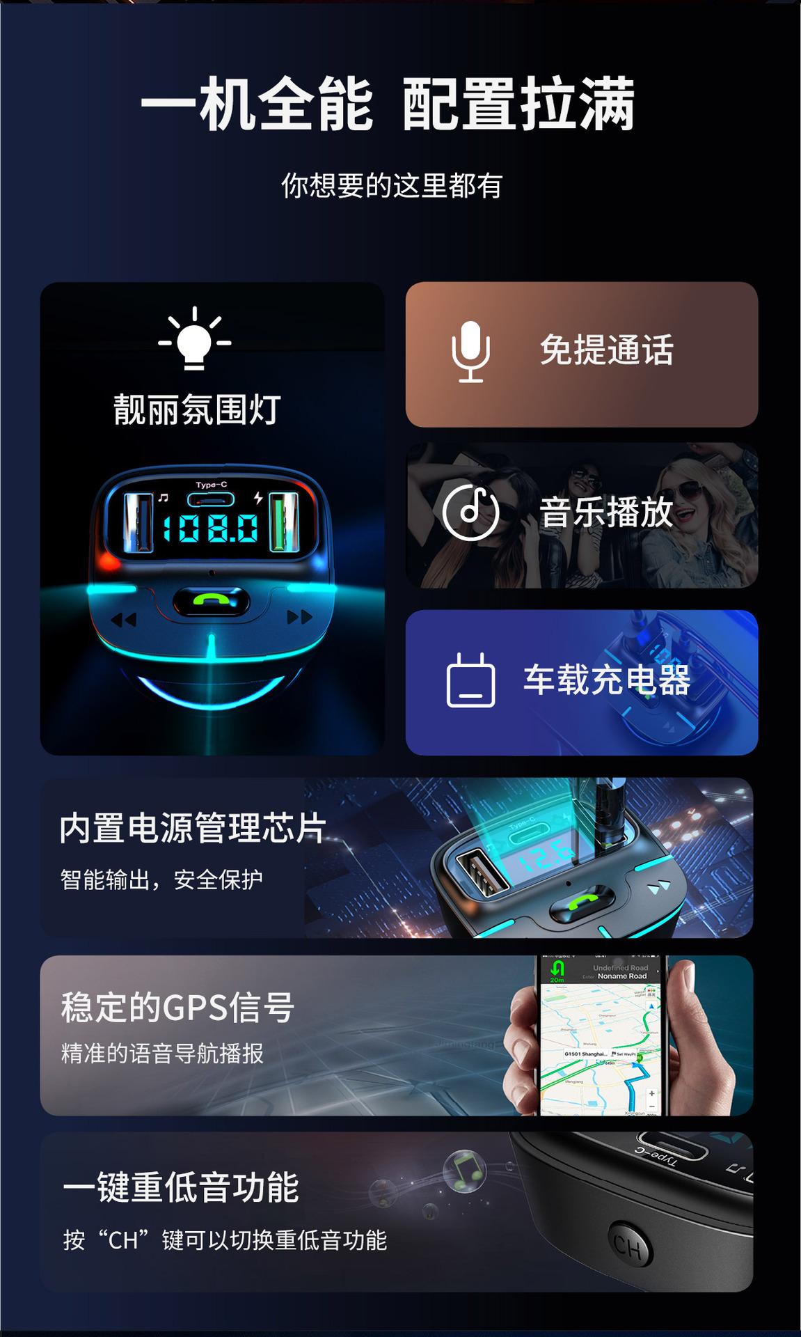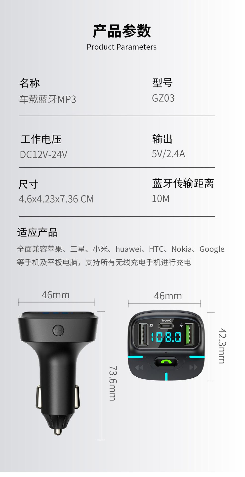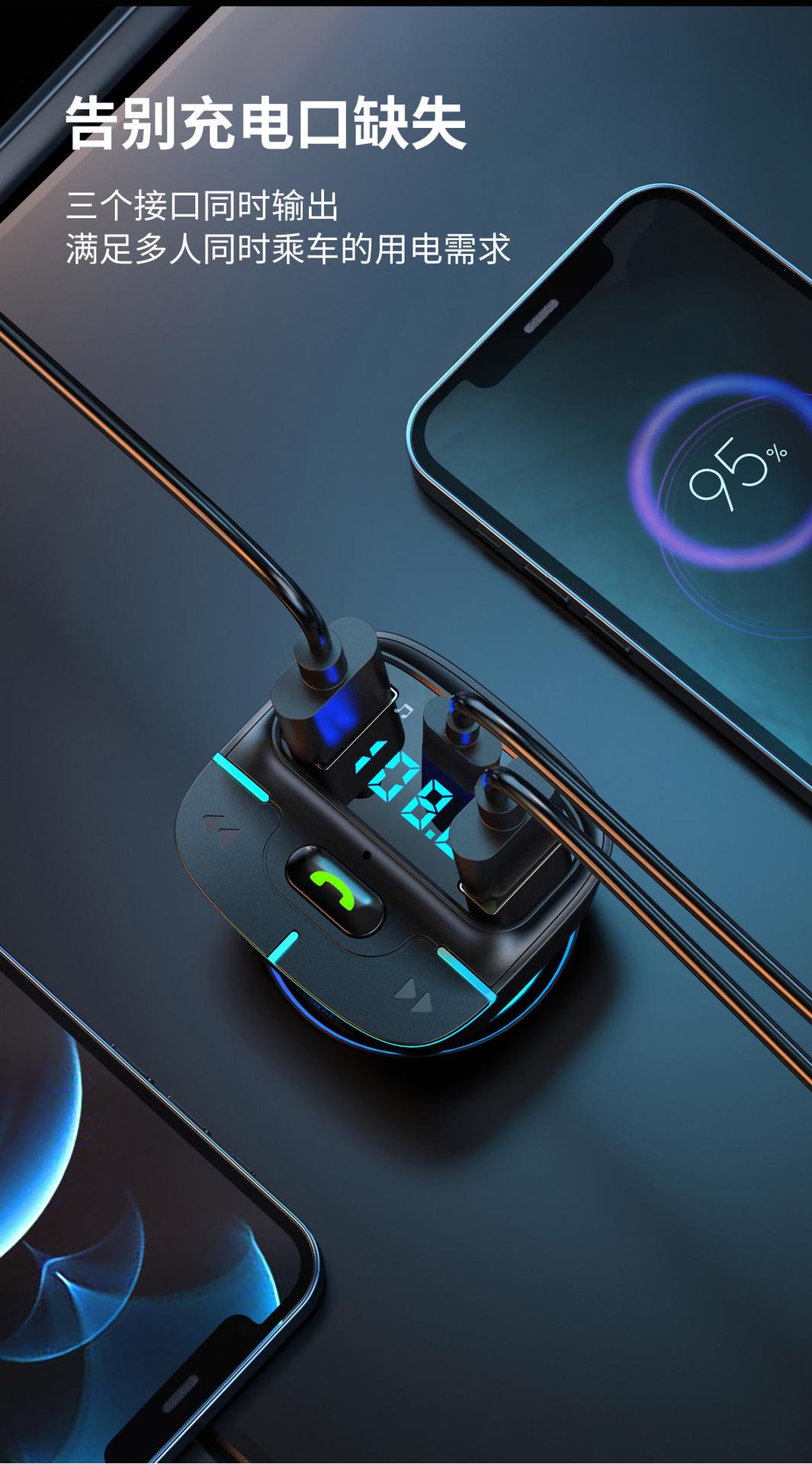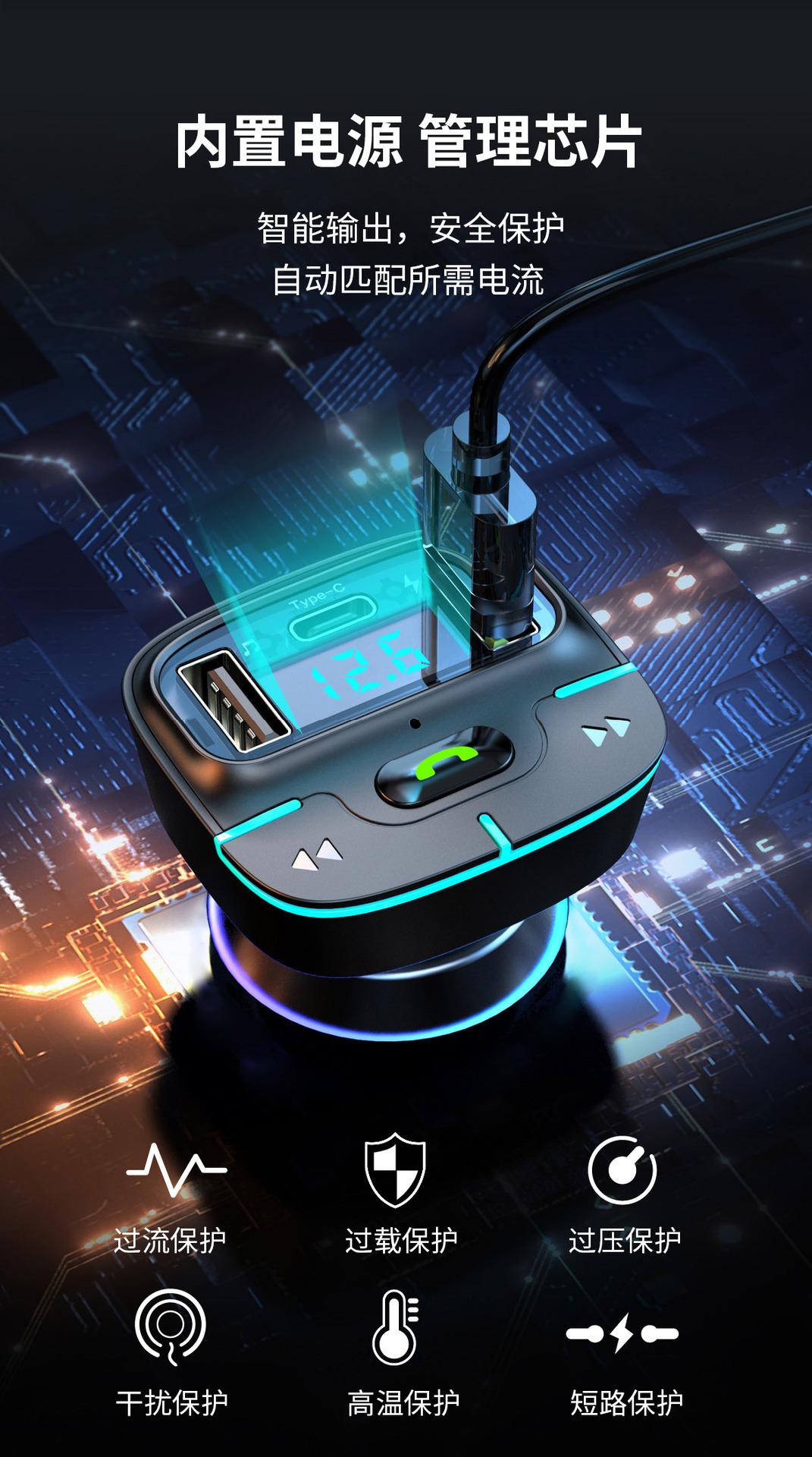 Reproductor MP3 Bluetooth para coche, manos libres, carga USB, transmisor FM, receptor de luz ambiental, GZ03, 2023