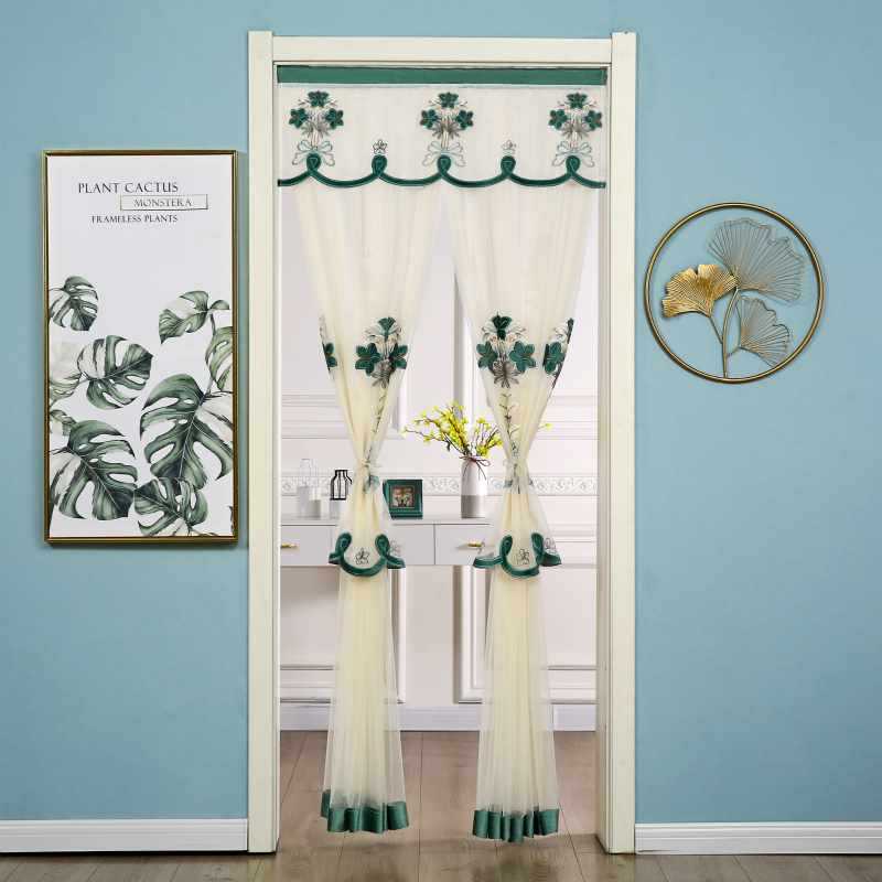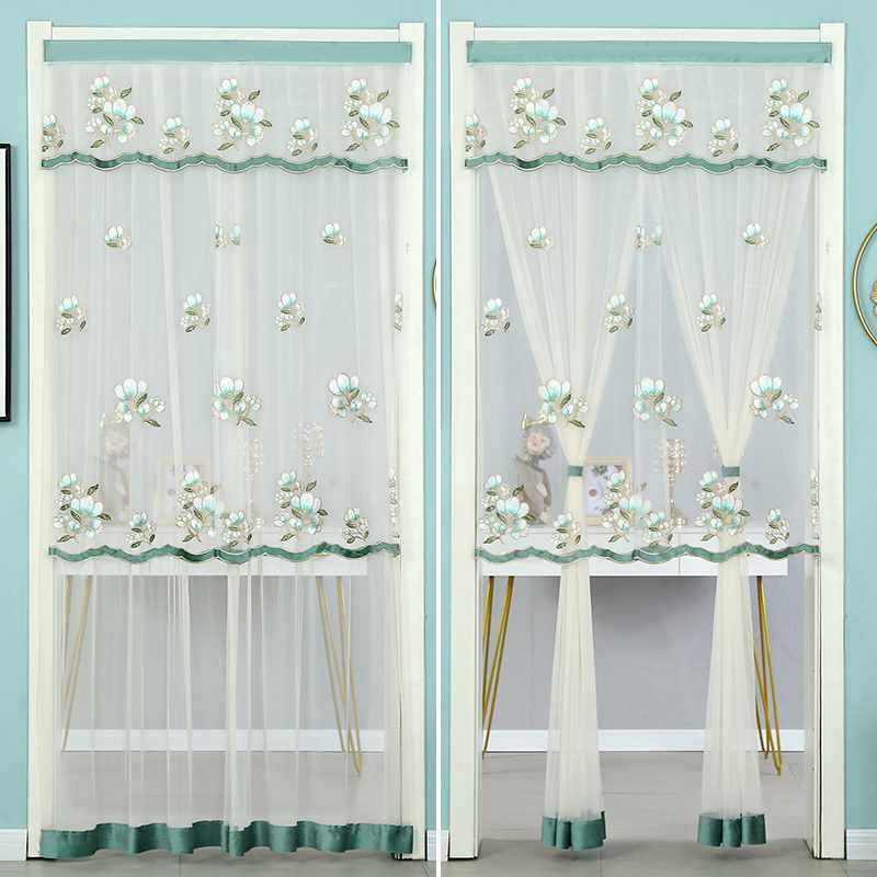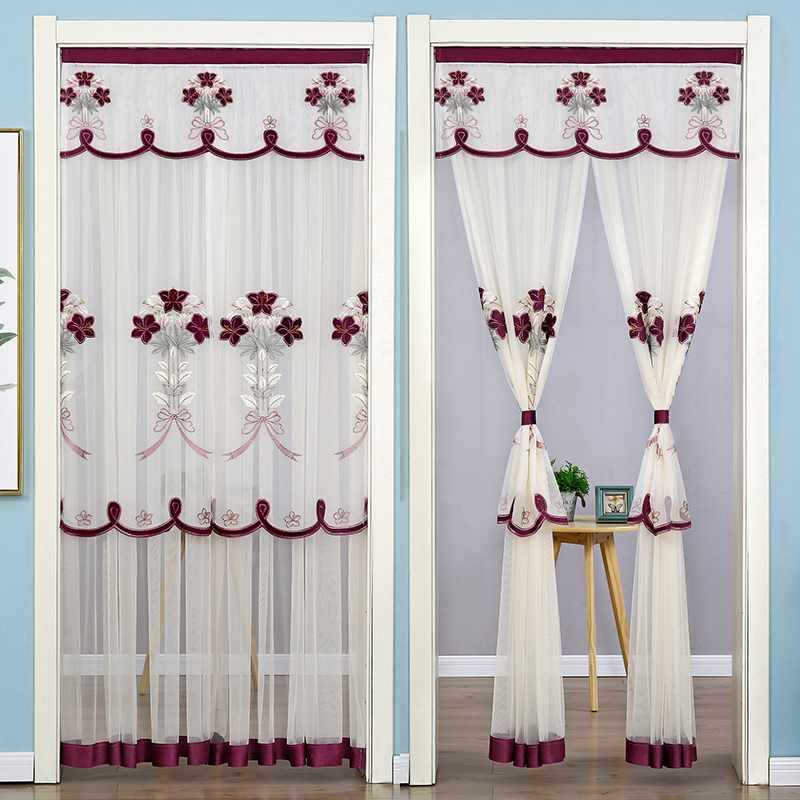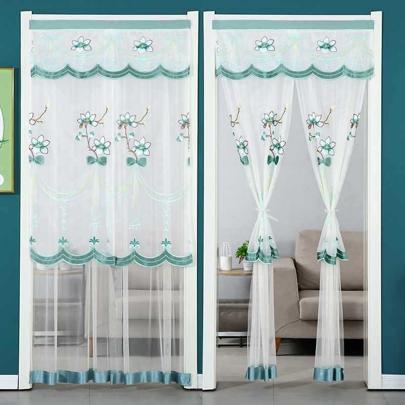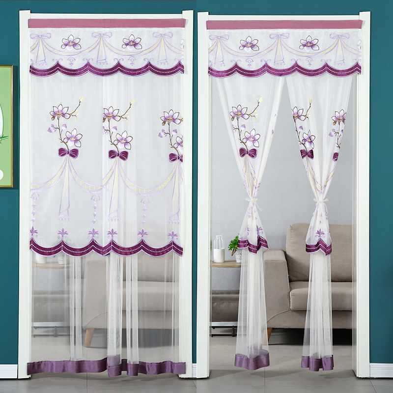 Cortina de puerta de encaje para el hogar, cortina de gasa a prueba de mosquitos para las cuatro estaciones, cortina divisoria universal de verano de doble capa, cortina de gasa para puerta de dormitorio sin perforaciones