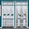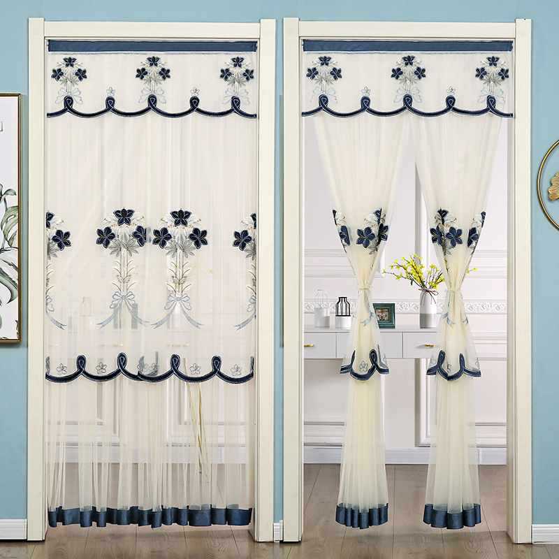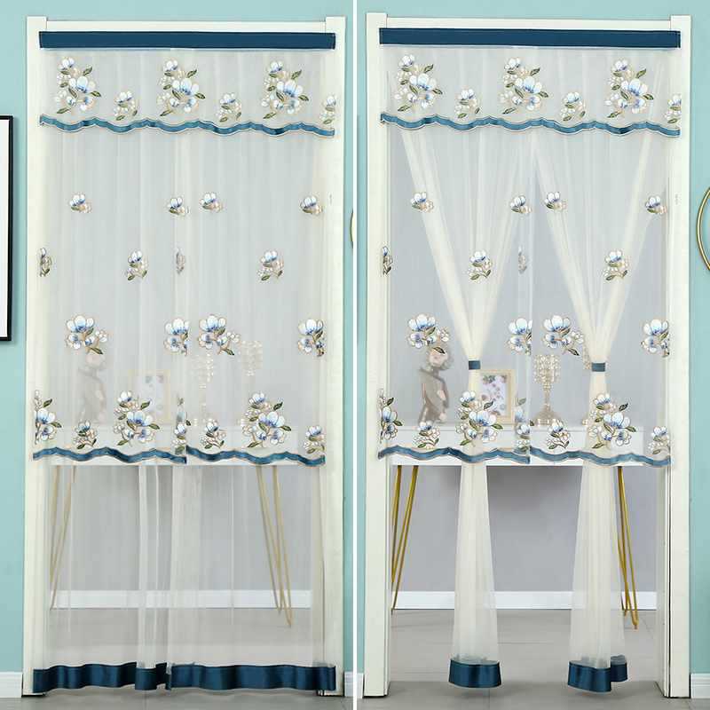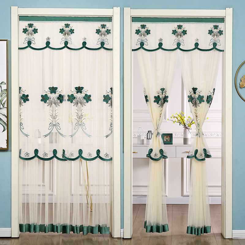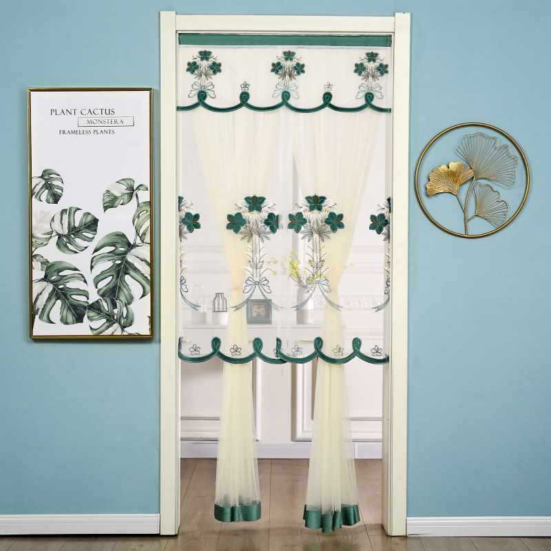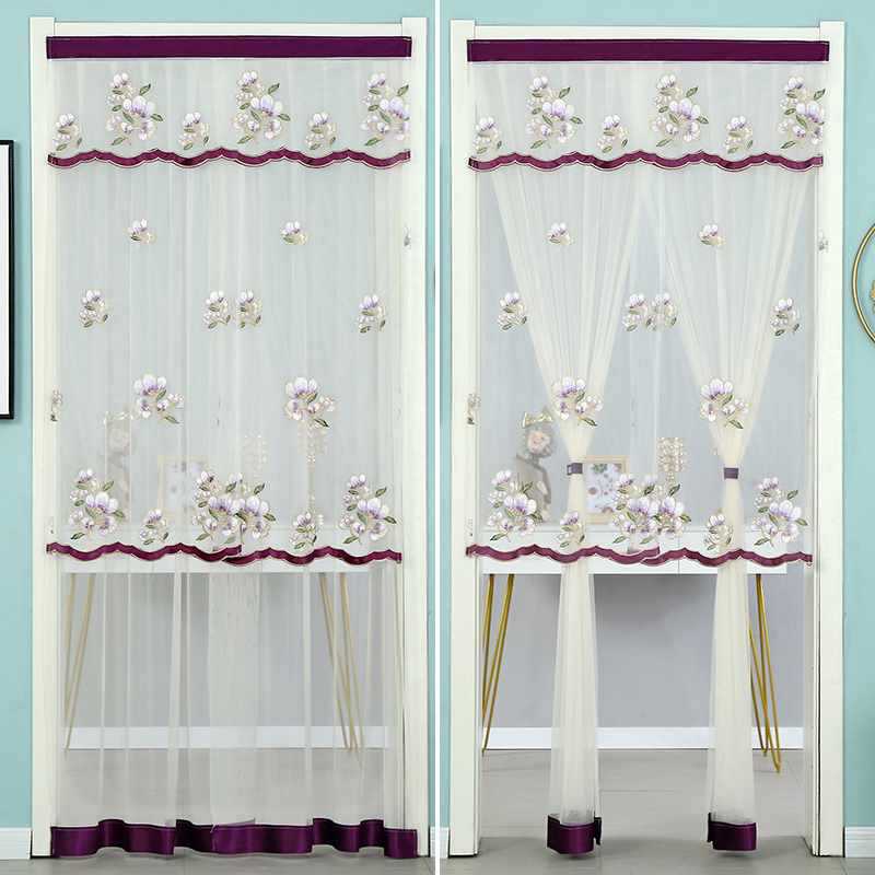 Cortina de puerta de encaje para el hogar, cortina de gasa a prueba de mosquitos para las cuatro estaciones, cortina divisoria universal de verano de doble capa, cortina de gasa para puerta de dormitorio sin perforaciones