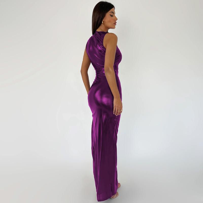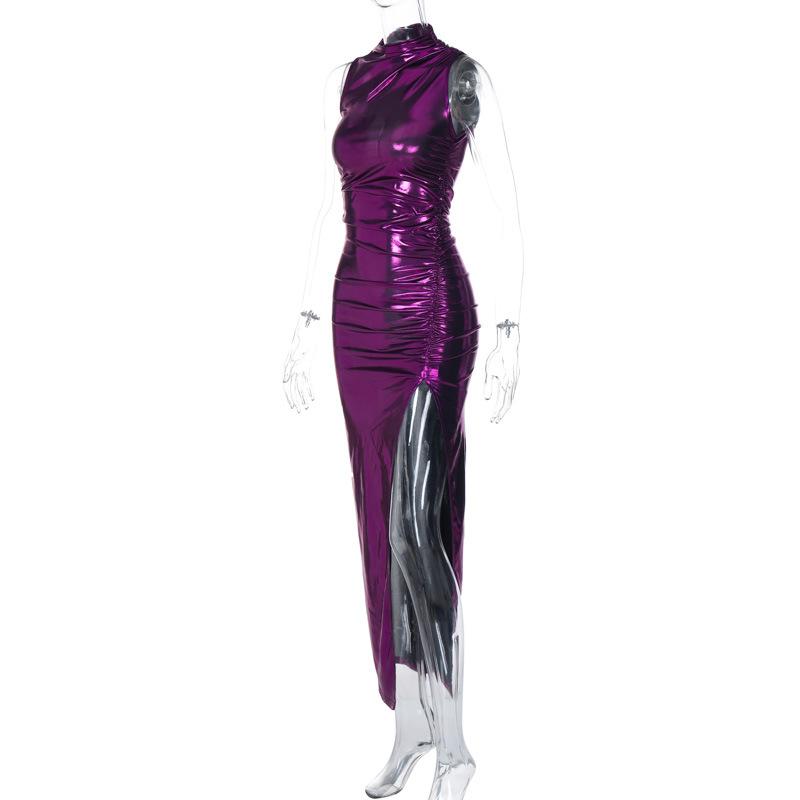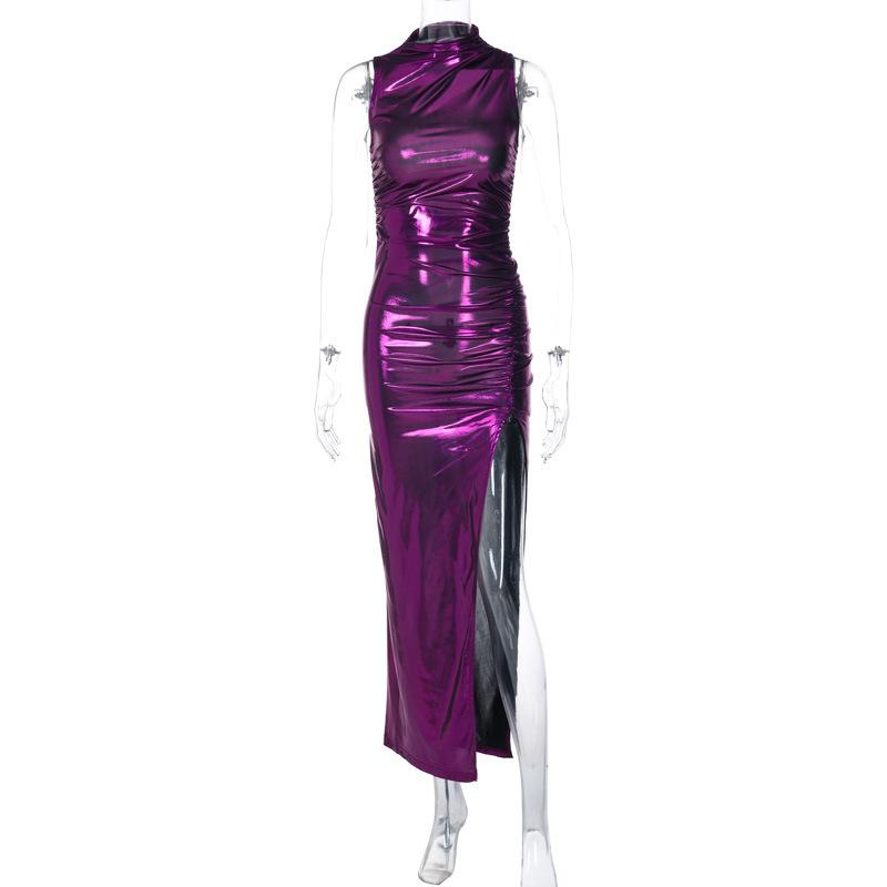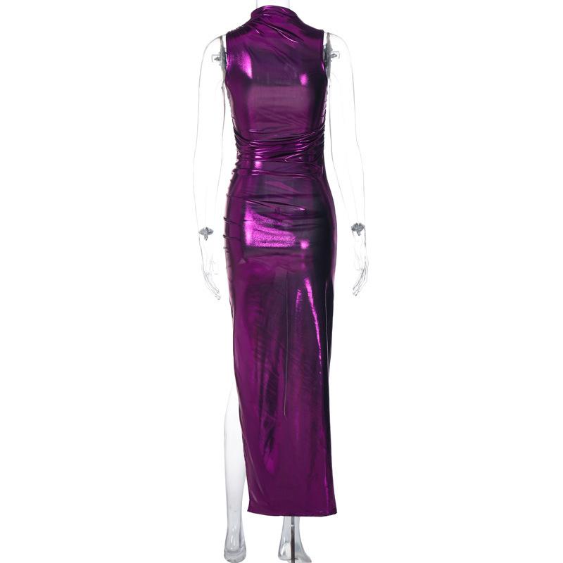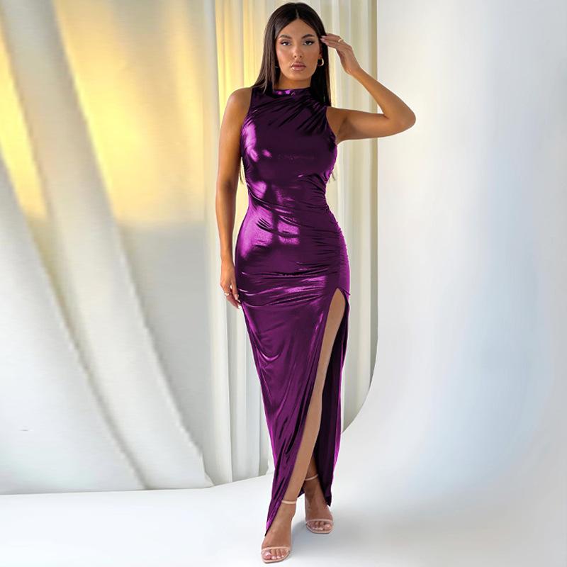 Vestido de mujer sin mangas con abertura lateral plisado, sexy, de moda primavera-verano, de Amazon, transfronterizo