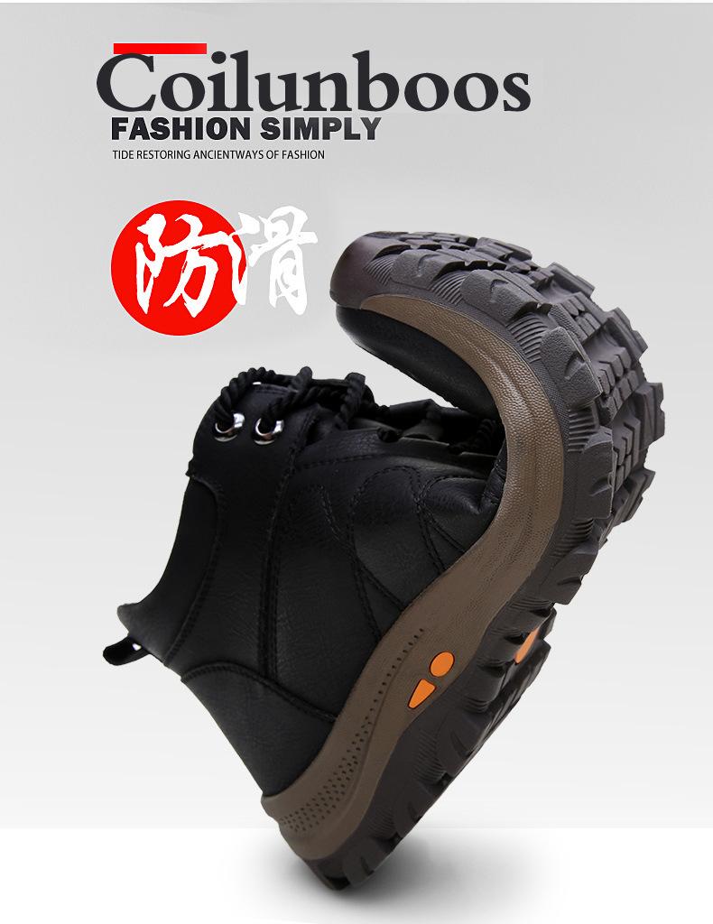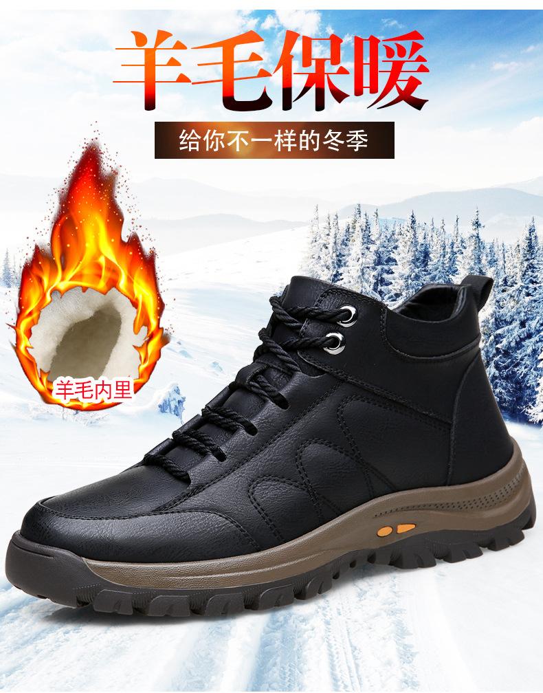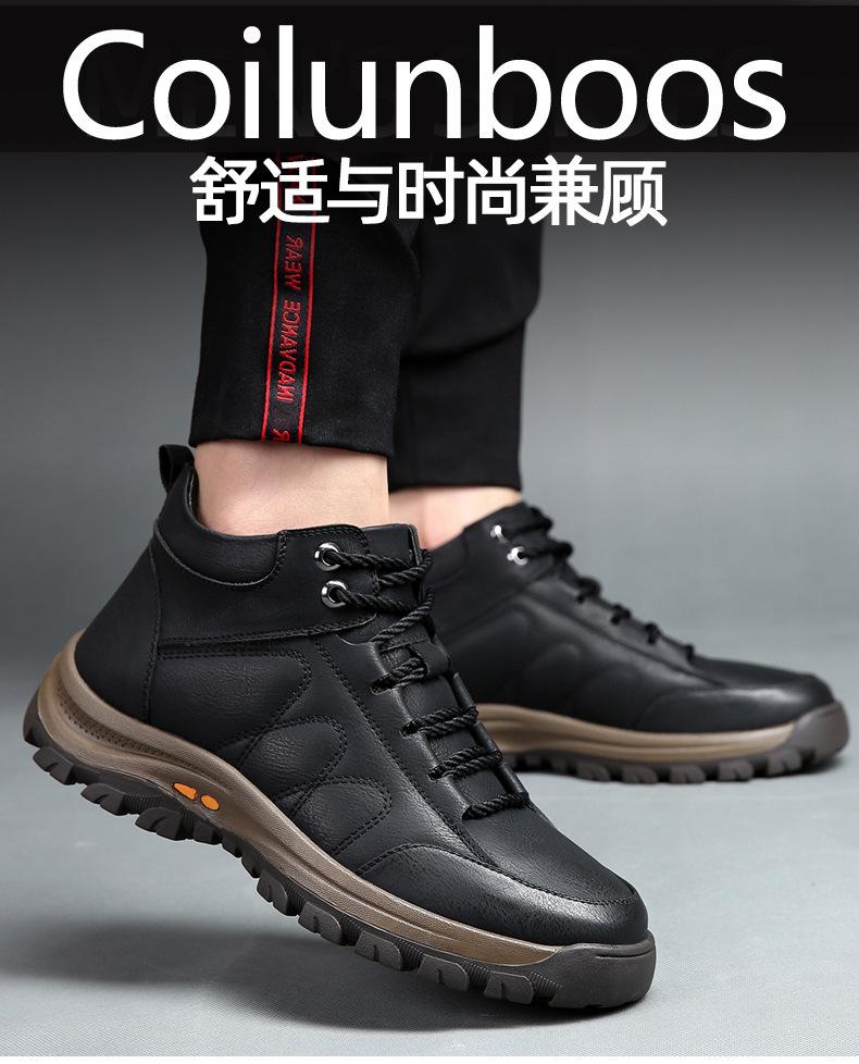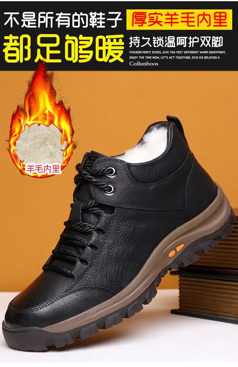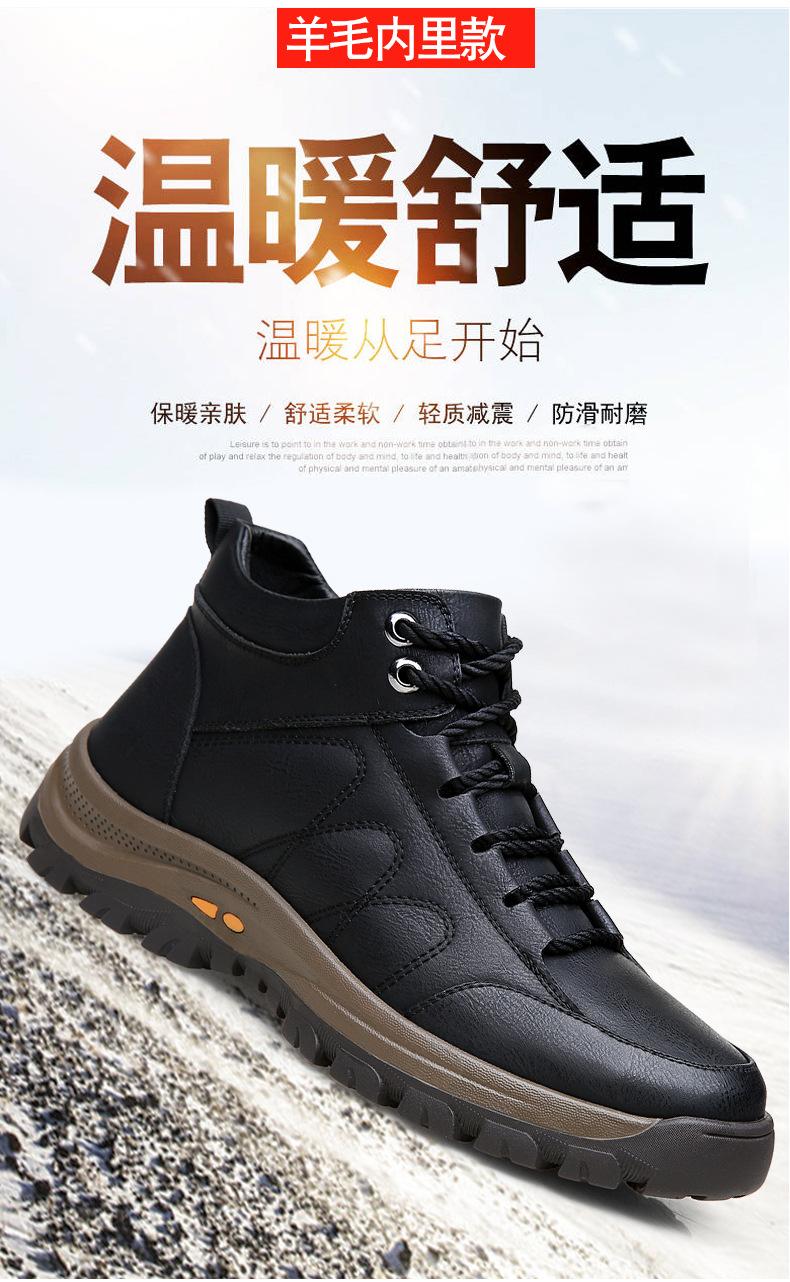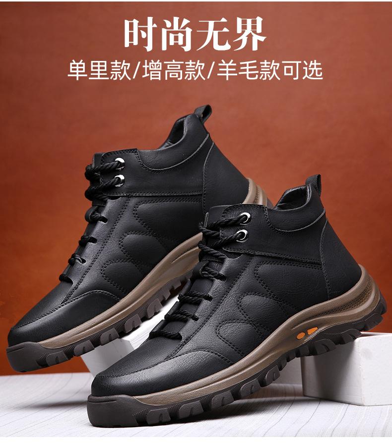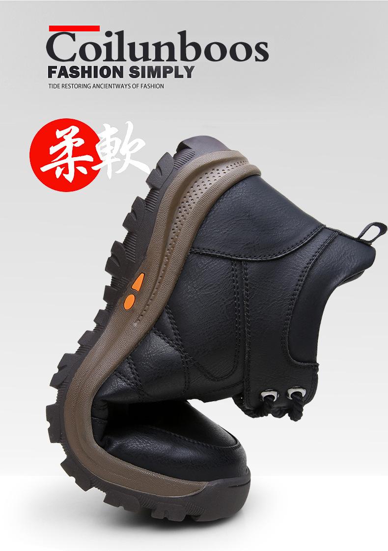 Invierno Nuevo Cuero Suave Transpirable talla grande Zapatos de Hombre forrado de vellón Engrosado Caña Alta Casual Suela Suave Zapatos de Montaña al Aire Libre tenis