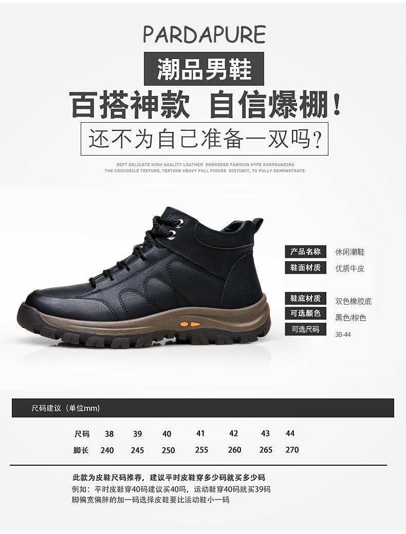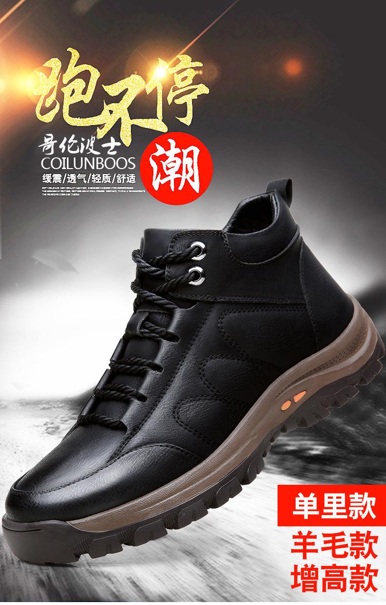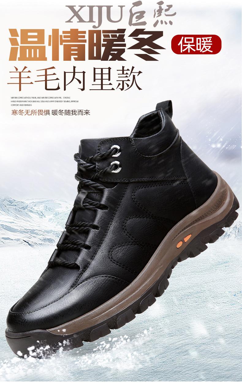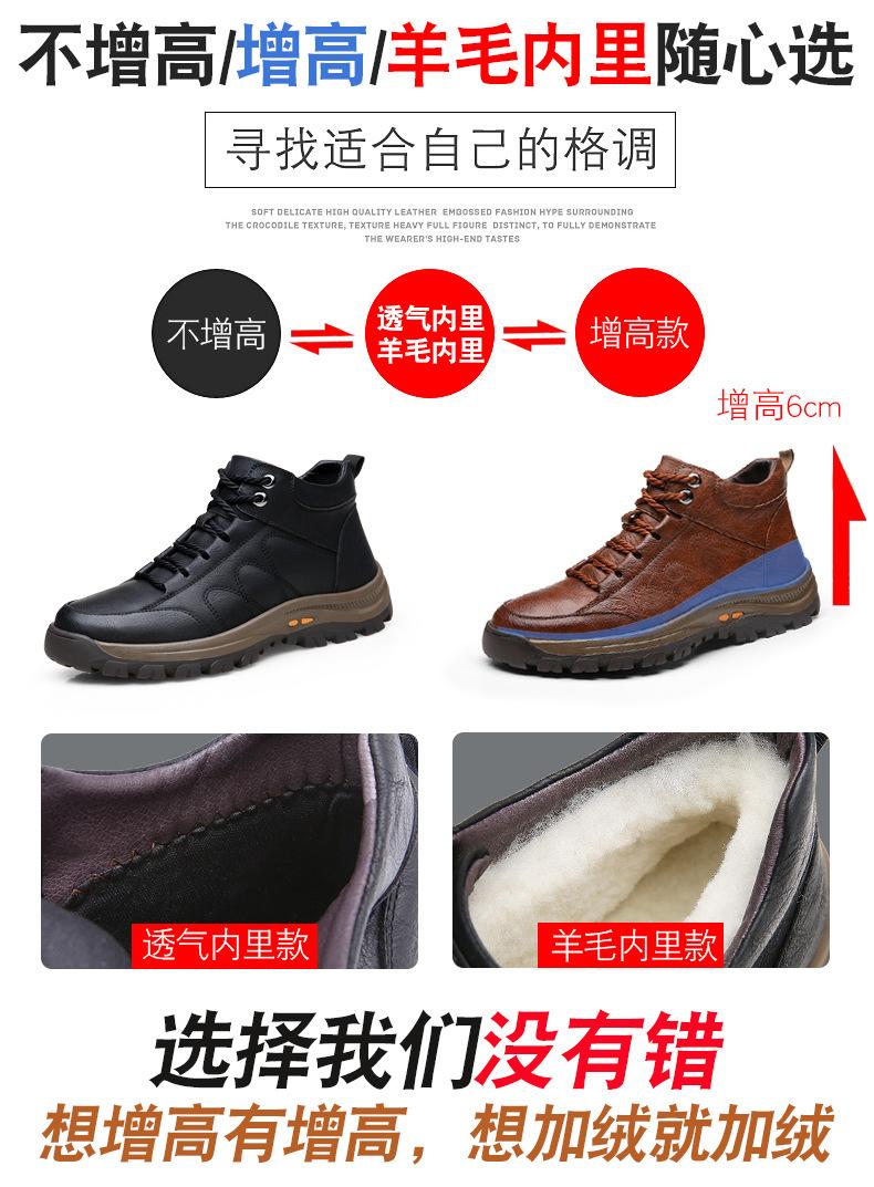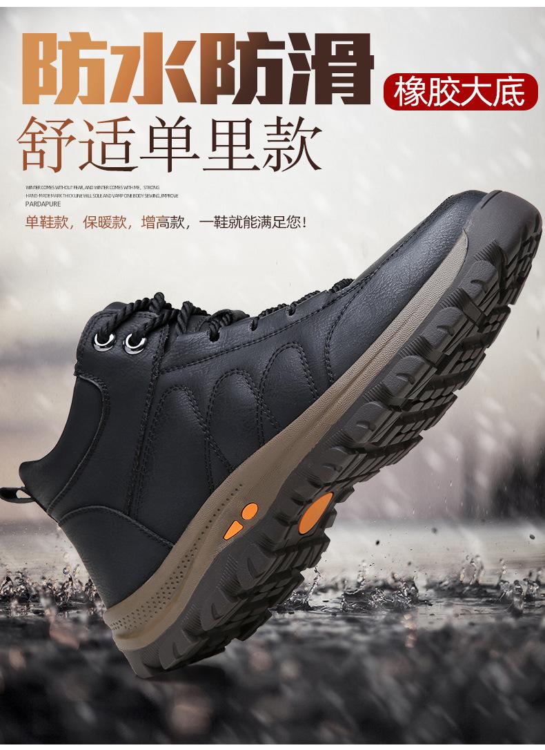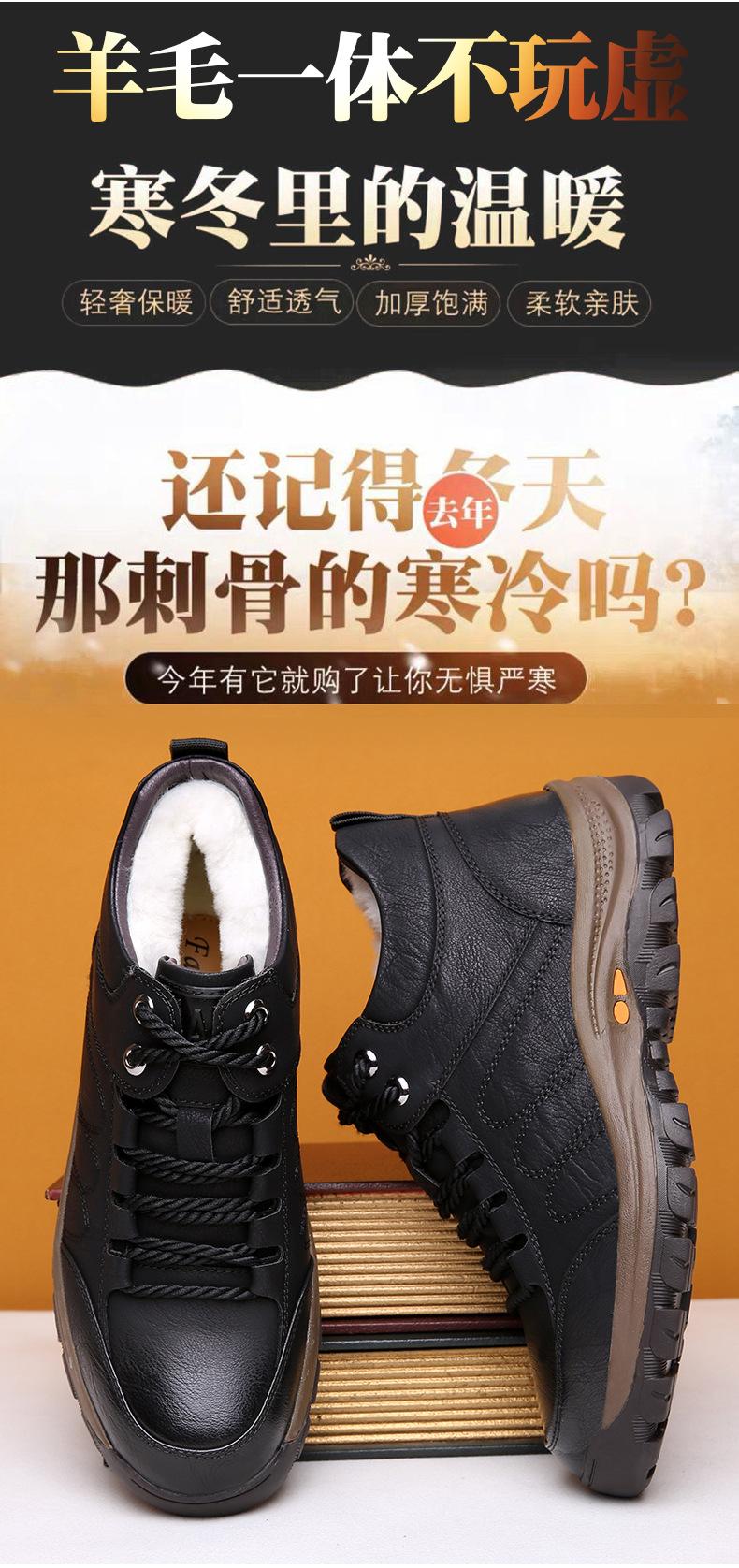Invierno Nuevo Cuero Suave Transpirable talla grande Zapatos de Hombre forrado de vellón Engrosado Caña Alta Casual Suela Suave Zapatos de Montaña al Aire Libre tenis