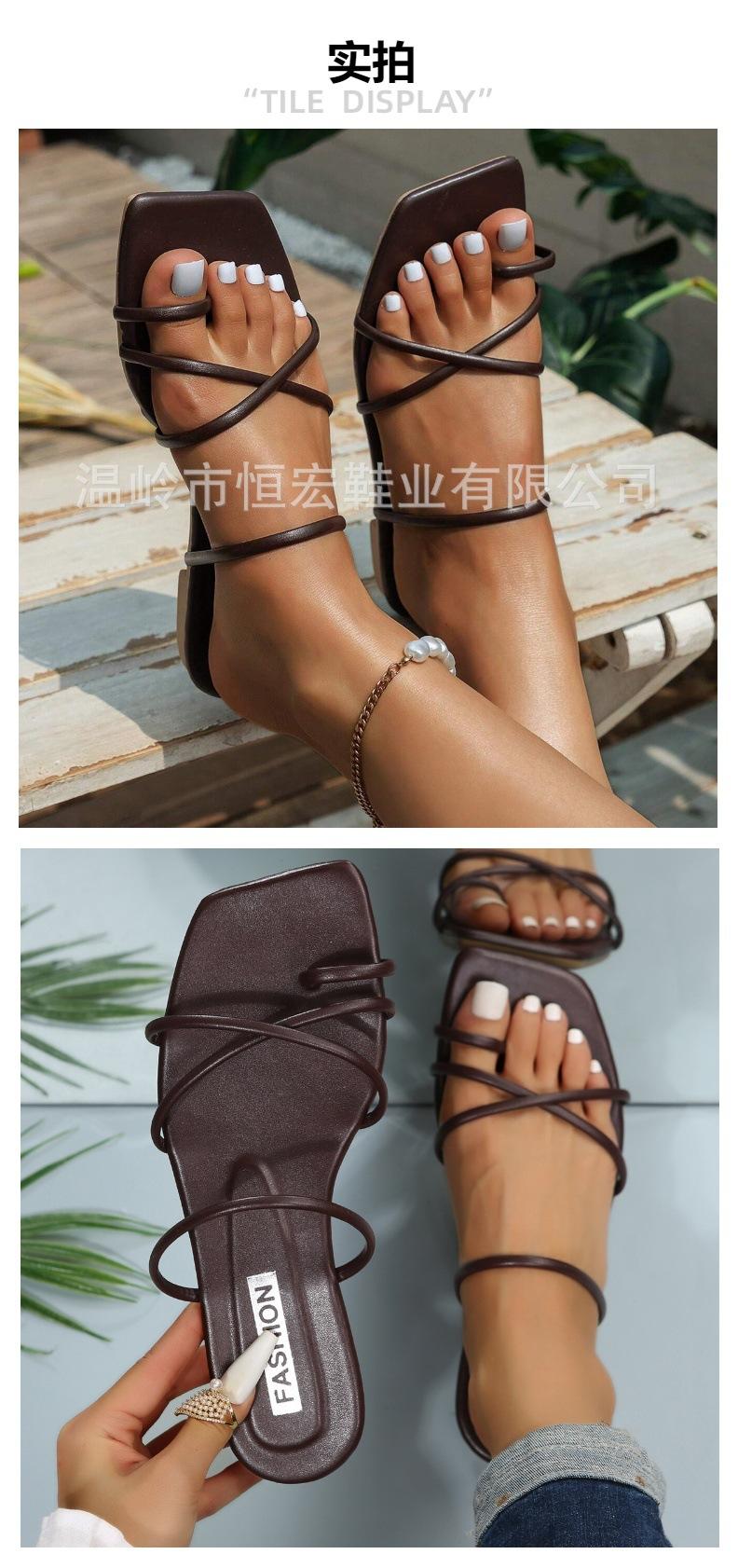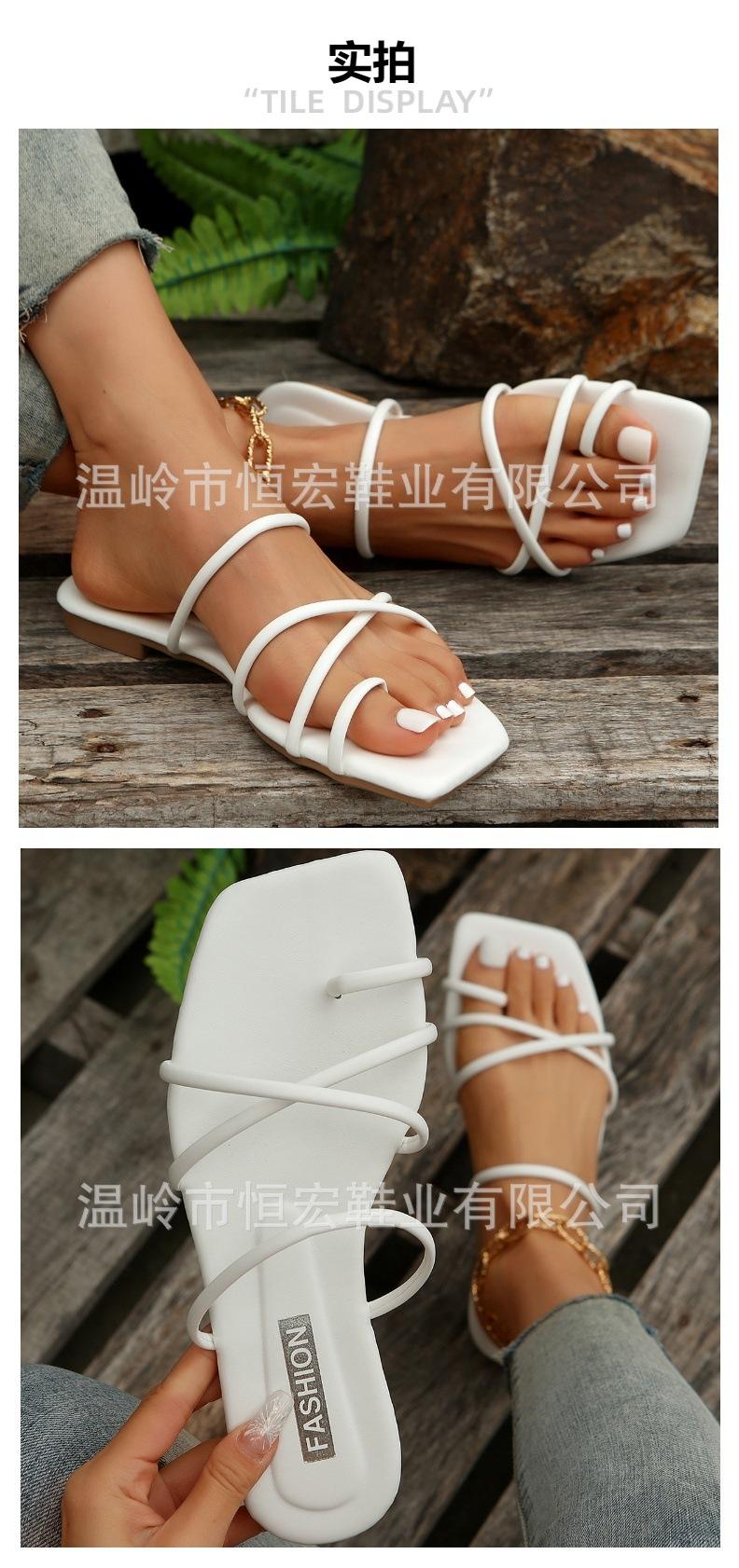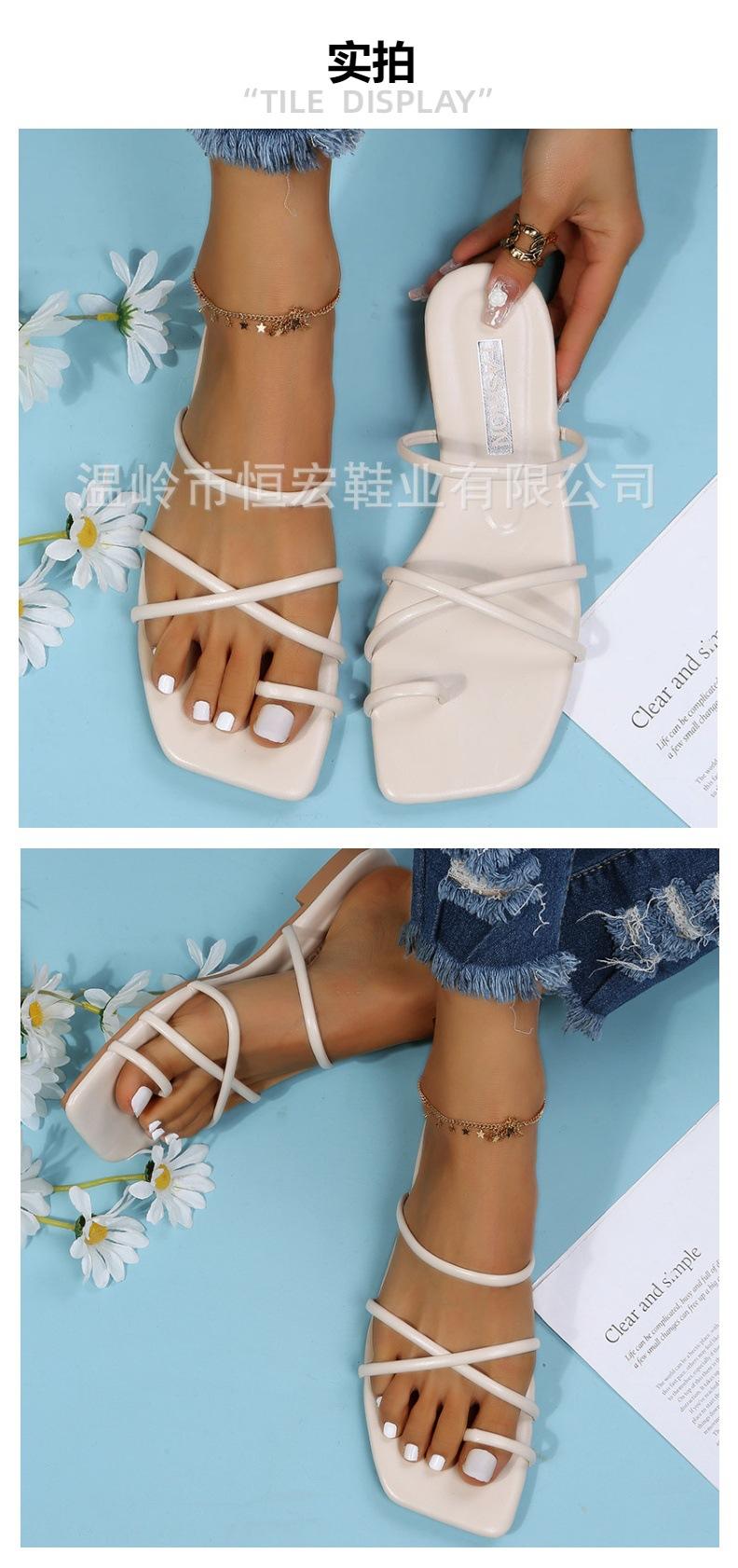 Sandalias de Verano para Mujer, Nuevo Estilo de Comercio Exterior, Chanclas Planas Cómodas de Tira Fina Europeas y Americanas, Antideslizantes
