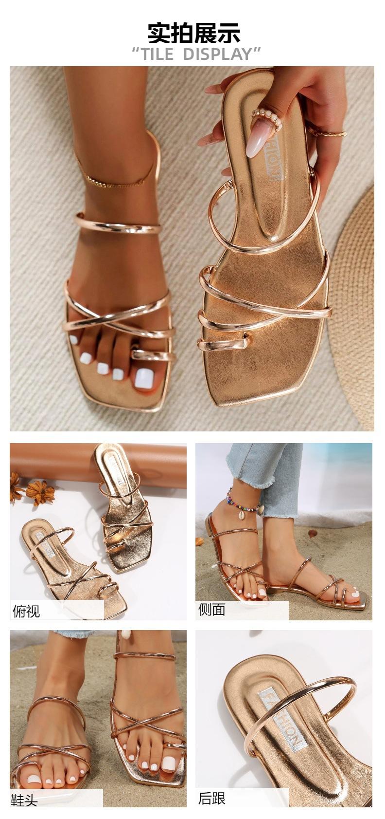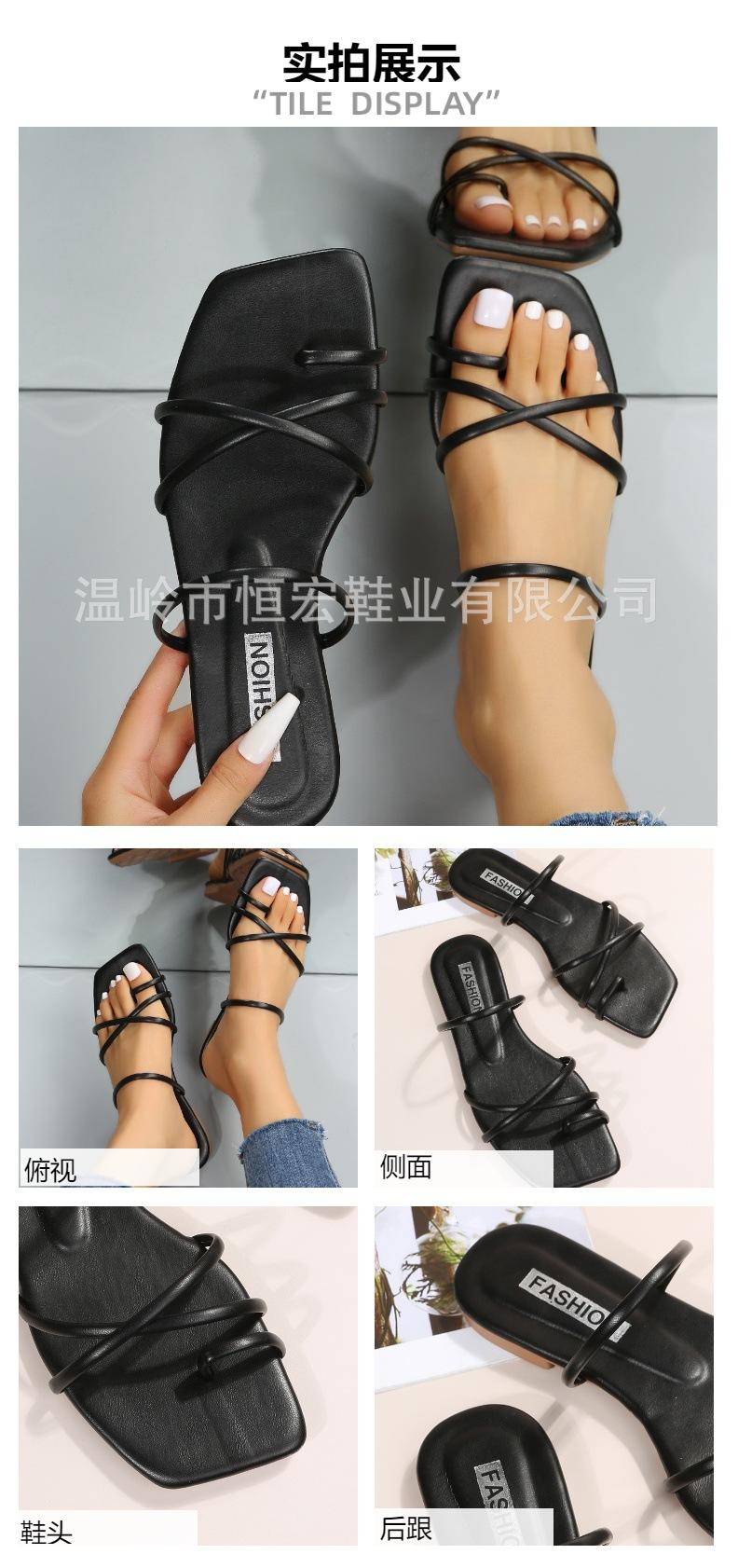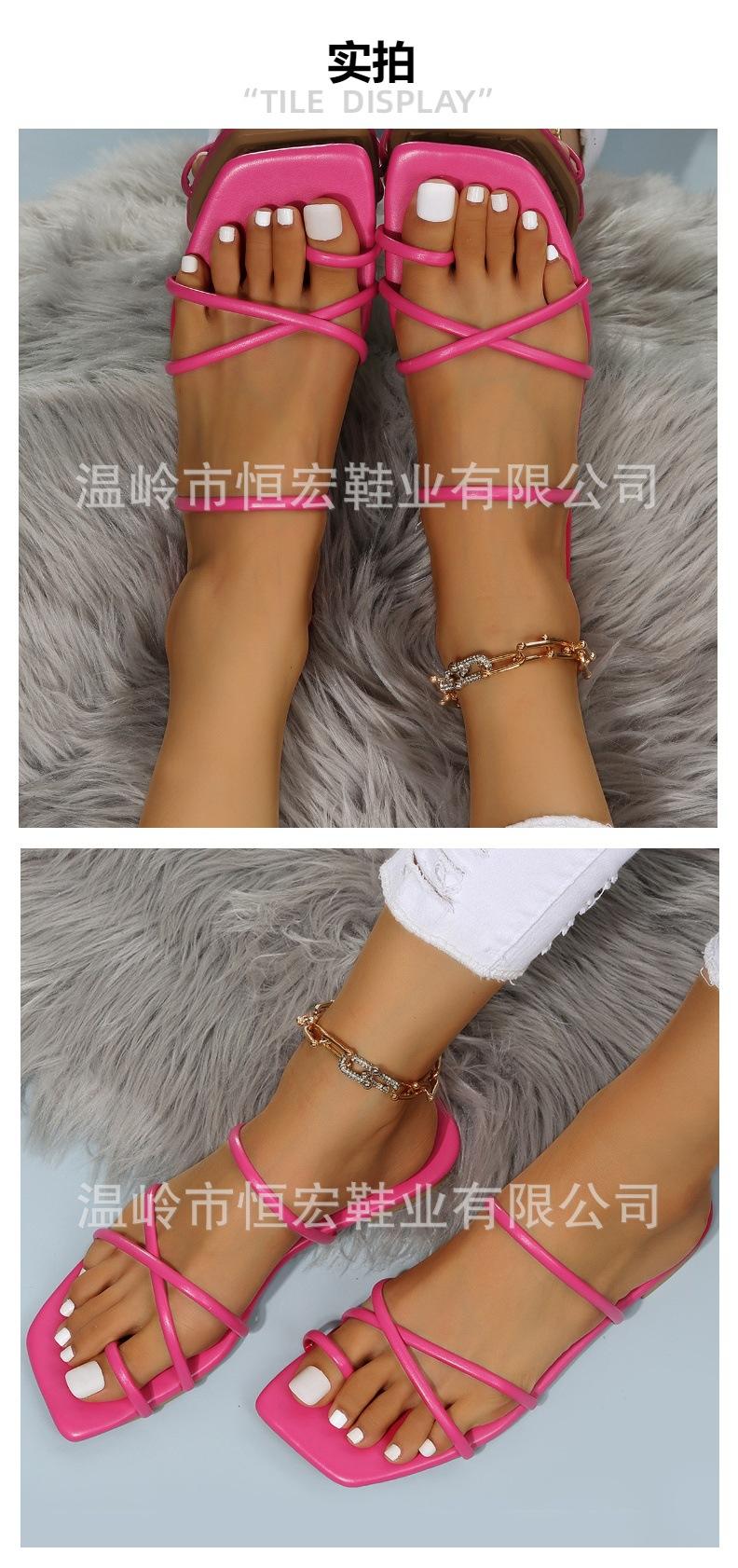 Sandalias de Verano para Mujer, Nuevo Estilo de Comercio Exterior, Chanclas Planas Cómodas de Tira Fina Europeas y Americanas, Antideslizantes