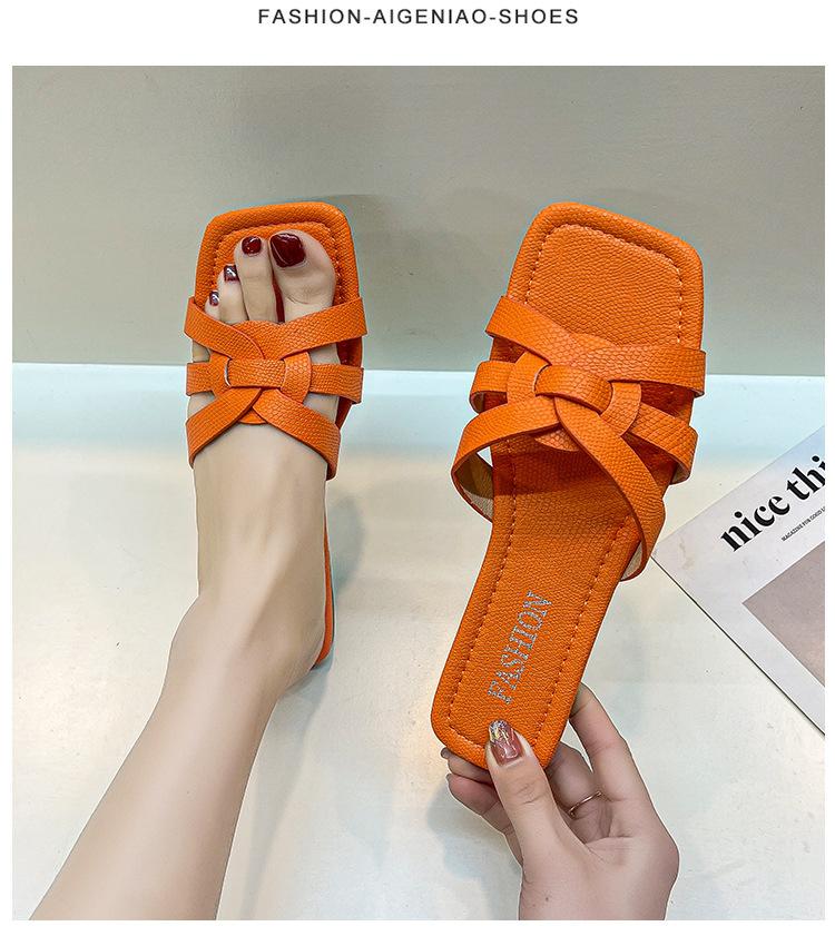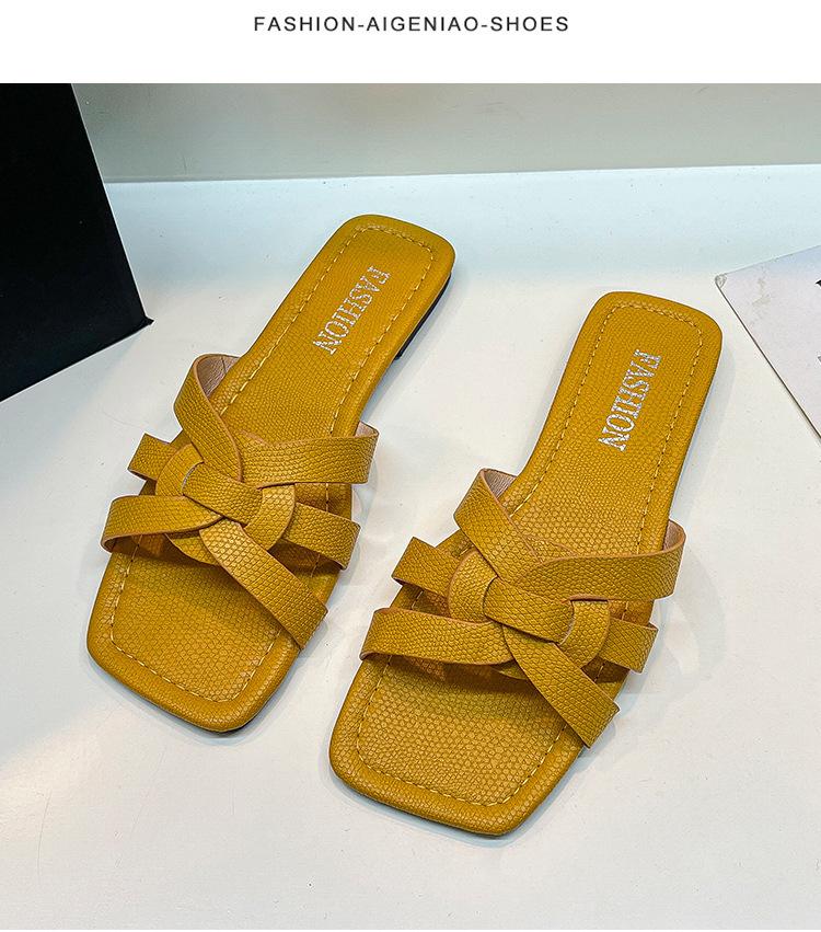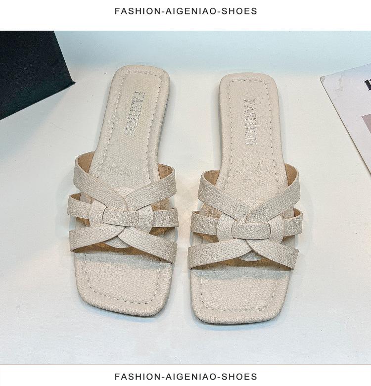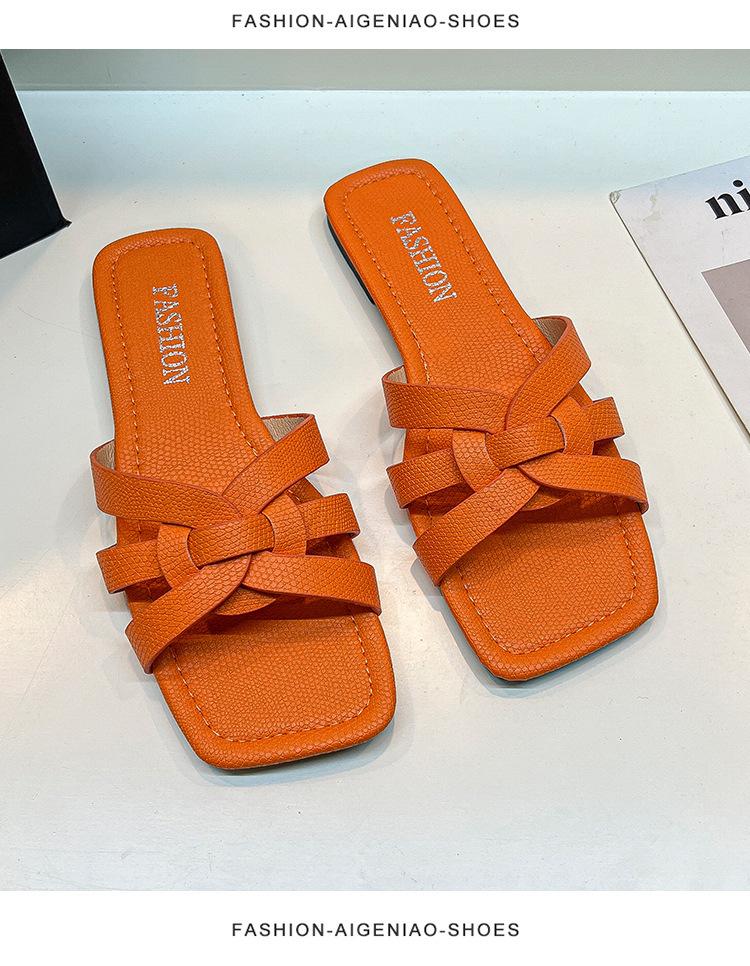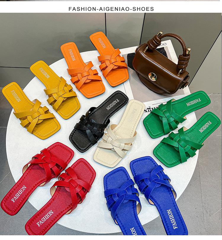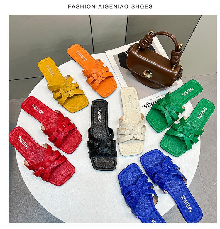 Zapatillas planas tejidas de color sólido de estilo coreano para mujer, zapatillas casuales de moda, sandalias cuadradas transpirables para el hogar.