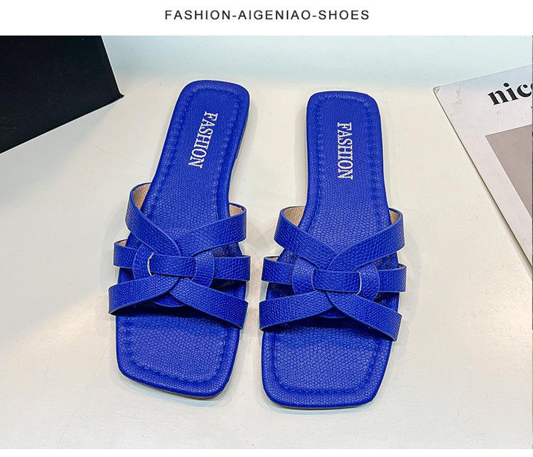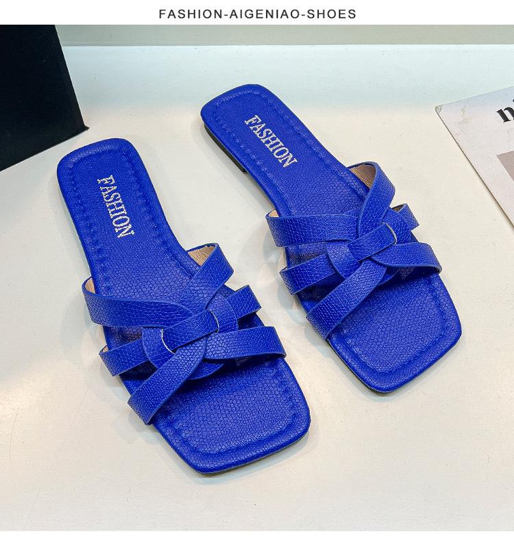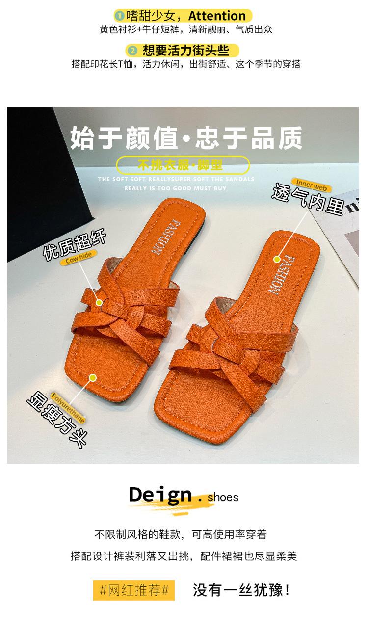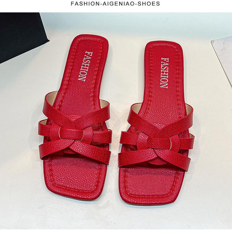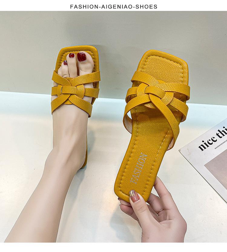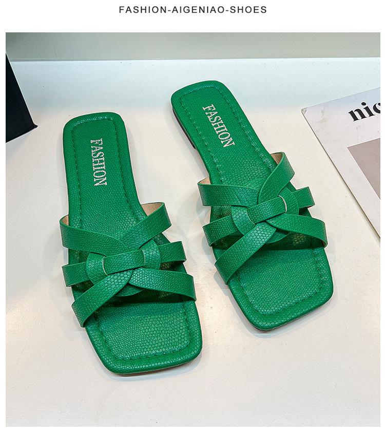Zapatillas planas tejidas de color sólido de estilo coreano para mujer, zapatillas casuales de moda, sandalias cuadradas transpirables para el hogar.