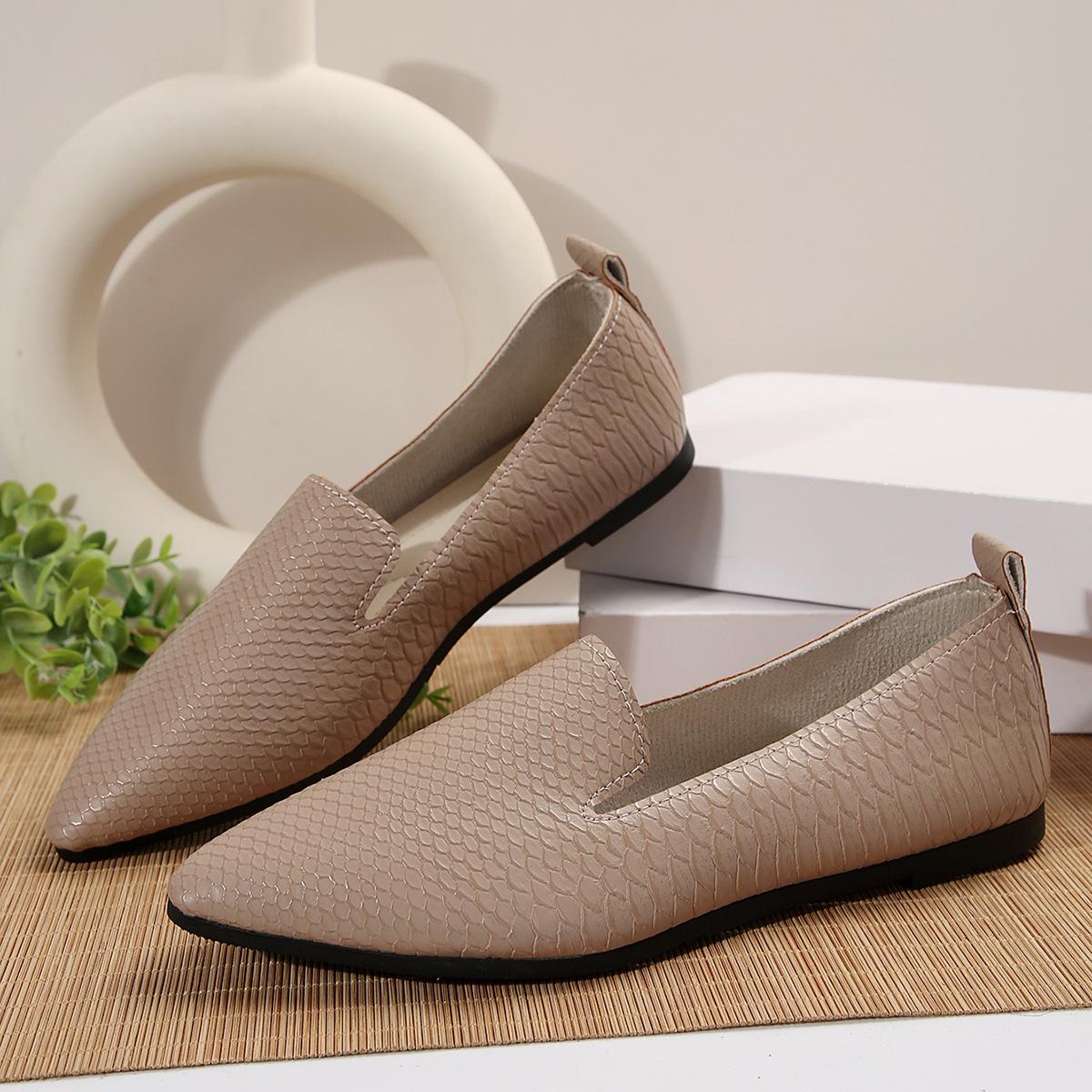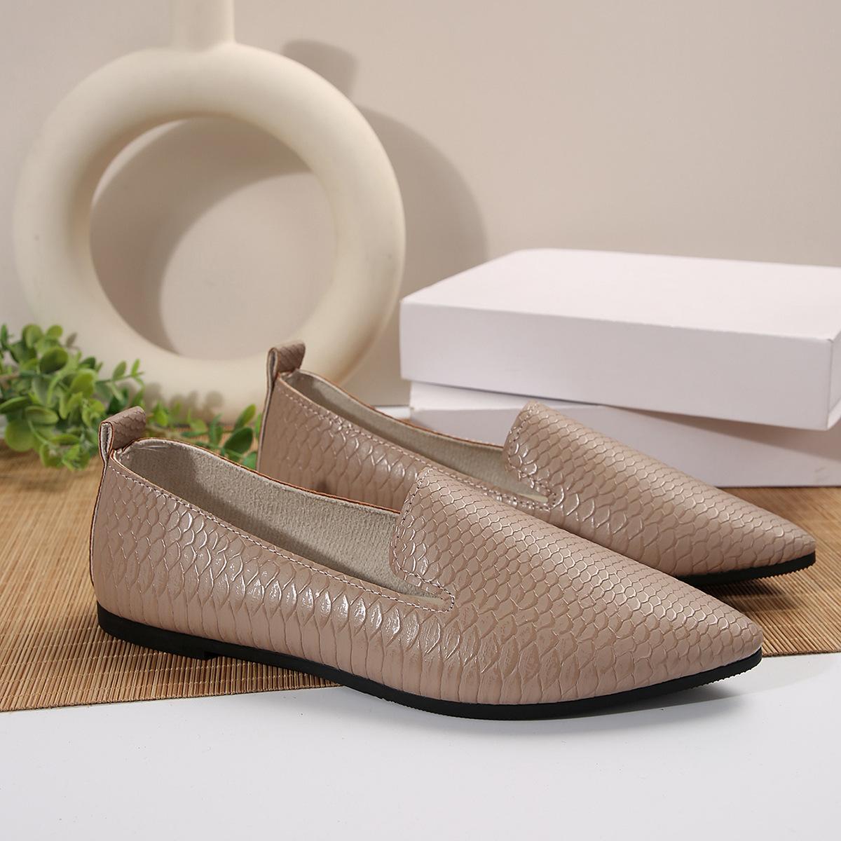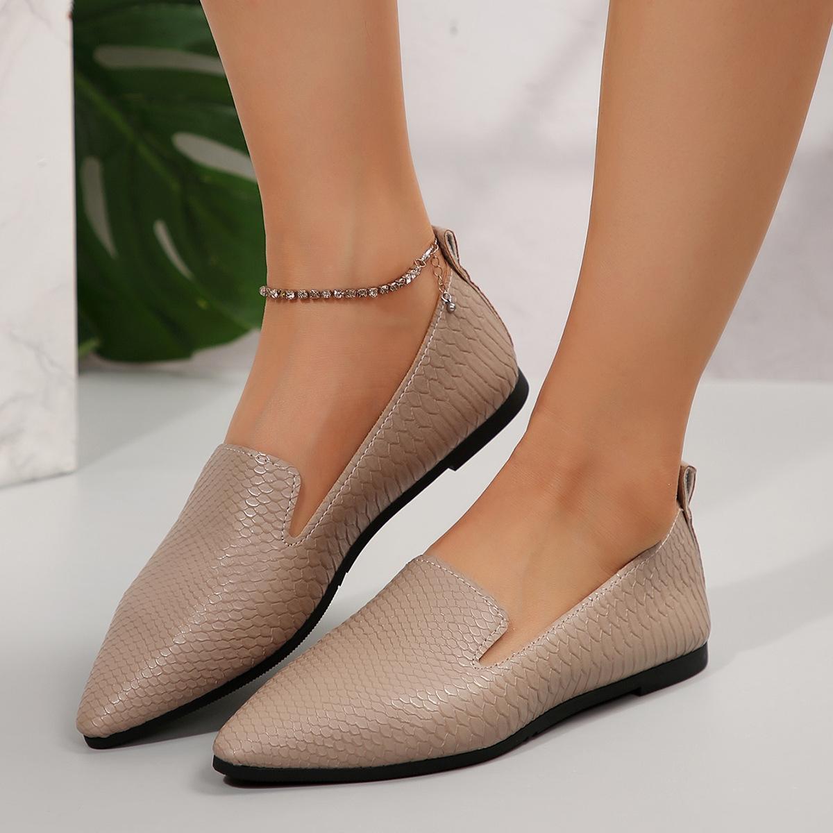 2024 Verano Nuevo Boca Baja Simple Patrón de Serpiente Zapatos Planos Comercio Transfronterizo talla grande Punta Zapatos de Guisante de un Paso para Mujer