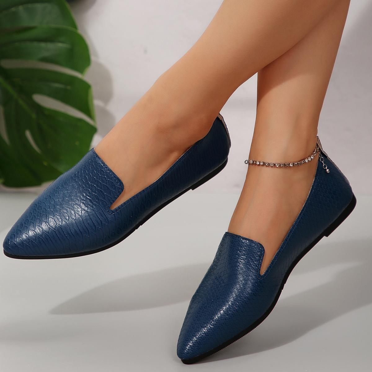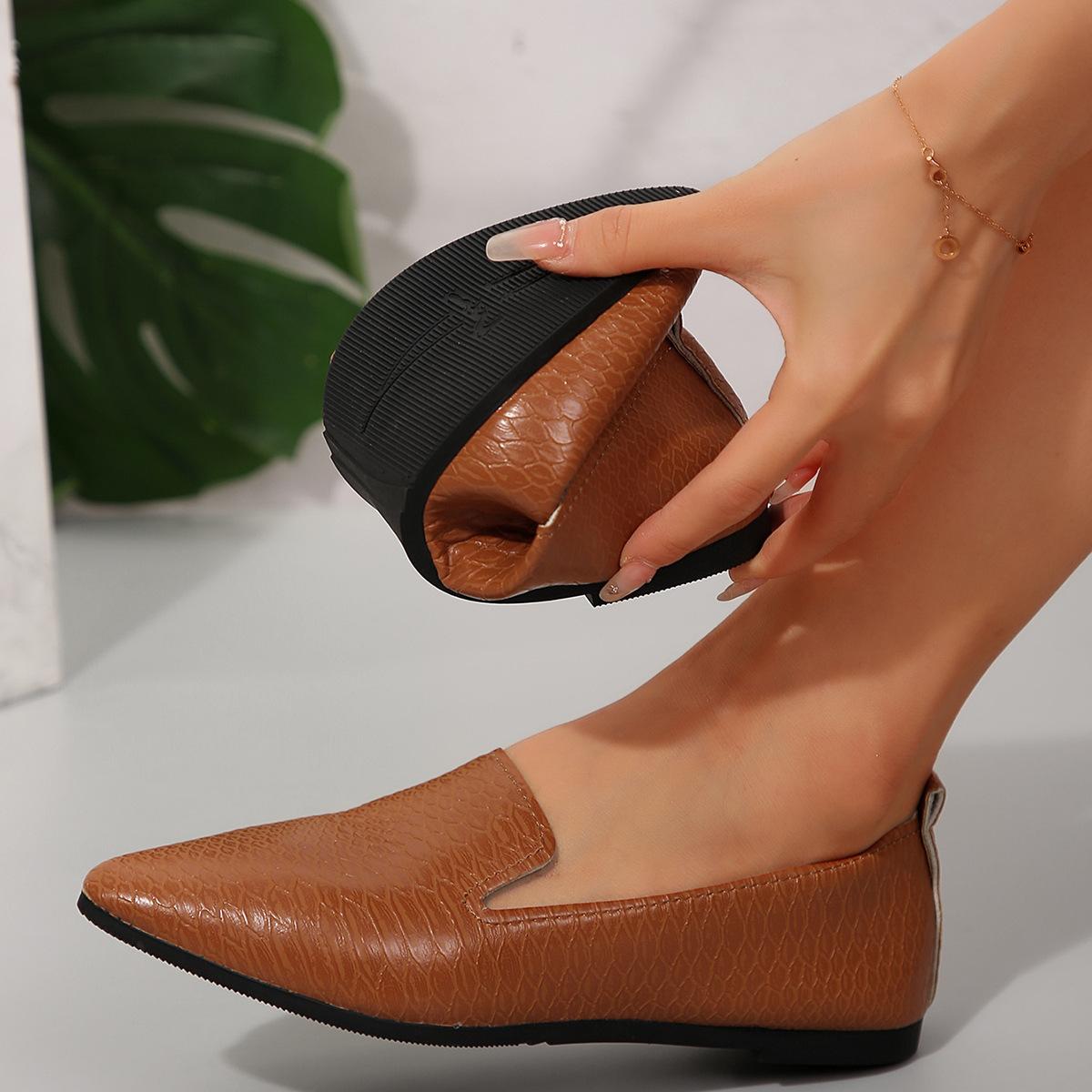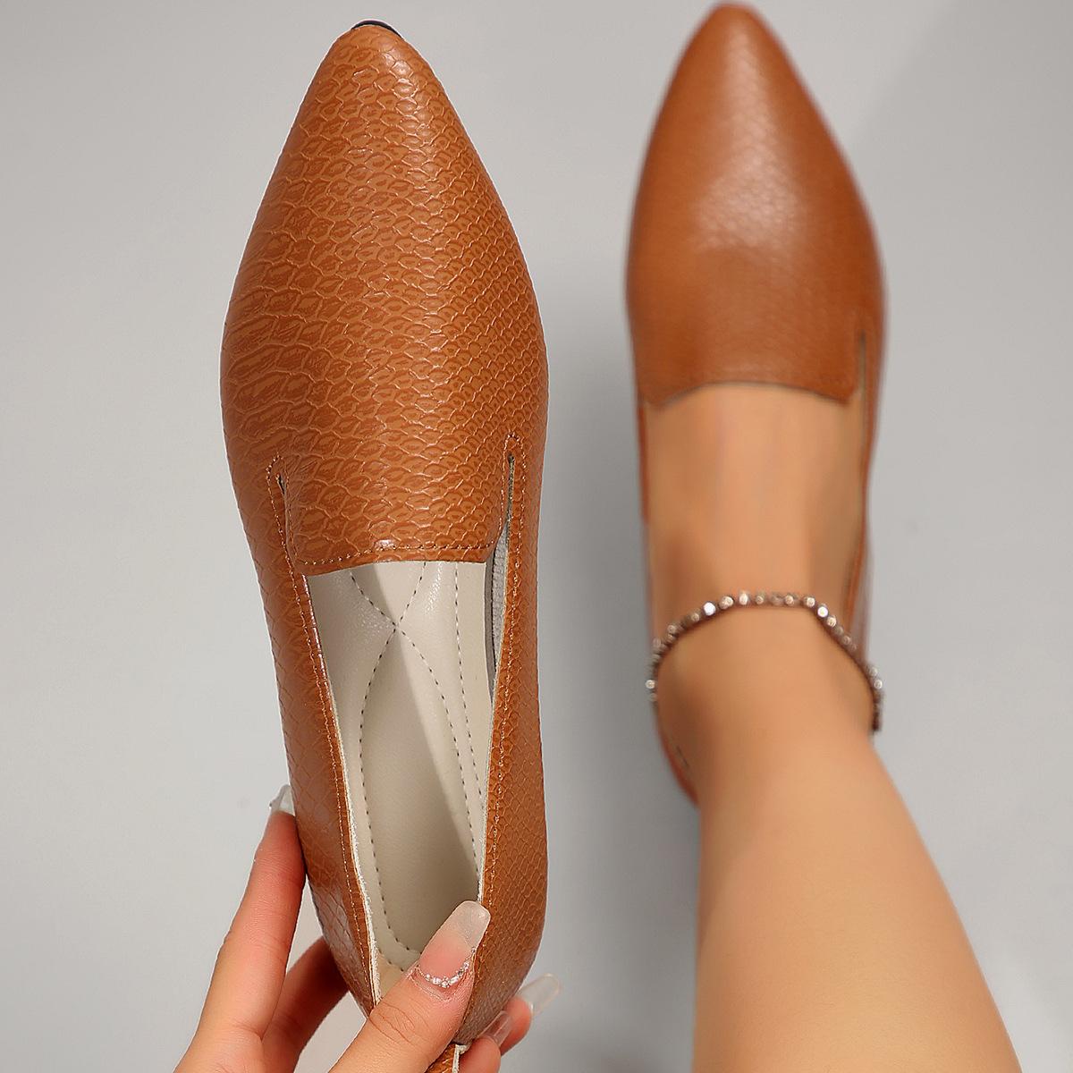 2024 Verano Nuevo Boca Baja Simple Patrón de Serpiente Zapatos Planos Comercio Transfronterizo talla grande Punta Zapatos de Guisante de un Paso para Mujer