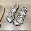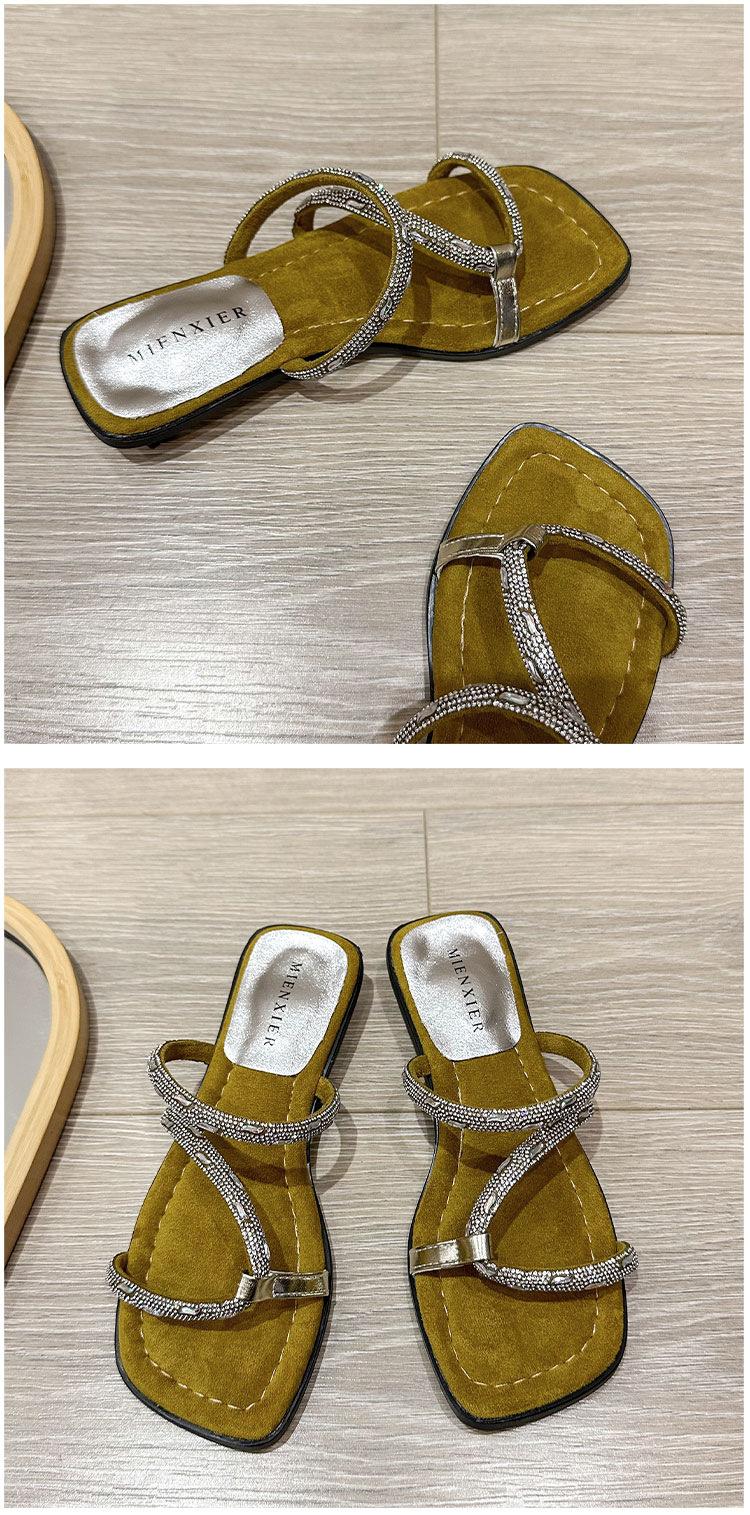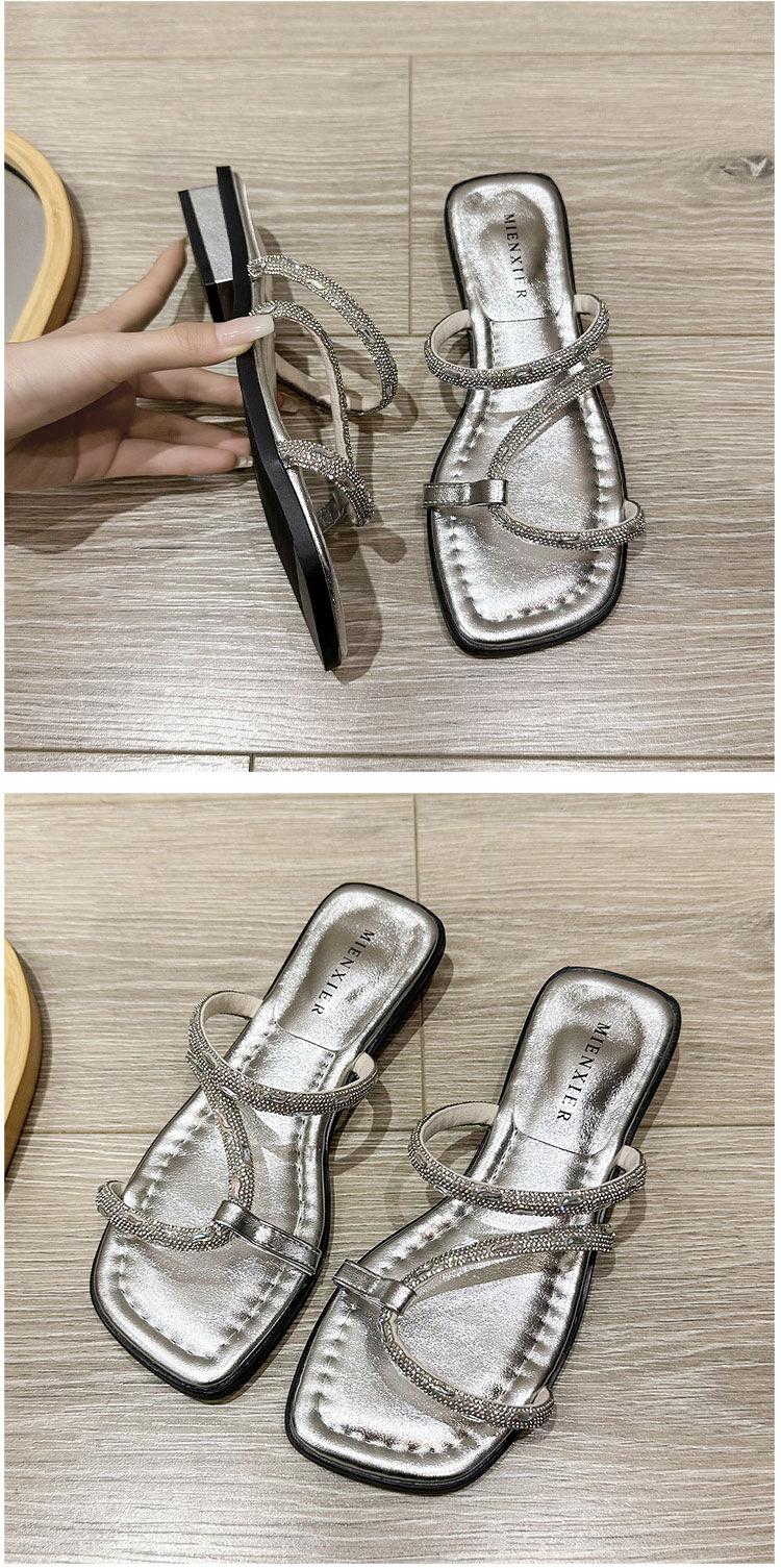 Sandalias con pedrería estilo hada para mujer, estilo exterior de verano 2024, nuevas y modernas sandalias francesas de tacón bajo para playa.