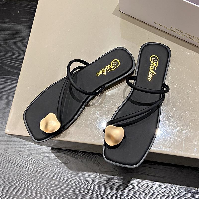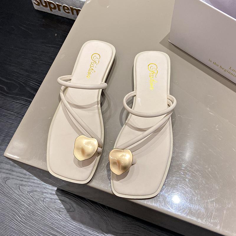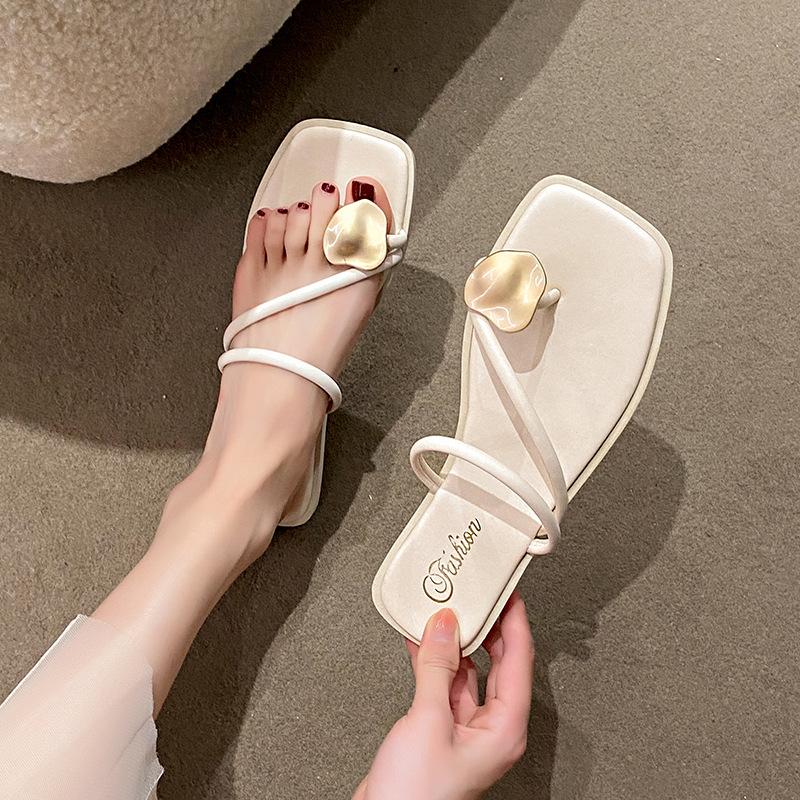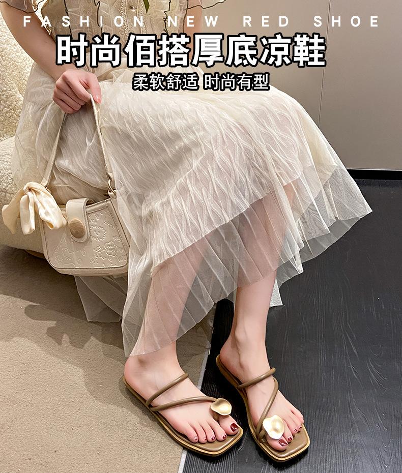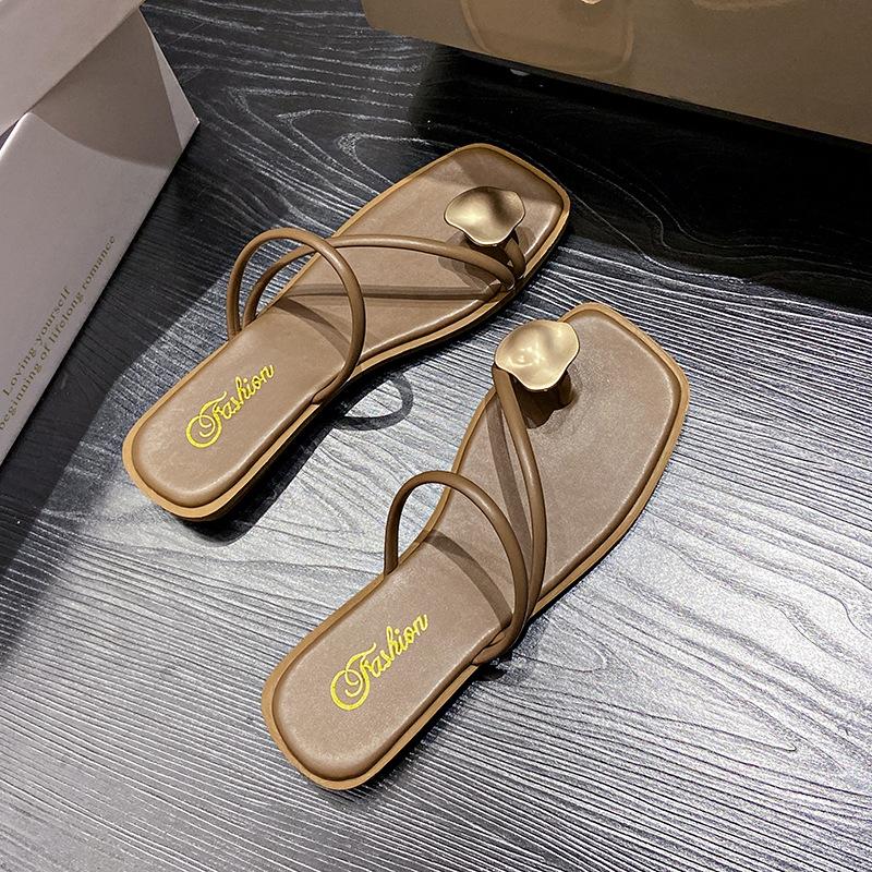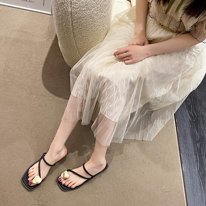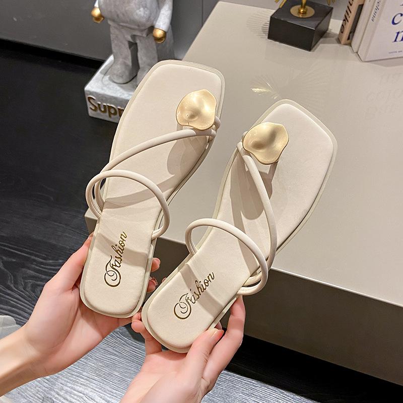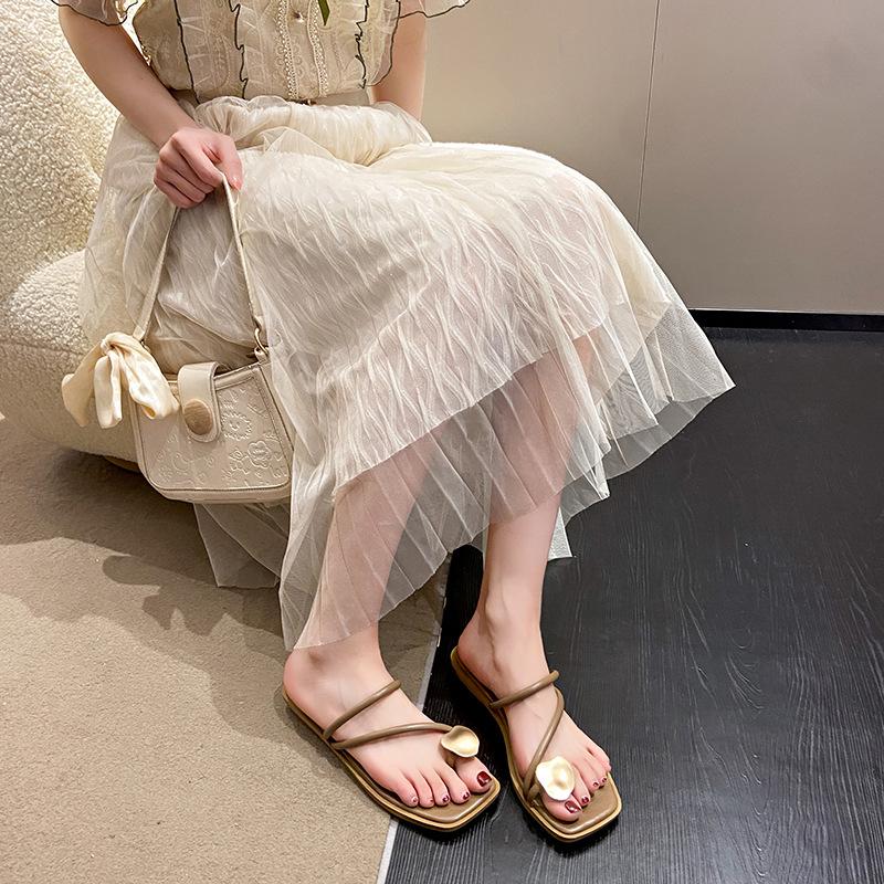 2024 verano ropa de exterior nuevas chanclas planas estilo Chanel para mujer estilo hada estilo francés sandalias de alta gama