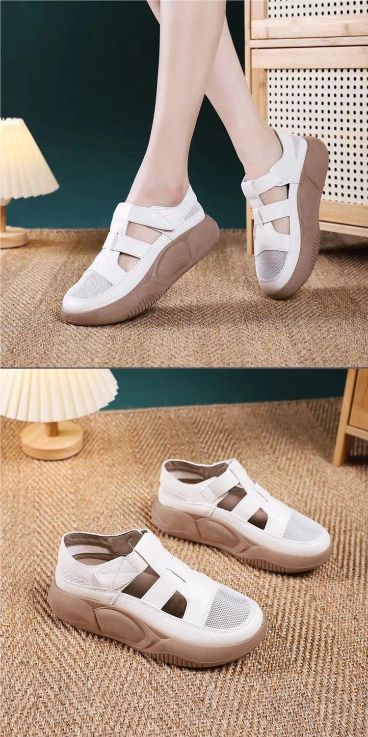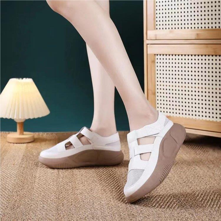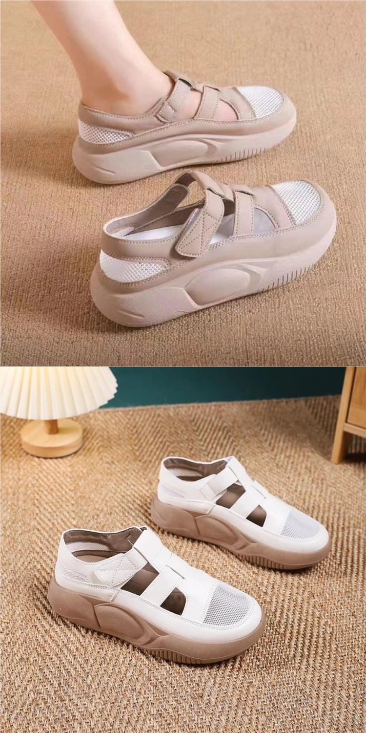Sandalias de suela gruesa para mujer, verano 2025, nuevas sandalias de playa deportivas transpirables de malla con velcro para mujer.