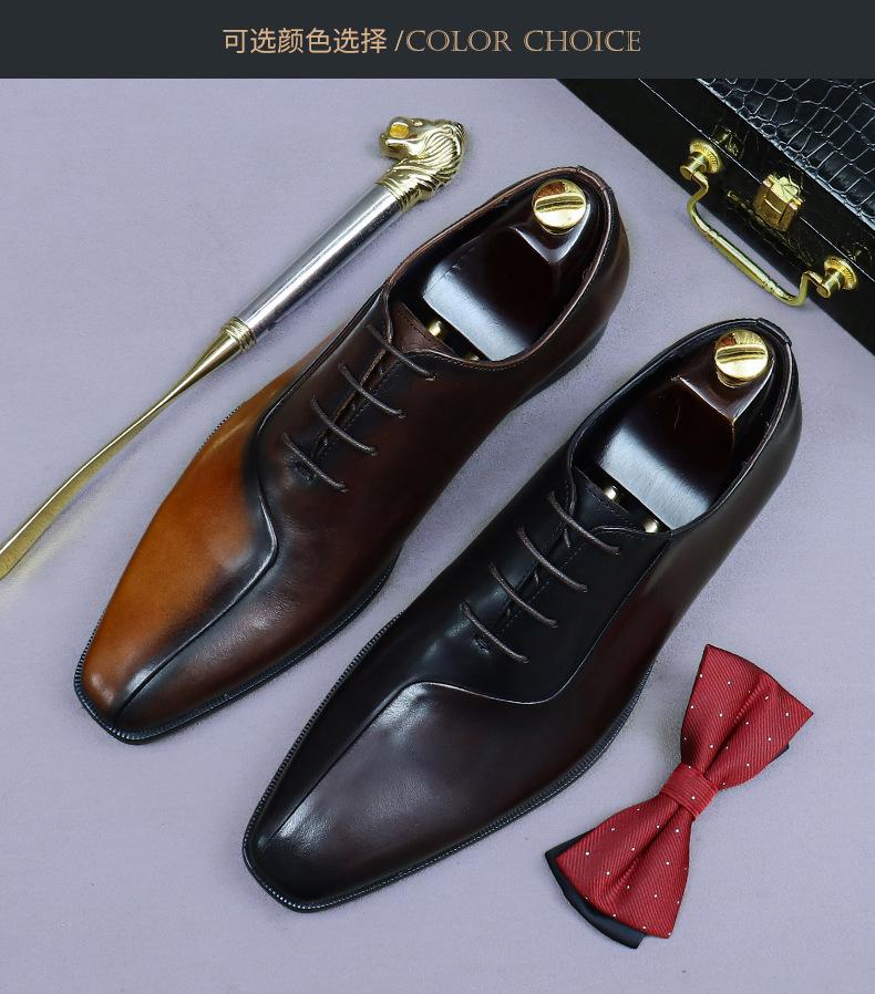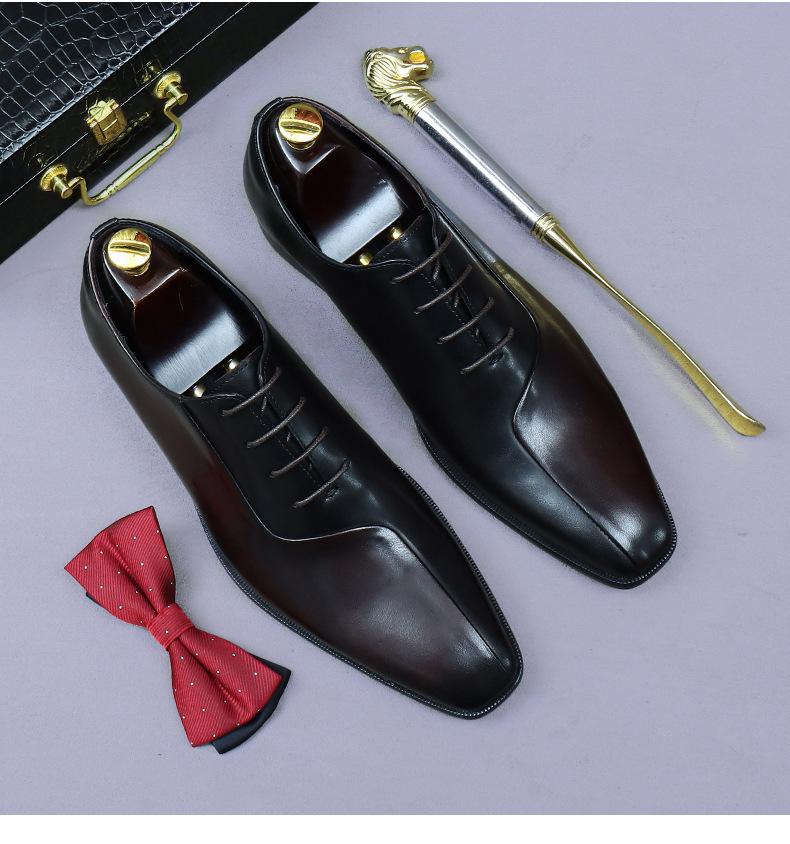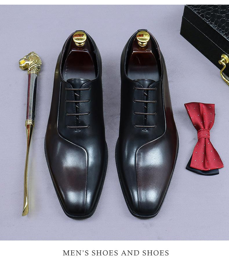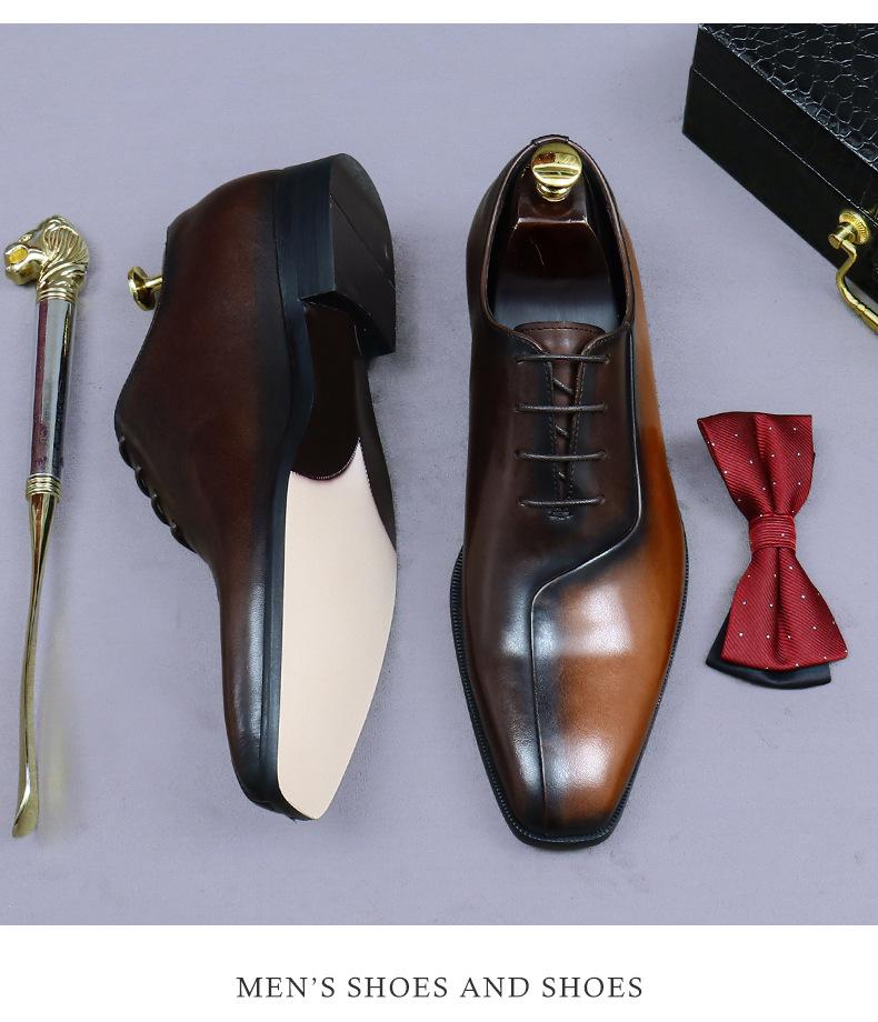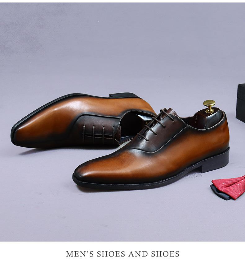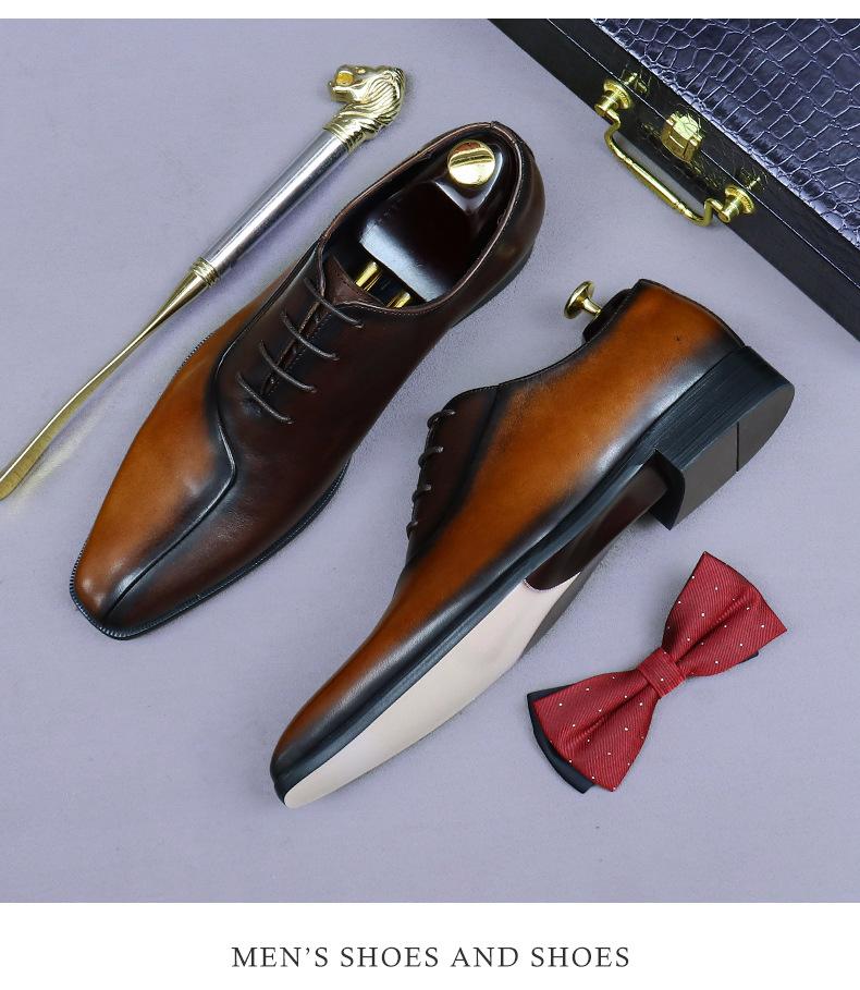 Zapatos de vestir de negocios para hombre, zapatos Oxford de cuero británico con bloques de color, zapatos casuales de cuero hechos a mano de alta gama para boda.