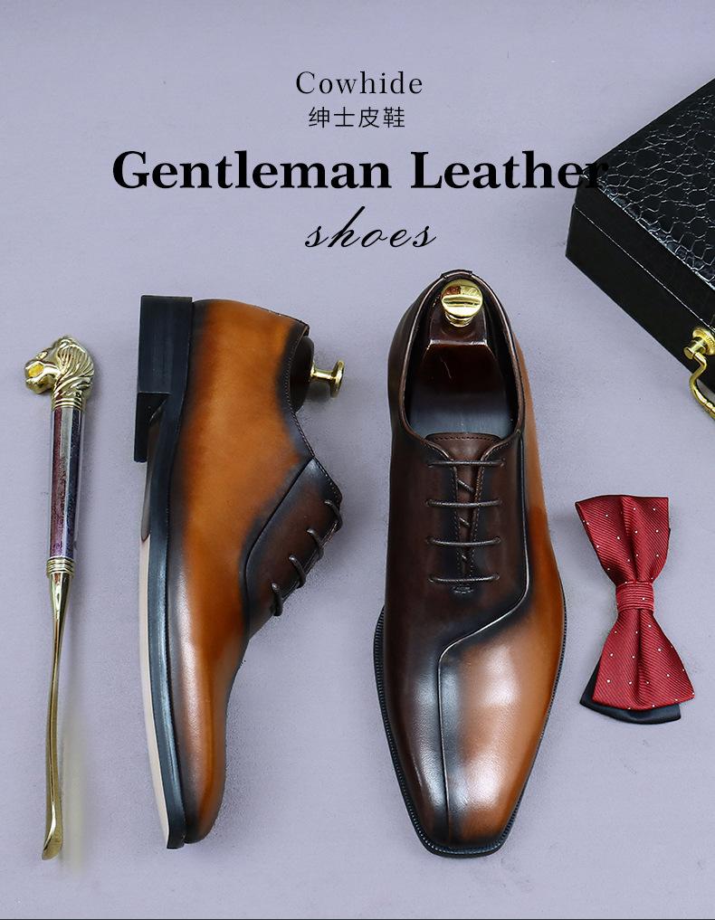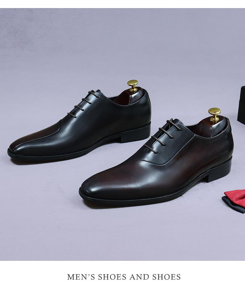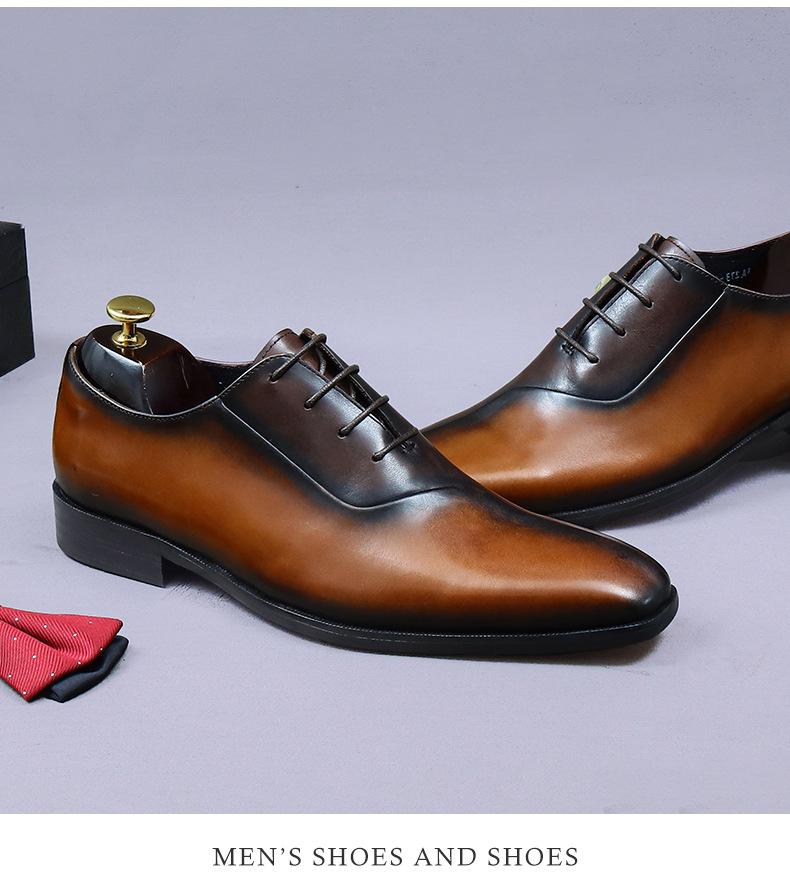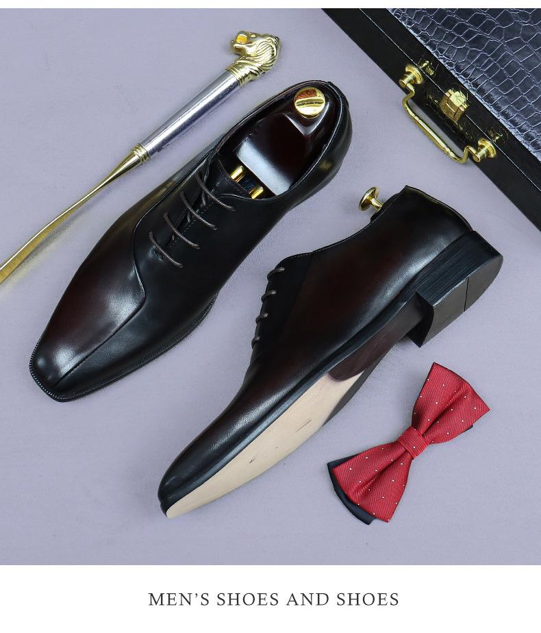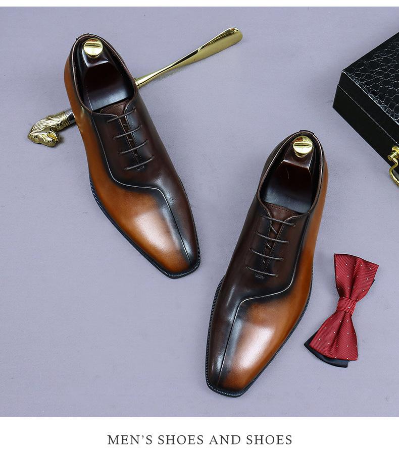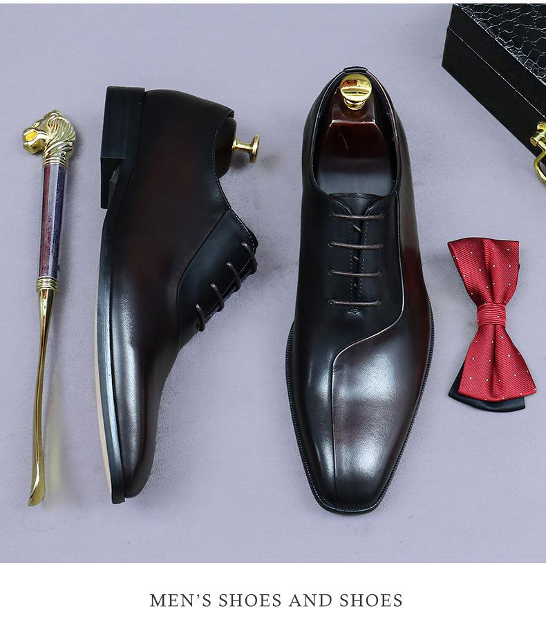 Zapatos de vestir de negocios para hombre, zapatos Oxford de cuero británico con bloques de color, zapatos casuales de cuero hechos a mano de alta gama para boda.