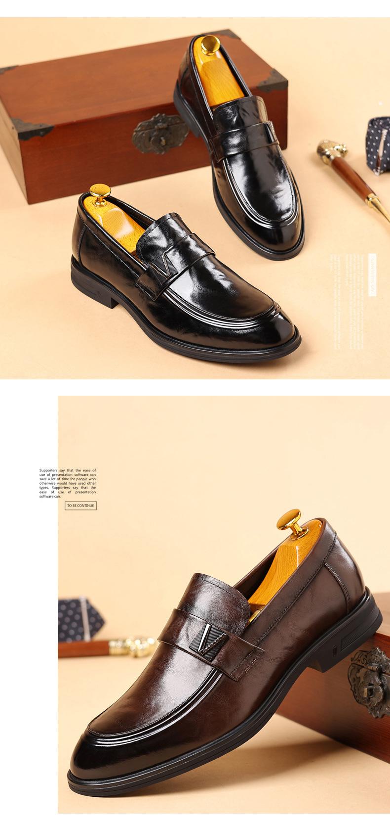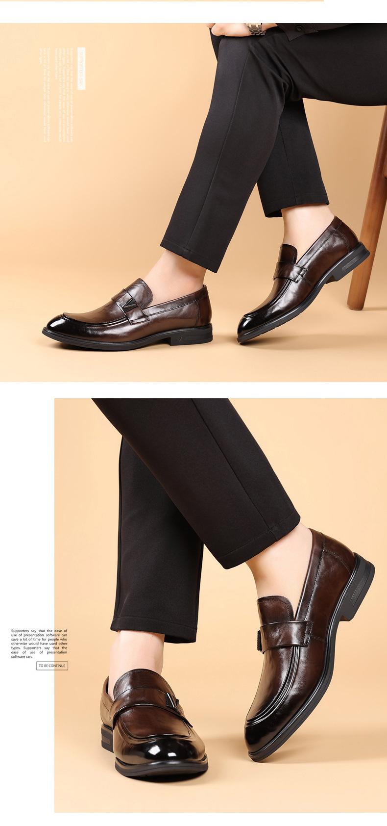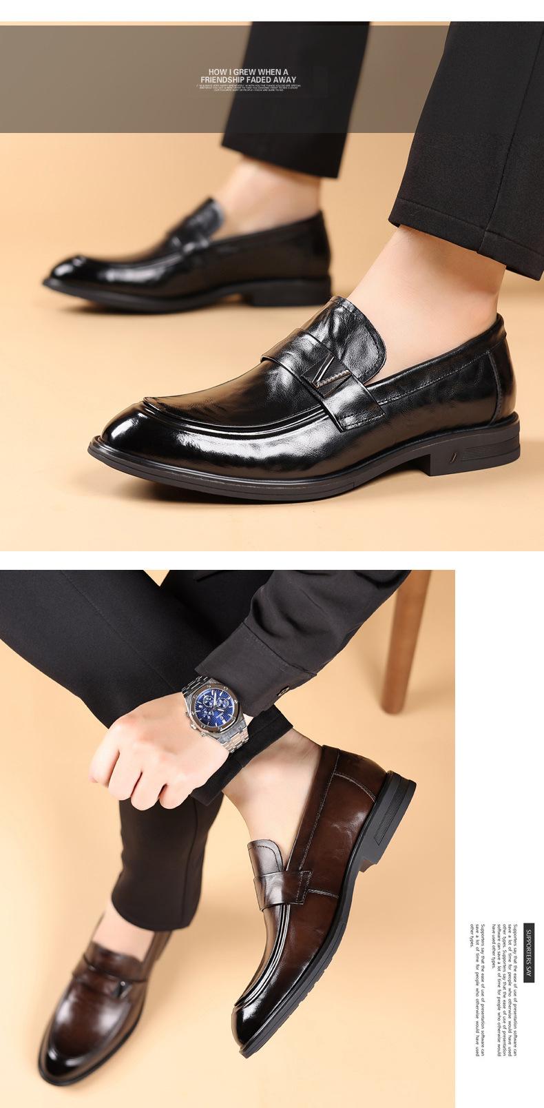 Zapatos casuales de negocios para hombre de piel de vaca de primera capa nueva, zapatos de vestir puntiagudos de cuero genuino, zapatos slip-on de moda para hombre