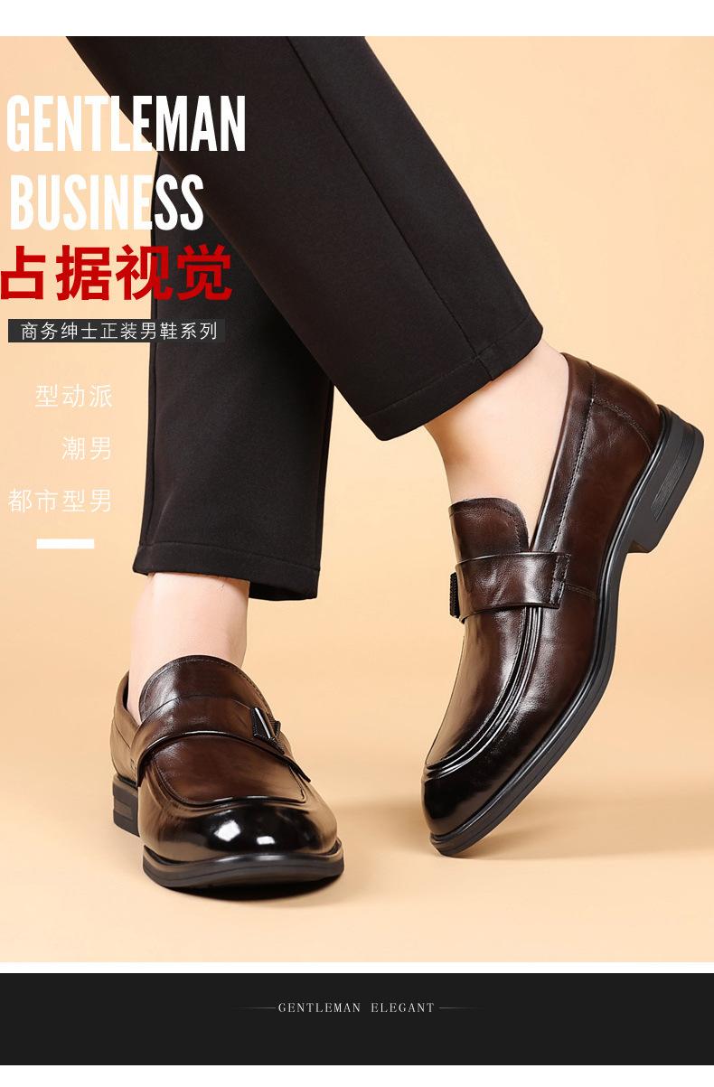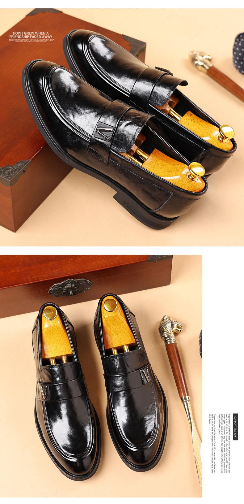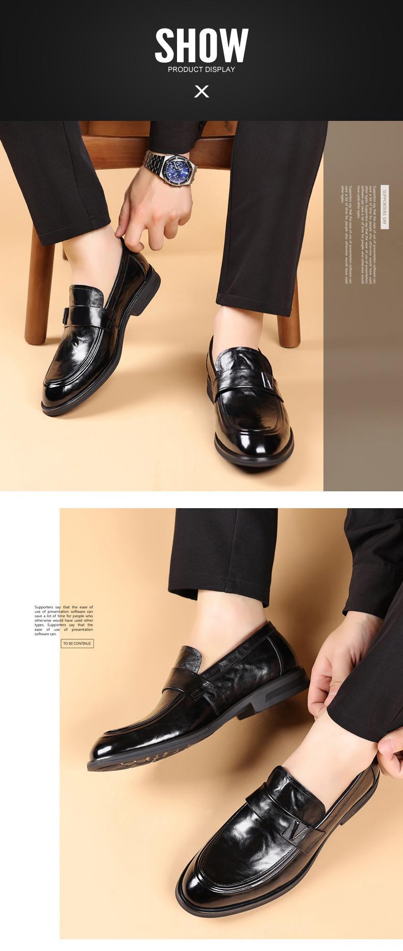 Zapatos casuales de negocios para hombre de piel de vaca de primera capa nueva, zapatos de vestir puntiagudos de cuero genuino, zapatos slip-on de moda para hombre