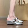 Zapatillas de moda, elegantes y a la moda, para exteriores, con hebilla de una palabra plateada, tacón de cuña, zapatos Baotou Mill